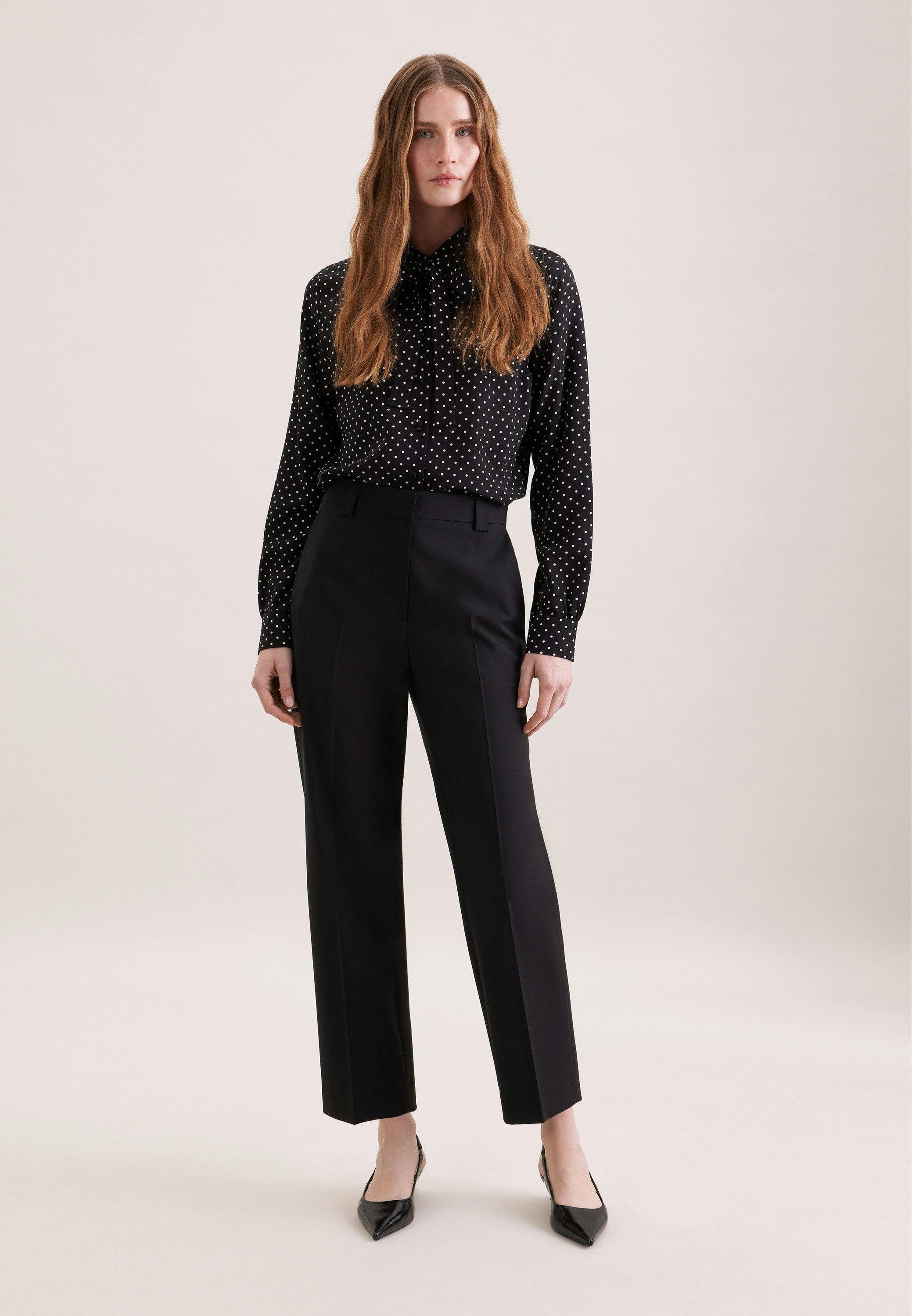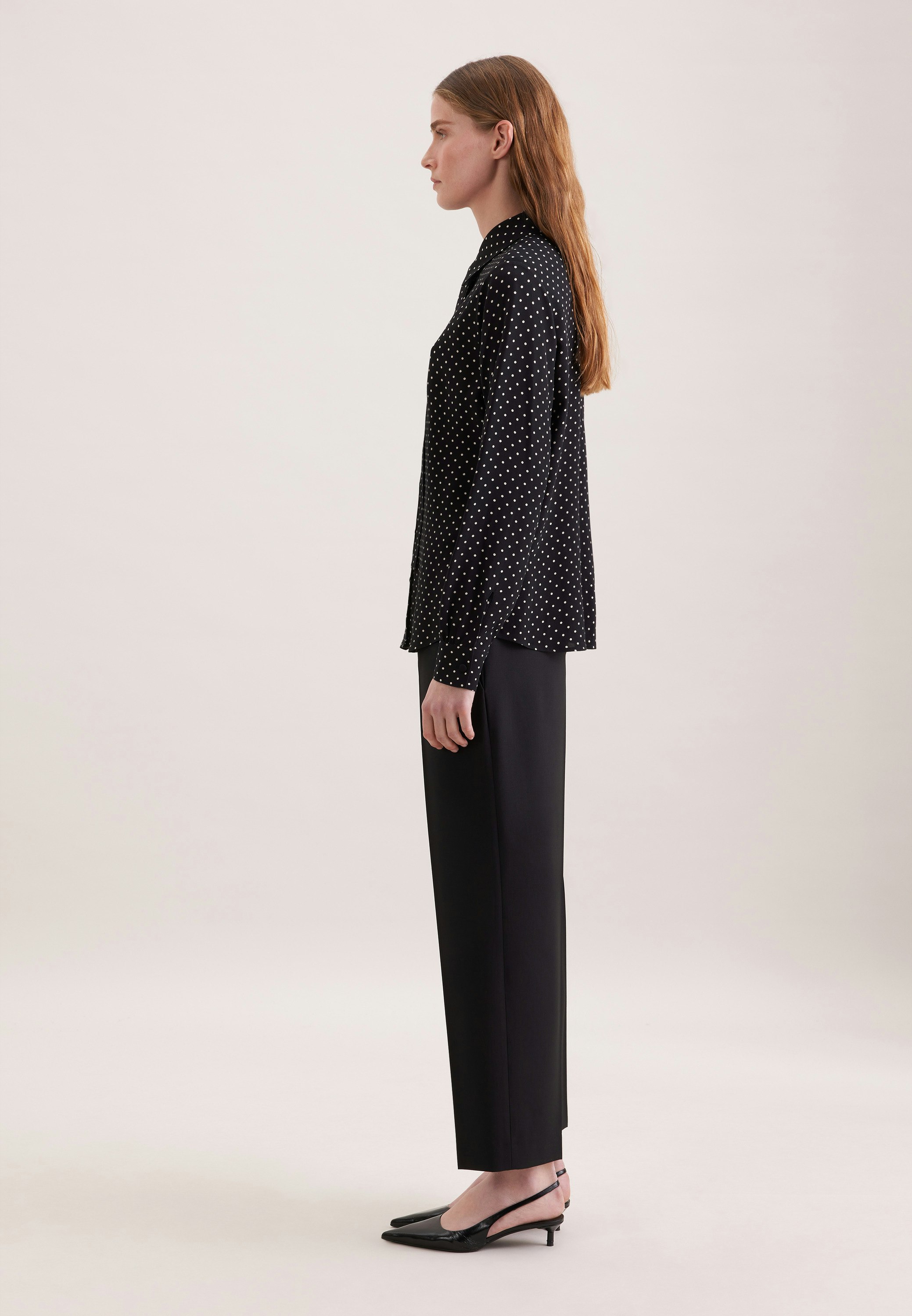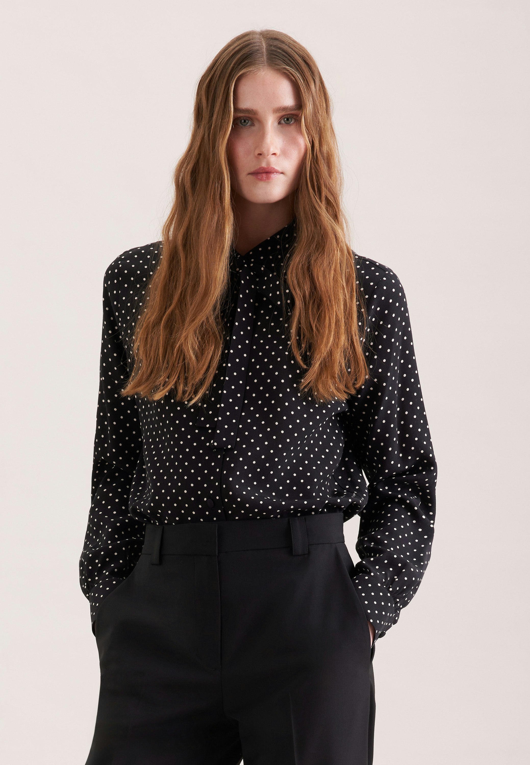 Feminin und elegant: Ihre Silhouette wird stilvoll inszeniert mit der Schluppenbluse von Seidensticker aus der "The Statement Prints" Kollektion. Die Webart Krepp aus 100% Viskose ist hochwertig verarbeitet, was sie zur idealen Leinwand für Ihre ansprechenden Kombinationen macht. Im modernen Schnitt liegt die Schluppenbluse leger und nicht so eng an und schafft optimalen Tragekomfort. Das schicke Punkte-Muster macht sie zu einem absoluten Must-have. Ein echter Hingucker, der sich als clevere Verschmelzung aus klassischer Noblesse, im Zusammenspiel mit modernem Dessin präsentiert. Für Liebhaber von eleganten Looks ist diese Langarm-Schluppenbluse eine gute Wahl. Durch den Hemdblusenkragen wird der feminin-klassische Charakter besonders unterstrichen.