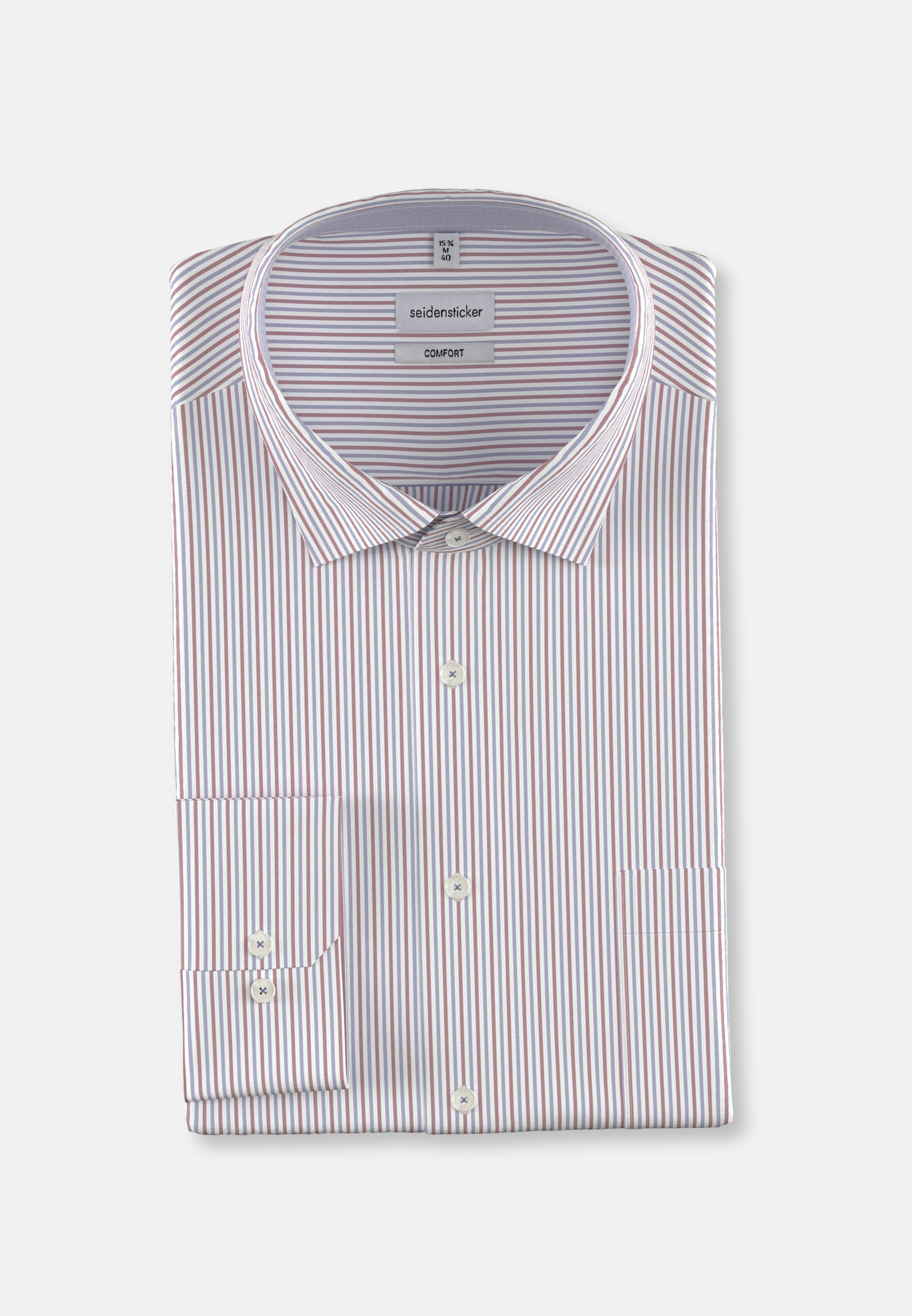 Komplettiert Ihr Outfit und darf in keiner Garderobe fehlen: Dieses Business Hemd aus der "SMART ESSENTIALS" Kollektion von Seidensticker überzeugt durch maskuline Ästhetik. Es kann in der Freizeit, im Homeoffice, im Büro oder bei Veranstaltungen zu Ihrer schlichten Eleganz beitragen. Der mit hoher Dichte gewebte und damit besonders widerstandsfähige Popeline-Stoff ist aus 100% Baumwolle - perfekt für pflegeleichte Outfits. In der Passform Comfort ist das Business Hemd eine lockere Casual-Variante. Durch das Streifen-Muster mit Patch in Kragen und Manschetten ist Ihr neues Kleidungsstück elegant und zugleich modisch. Dieses Hemd verkörpert klassische Eleganz mit modernem Stil. Stilsicher und elegant liegen Sie mit diesem Langarm-Business Hemd stets richtig. Weitenverstellbare Manschetten decken die klassischen Komponenten ab. Durch den Kentkragen wird der universelle Business-Charakter hervorgehoben. Eine Brusttasche wirkt als diskretes Detail.