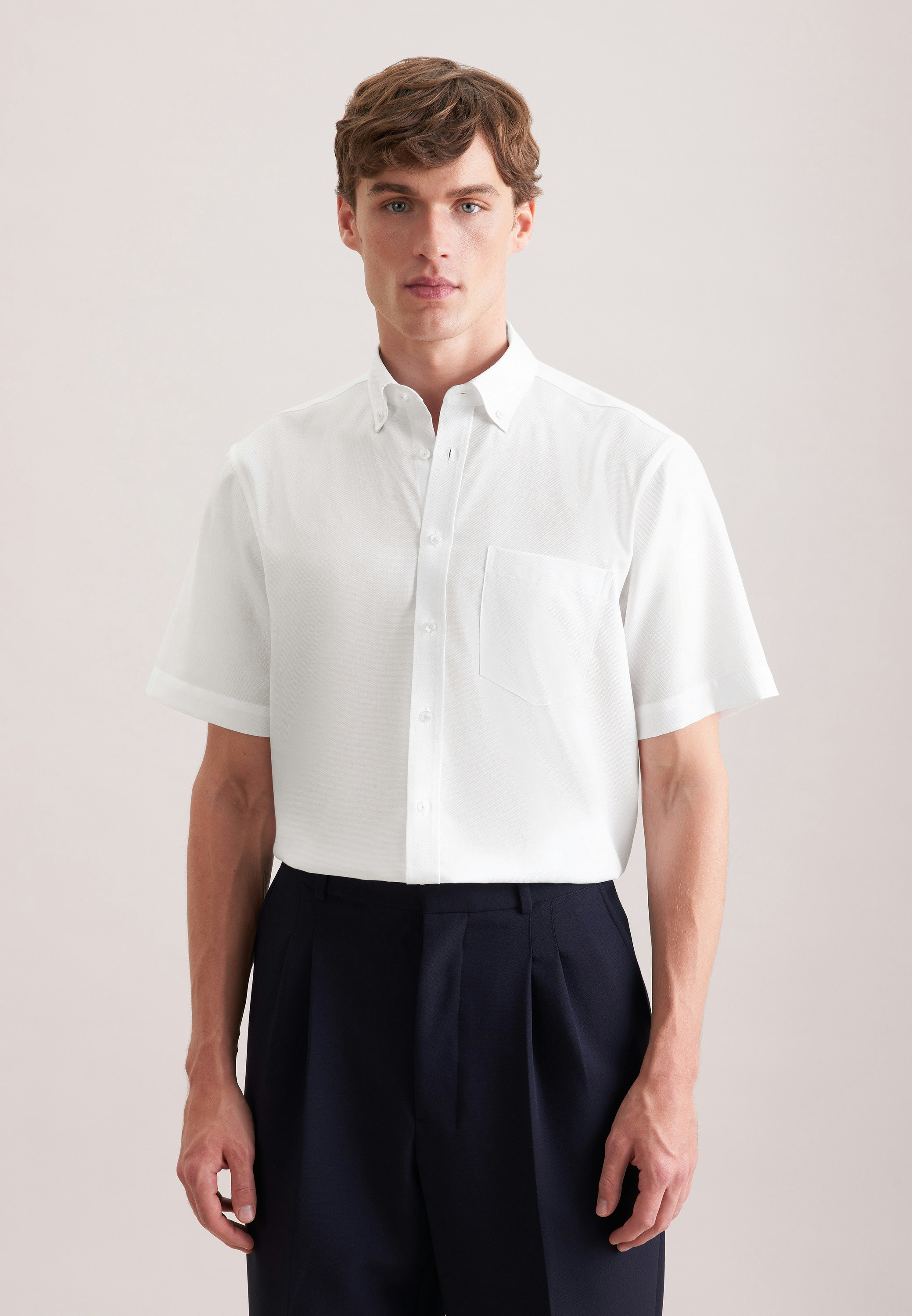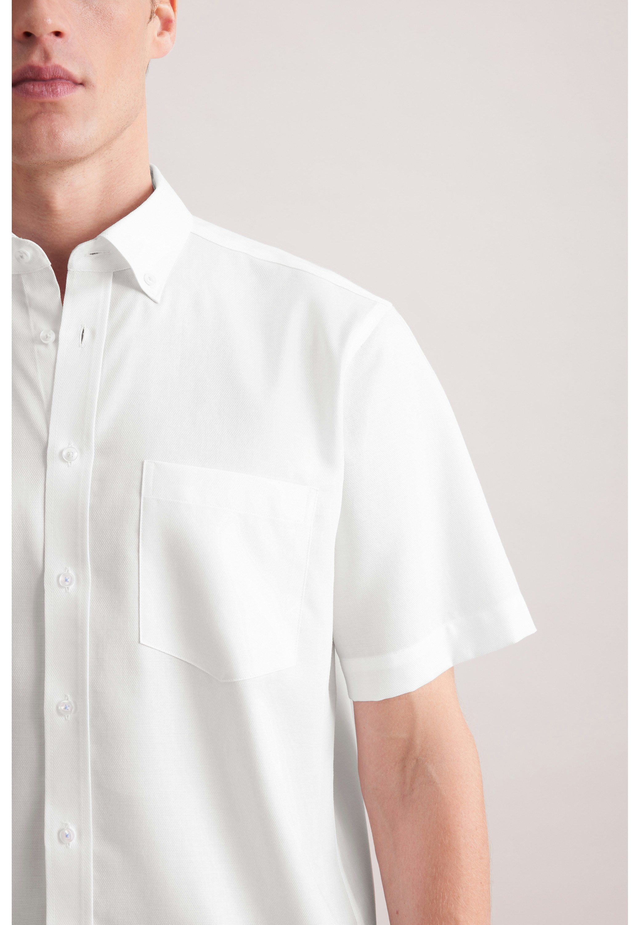 Vervollständigt Ihr Outfit und sollte in keiner Garderobe fehlen: Dieses 1/2-Business Hemd aus der "SMART ESSENTIALS" Kollektion von Seidensticker überzeugt durch maskuline Ästhetik. Es kann in der Freizeit, im Homeoffice, im Büro oder bei Veranstaltungen getragen werden. In der Passform Comfort ist das Business Hemd eine lockere Casual-Variante. Das charakteristische Struktur-Muster macht es zu einem absoluten Must-have. Dieses Hemd verkörpert zeitlose Eleganz mit modernem Stil. Durch den Button-Down-Kragen wird der sportlich-moderne Charakter unterstrichen.