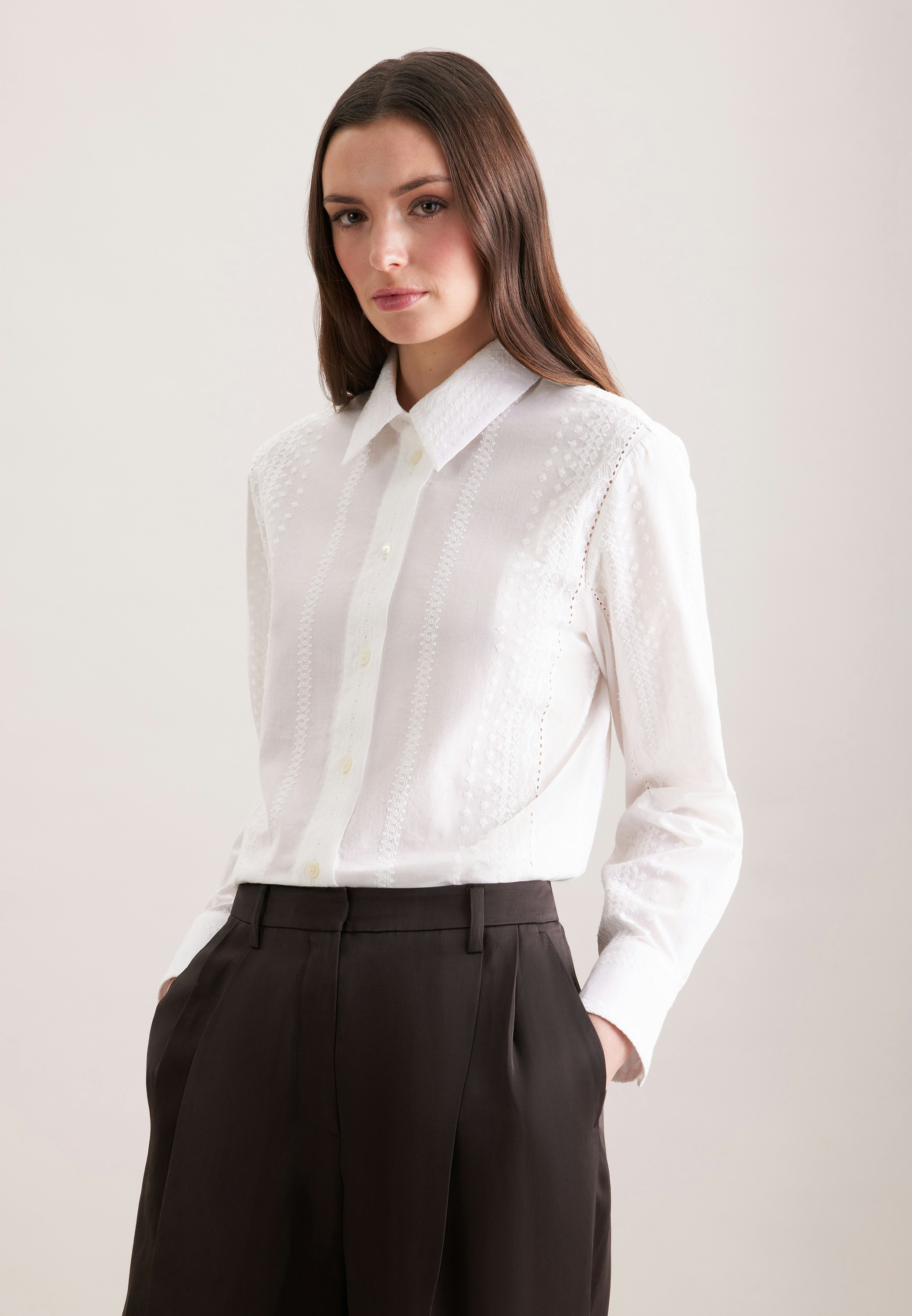 Feminin und elegant: Ihre Silhouette wird stilvoll inszeniert mit der 1/1-Hemdbluse von Seidensticker aus der "February Drop 261" Kollektion. Die Stickereiattraktive Stickerei setzt optische Akzente. Zeitloser Chic, gepaart mit modernem Selbstbewusstsein - eine elegante Bluse für viele Gelegenheiten. Obendrein sind edle Mother of pearlknöpfe verwendet worden.