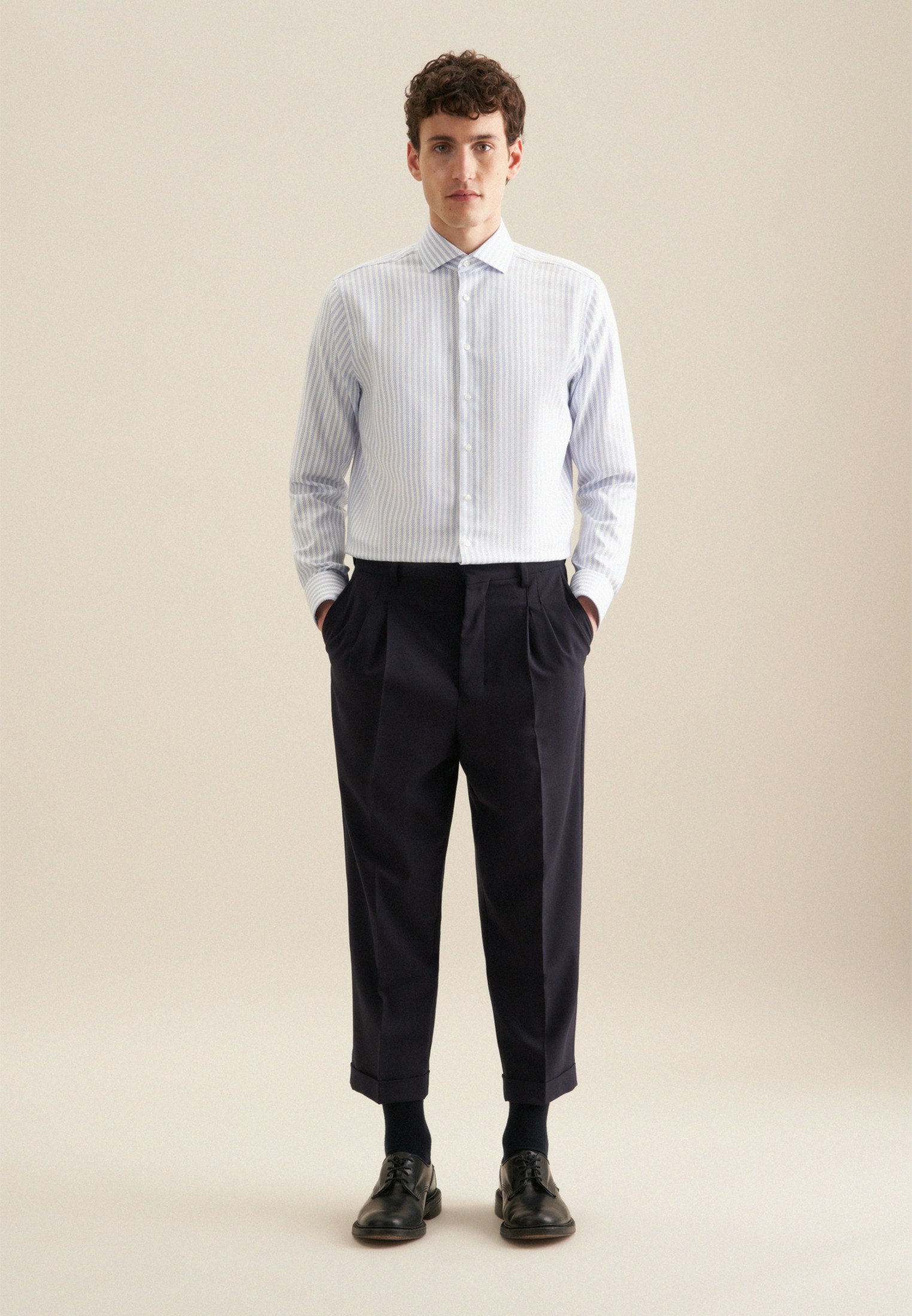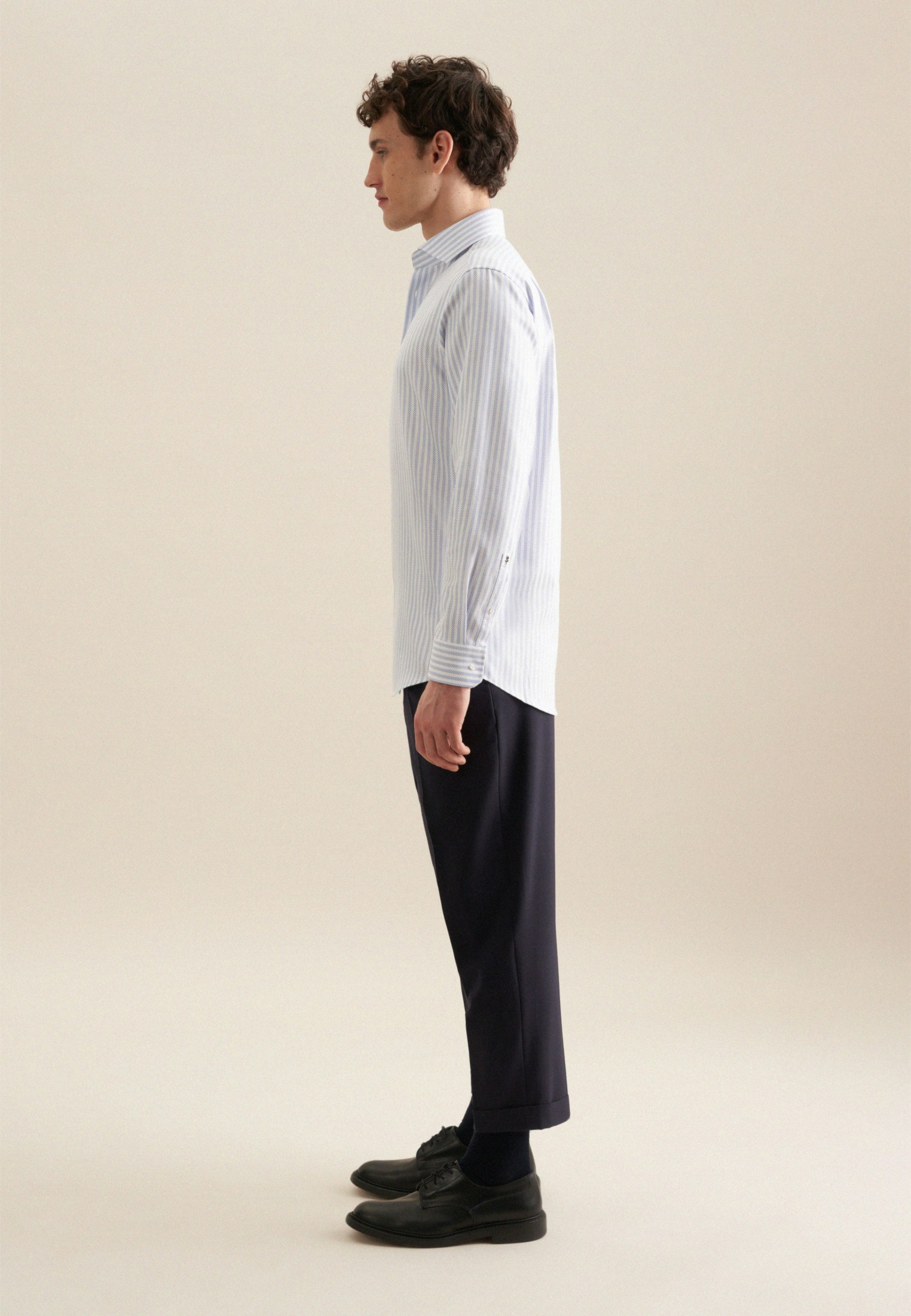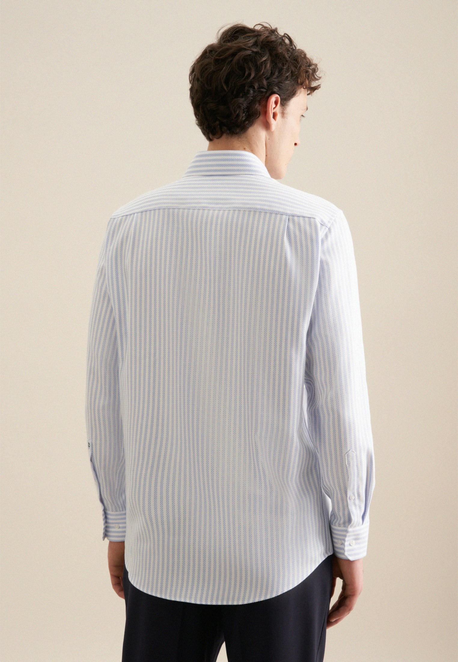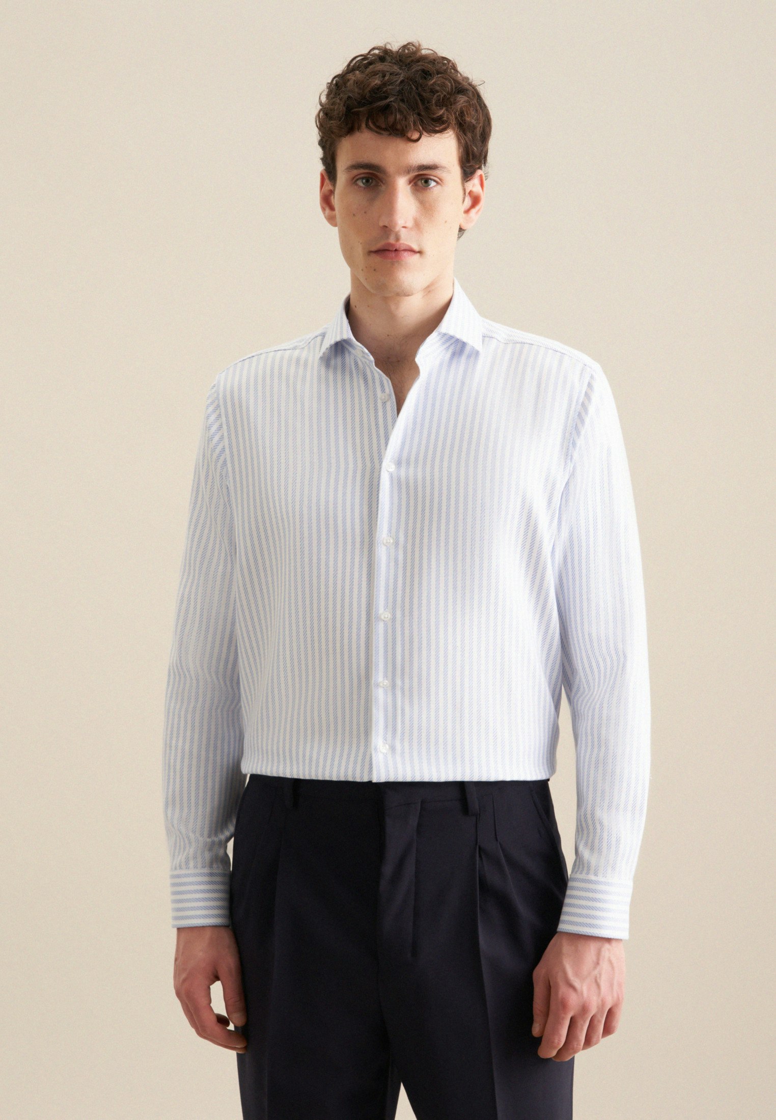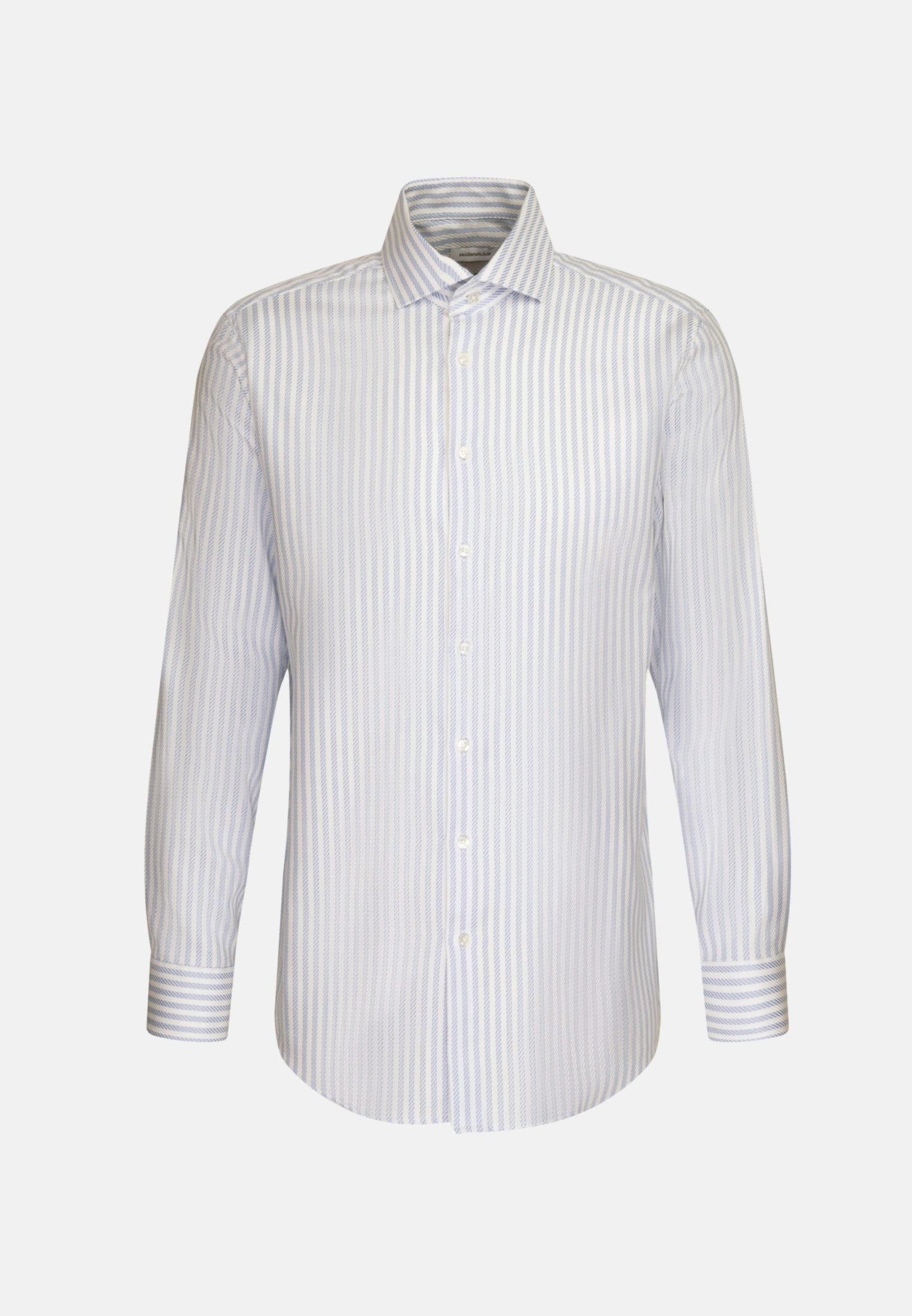 Maskuline Ästhetik: Das blickdichte Business Hemd von Seidensticker aus der "SMART CLASSICS" Kollektion erweitert Ihre Garderobe um einen hochwertigen Look, der den Geist der Zeit trifft. Es ist ein vielseitiger Klassiker, der sich ideal für Büro, Homeoffice oder Veranstaltungen eignet und zu jeder Gelegenheit getragen werden kann. Die gewebte Struktur ist aus 100% Baumwolle - die ideale Leinwand für Ihre ansprechenden Kombinationen. Als Regular Schnitt liegt das Business Hemd leger und nicht so eng an und schafft optimalen Tragekomfort. Das raffinierte Streifen-Muster setzt optische Akzente. Balanceakt zwischen klassischem Look und modernen Aspekten: das smarte Seidensticker Hemd. Für Liebhaber von eleganten Looks ist dieses Langarm-Business Hemd eine gute Wahl. Weitenverstellbare Manschetten ergänzen das klassische Gesamtbild. Ein Kentkragen unterstreicht den universellen Business-Charakter.