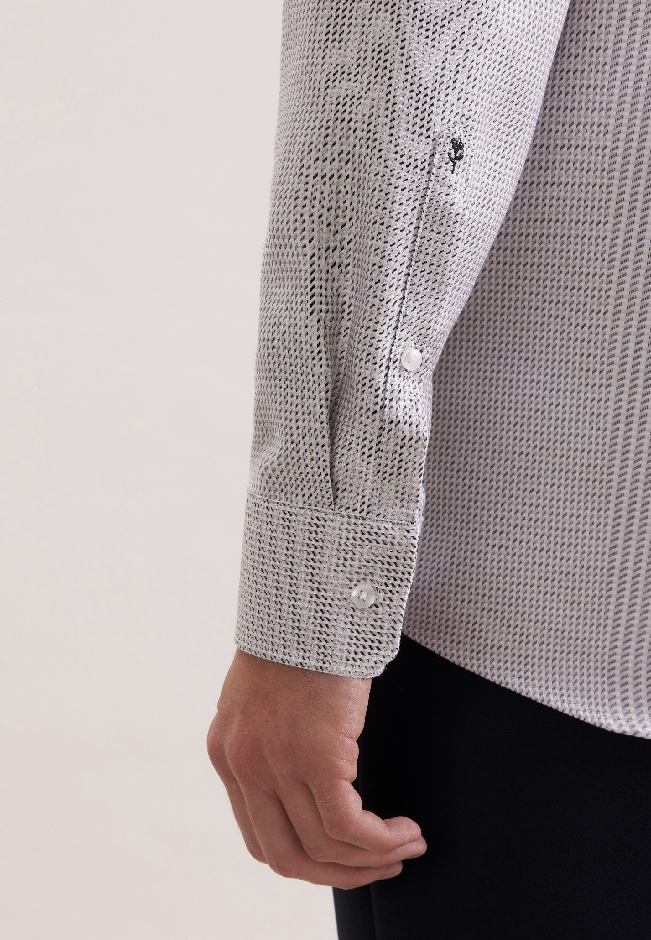 Die Bestickung erfolgt auf der Manschette des rechten Ärmels. Die gezeigte Abbildung dient lediglich zur Vorschau und kann von Ihrer tätsächlichen Auswahl abweichen.