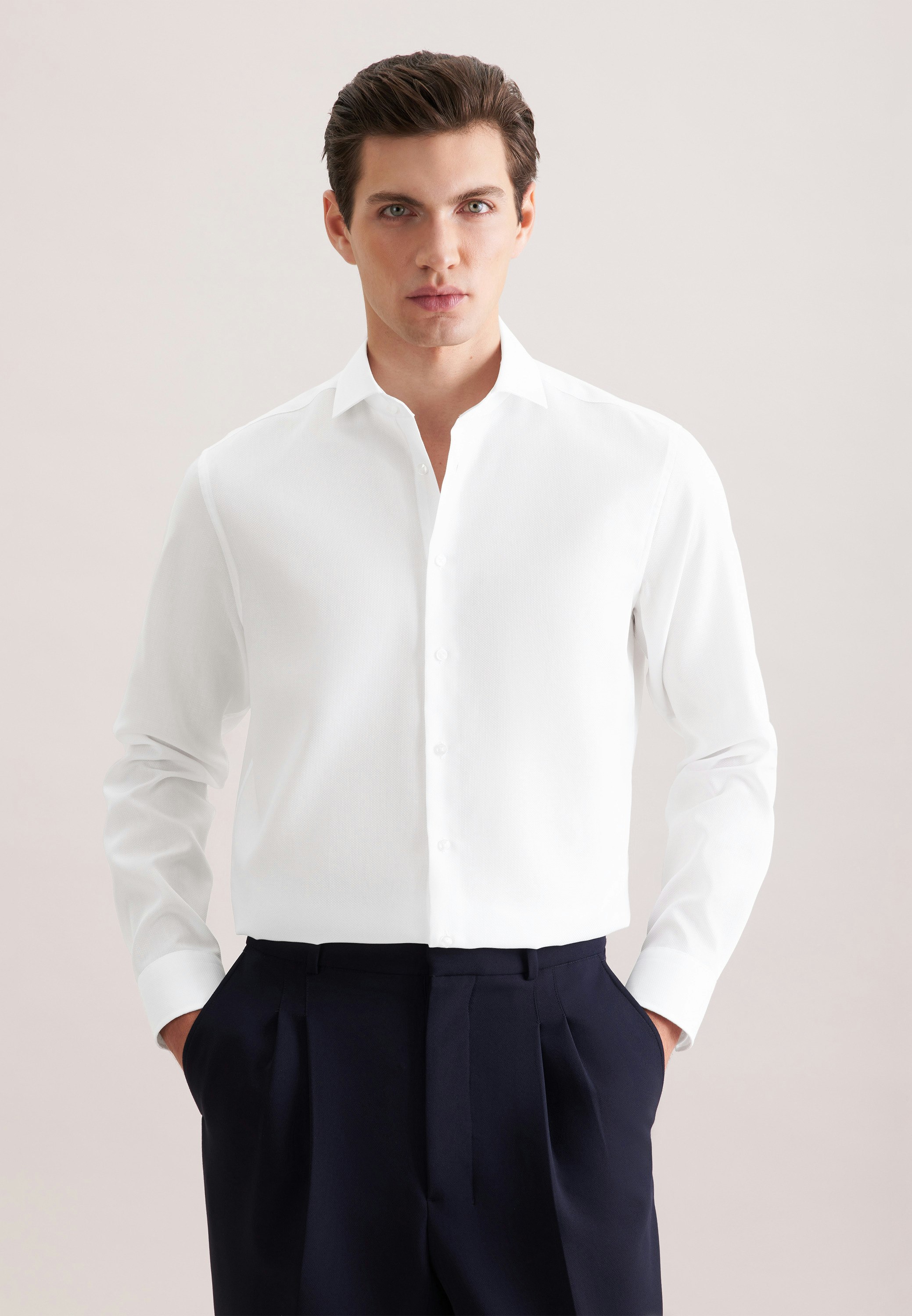 Maskuline Ästhetik: Sorgen Sie für ein stilvolles Erscheinungsbild mit dem 1/1-Business Hemd von Seidensticker aus der "CLASSIC ESSENTIALS" Kollektion. Als Regular Schnitt liegt das Business Hemd leger und nicht so eng an und bietet so optimalen Tragekomfort. Das charakteristische Struktur-Muster macht es zu einem absoluten Must-have. Smarte Modernität mit formellen und legeren Aspekten prägt dieses Hemd von Seidensticker. Dank des Kentkragens wird der universelle Business-Charakter unterstrichen.