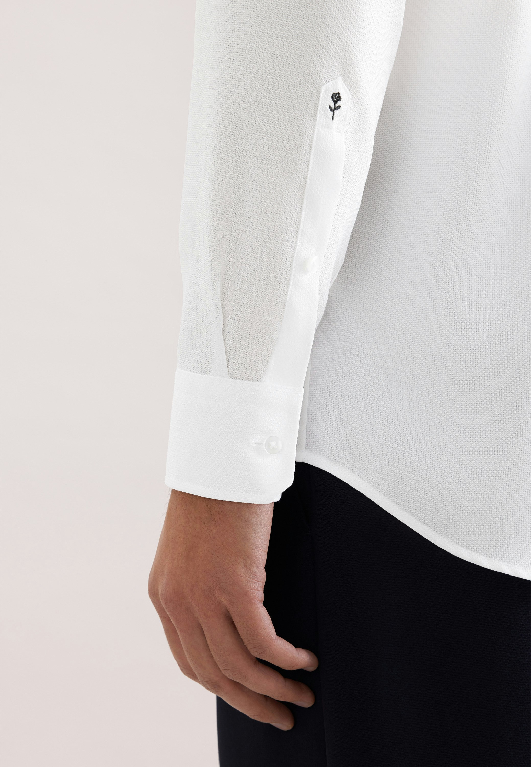 Die Bestickung erfolgt auf der Manschette des rechten Ärmels. Die gezeigte Abbildung dient lediglich zur Vorschau und kann von Ihrer tätsächlichen Auswahl abweichen.