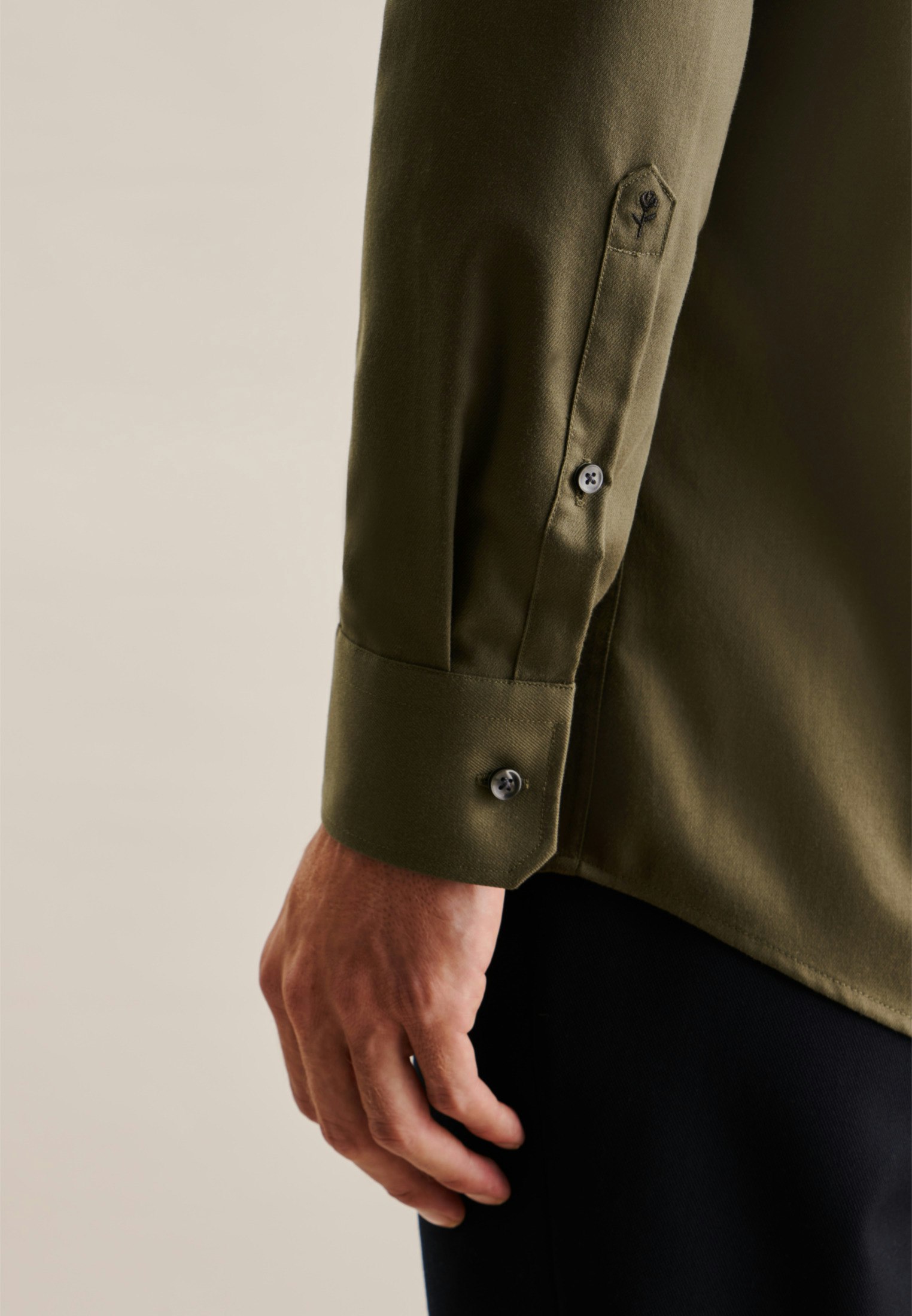 Die Bestickung erfolgt auf der Manschette des rechten Ärmels. Die gezeigte Abbildung dient lediglich zur Vorschau und kann von Ihrer tätsächlichen Auswahl abweichen.