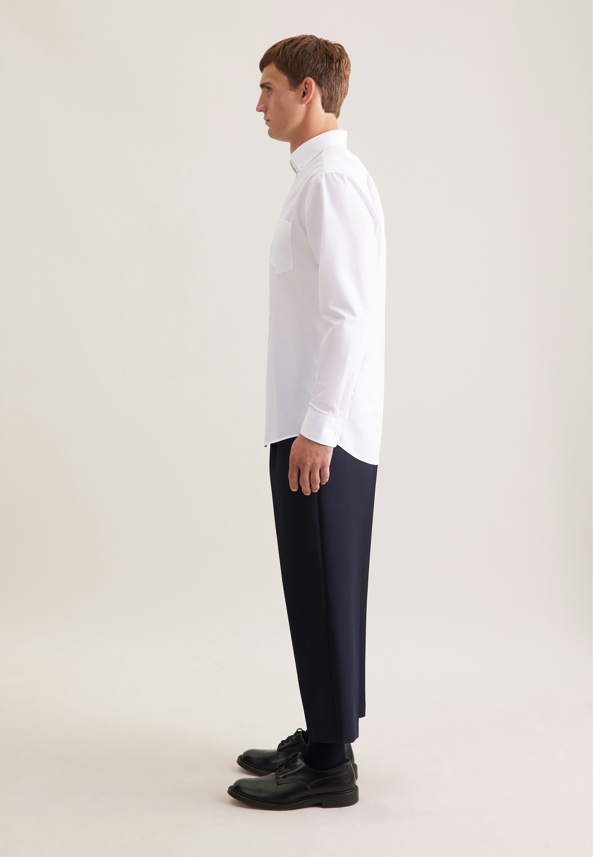 Komplettiert Ihr Outfit und darf in keiner Garderobe fehlen: Dieses Regular Business Hemd aus der "SMART ESSENTIALS" Kollektion von Seidensticker überzeugt durch die regular Form und maskuline Ästhetik. Es kann in der Freizeit, im Homeoffice, im Büro oder bei Veranstaltungen zu Ihrer schlichten Eleganz beitragen. Die Webart Popeline aus 100% Baumwolle ist mit hoher Dichte gewebt und daher extra widerstandsfähig, was sie perfekt für pflegeleichte Business-Outfits macht. Durch seinen Schnitt in Regular fit liegt das Business Hemd nicht so eng und eher leger an und bietet so einen optimalen Tragekomfort. Das Uni-Muster macht es zu einem absoluten Must-have. Smarte Modernität mit formellen und lockeren Aspekten prägt dieses Hemd von Seidensticker. Stilsicher und elegant liegen Sie mit diesem Langarm-Business Hemd immer goldrichtig. Weitenverstellbare Manschetten perfektionieren das Gesamtbild. Ein Button-Down-Kragen unterstreicht den sportlich-modernen Charakter. Als interessantes Detail ist zudem eine Brusttasche verarbeitet worden. Nachhaltigkeit ist uns sehr wichtig - dieses Business Hemd entspricht daher unseren hohen Ansprüchen an verantwortungsvolle Rohstoffe, soziale Verantwortung, eine nachhaltige Herstellung, sowie eine plastikfreie Verpackung.