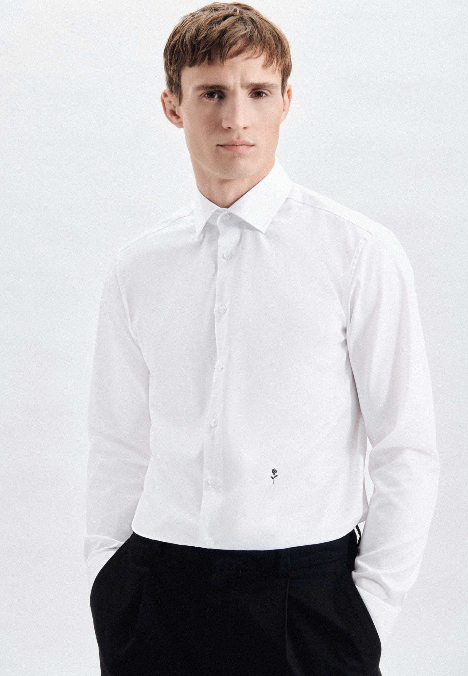 Das Hemd passt sehr gut und die schwarze Tose sieht sehr edel aus! Eine Version für Manschettenknöpfe wäre perfekt