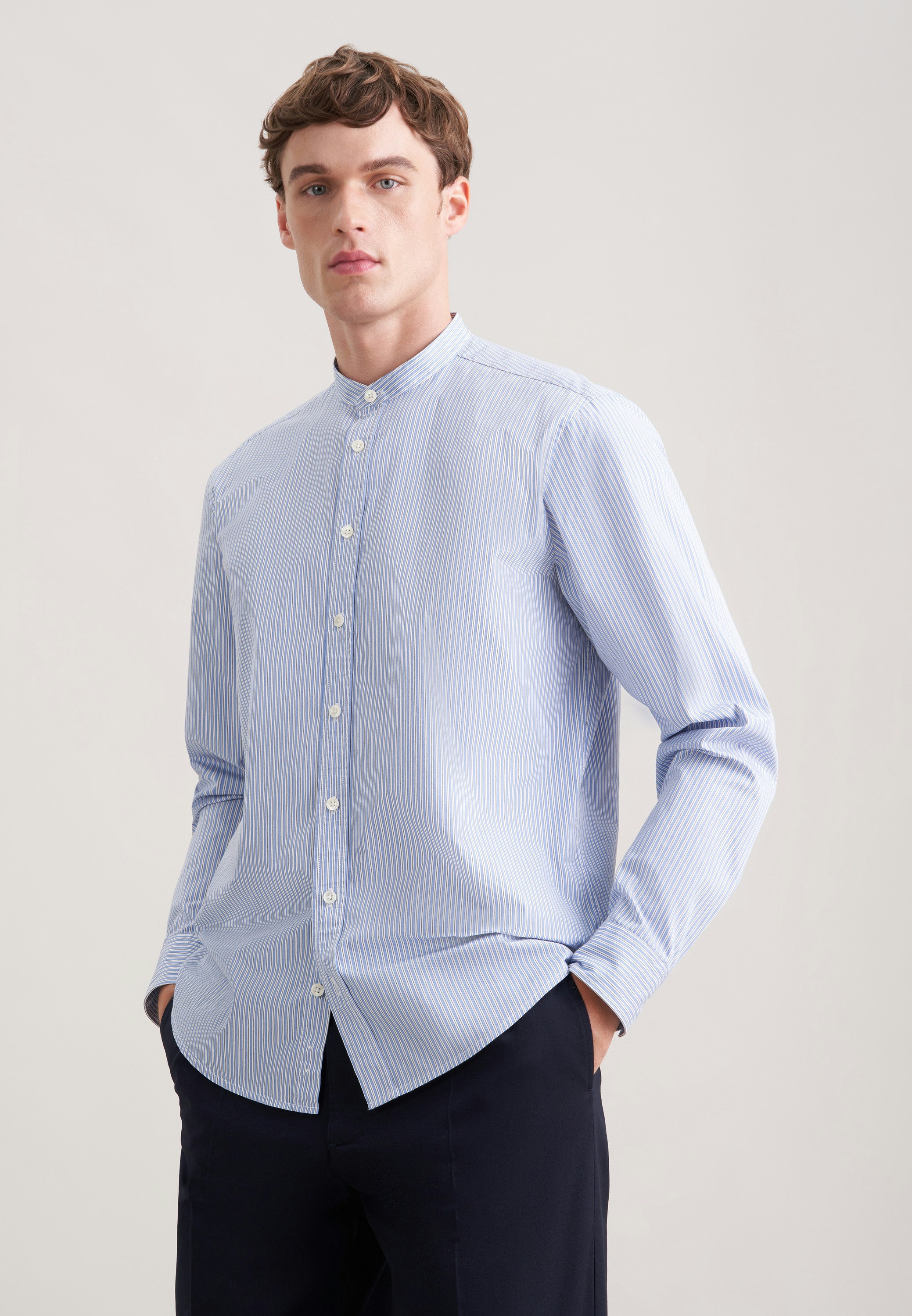 Komplettiert Ihr Outfit und darf in keiner Garderobe fehlen: Dieses 1/1-Casual Hemd aus der "CASUAL BUSINESS" Kollektion von Seidensticker überzeugt durch maskuline Ästhetik. Durch seinen Schnitt in Regular Fit liegt das Casual Hemd nicht so eng und eher leger an und schafft so einen optimalen Komfort beim Tragen. Das schicke Gestreift-Muster macht es zu einem absoluten Must-have. Dieses Hemd verkörpert zeitlose Eleganz mit modernem Stil. Hervorragend hervorgehoben wird der nostalgisch-smarte Charakter durch einen Stehkragen.