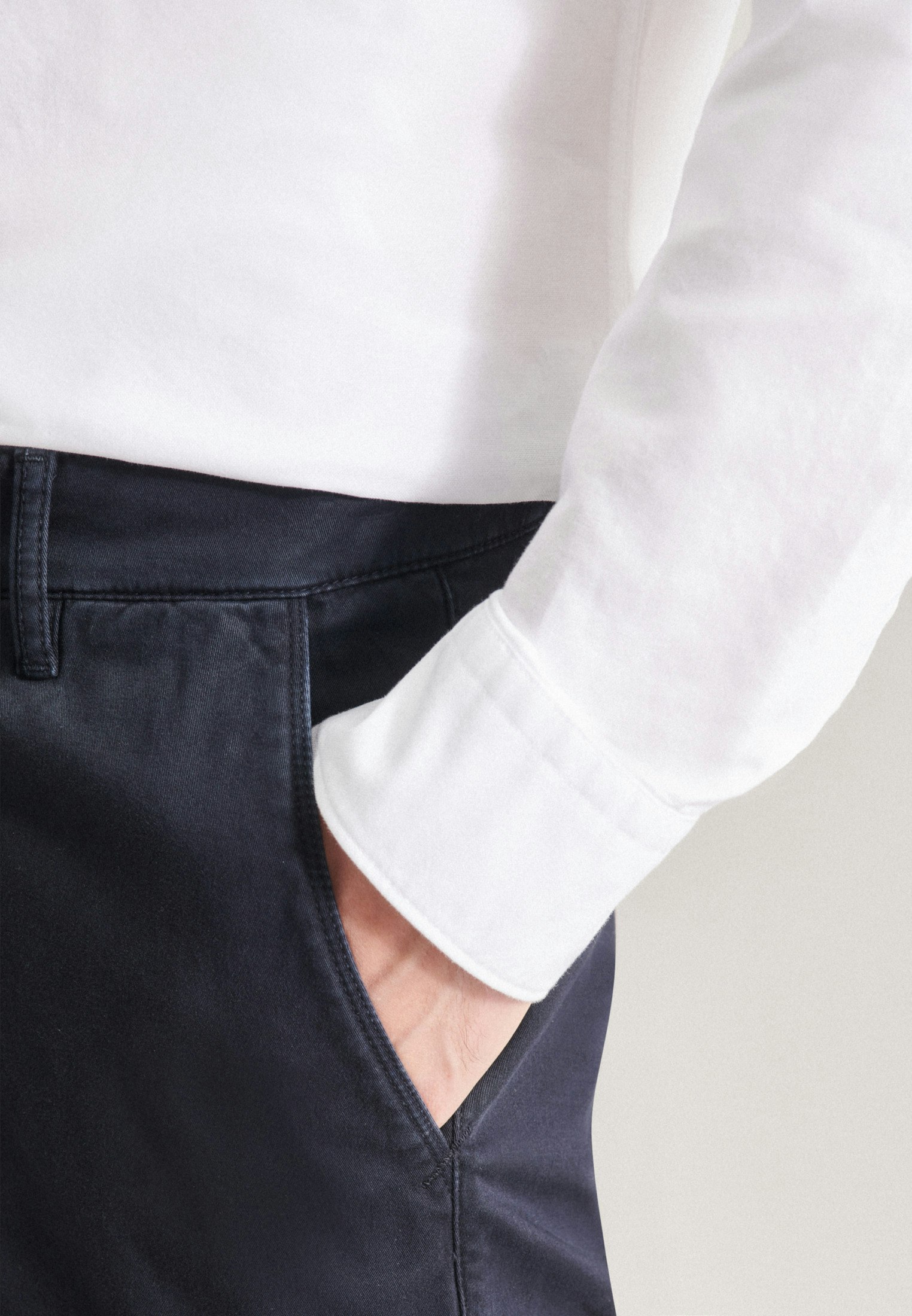 : Sorgen Sie für ein stilvolles Erscheinungsbild mit der Chinohose von Seidensticker. Der besonders hochwertig gewebte Twill / Moleskin ist aus einer Baumwollmischung, komfortabel zu tragen und mit schräg umlaufender Struktur sehr griffig. Das Uni-Muster macht sie zu einem absoluten Must-have. Zeigen Sie smartes Stilgefühl mit einer Chinohose, die Ihrem Outfit einen modischen Akzent gibt. Für Liebhaber von eleganten Looks ist diese Langarm-Chinohose eine sehr gute Wahl.