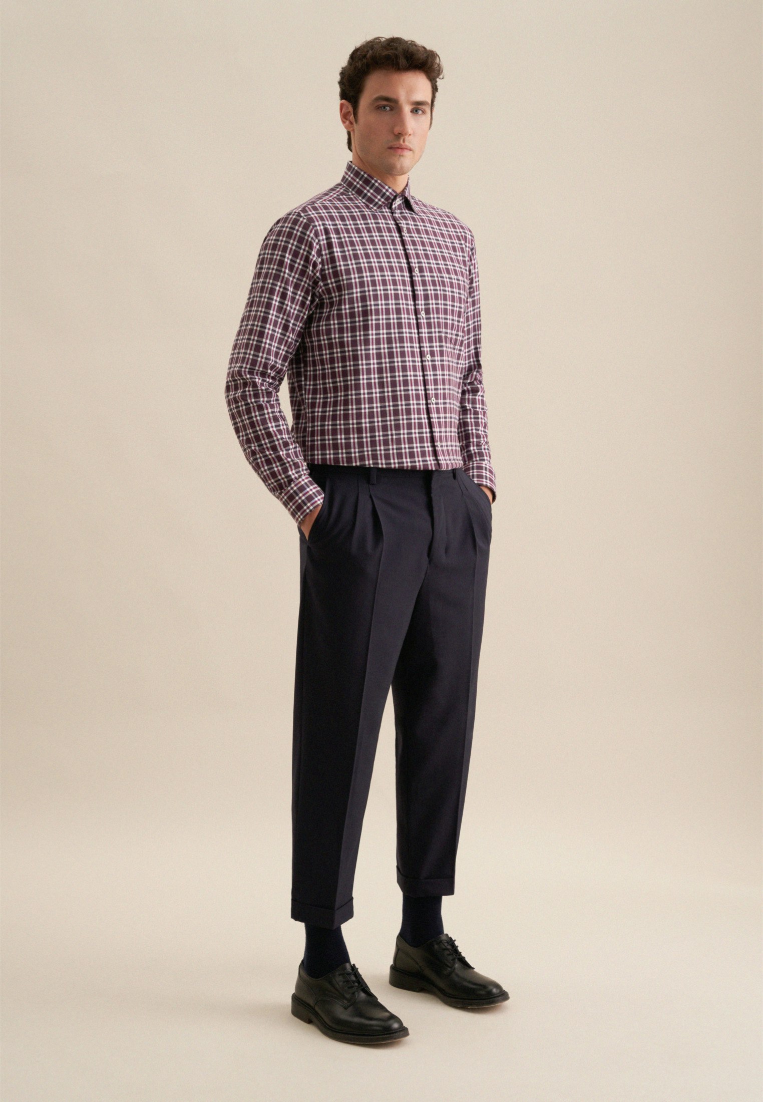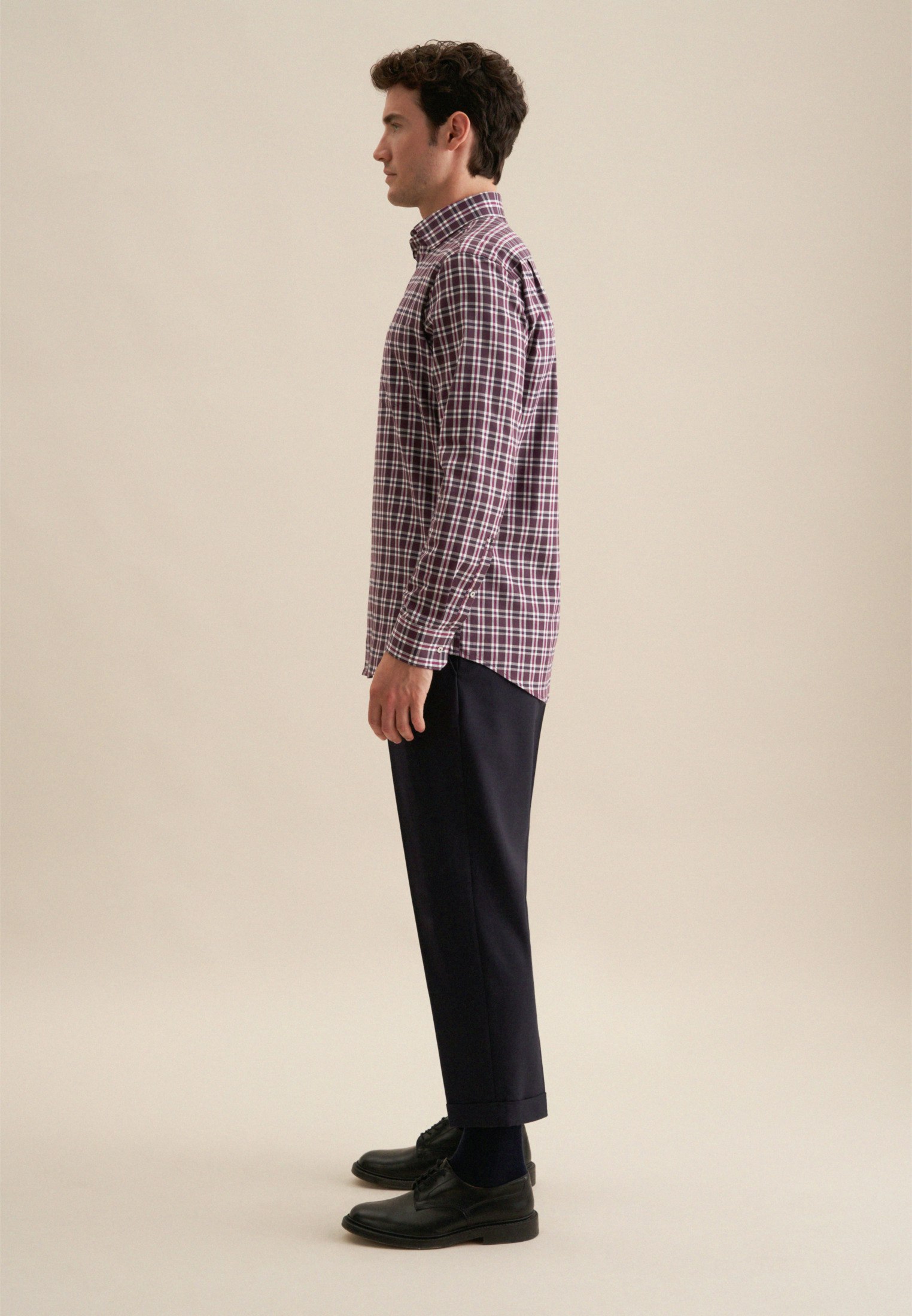 Maskuline Ästhetik: Das Flanellhemd von Seidensticker aus der "SMART FLANNELS" Kollektion erweitert Ihre Garderobe um ein vielseitig einsetzbares Kleidungsstück. Die Webart Flanell aus 100% Baumwolle ist locker-leicht gewebt und hat einen auffallend weichen Griff, was sie besonders strapazierfähig sowie für smarte Business Looks, als auch für formelle Outfits geeignet macht. Durch seinen Schnitt in Regular Fit liegt das Flanellhemd weniger eng und eher leger an und schafft so einen optimalen Tragekomfort. Das attraktive Karo-Muster verleiht dazu die passenden modischen Nuancen. Dieses Hemd verkörpert zeitlose Eleganz mit modernem Schliff. Stilsicher und elegant liegen Sie mit diesem Langarm-Flanellhemd immer richtig. Weitenverstellbare Manschetten runden das Bild ab. Dank des Button-Down-Kragens wird der sportlich-moderne Charakter besonders unterstrichen. Als dezentes Detail ist zudem eine Brusttasche aufgenäht worden.