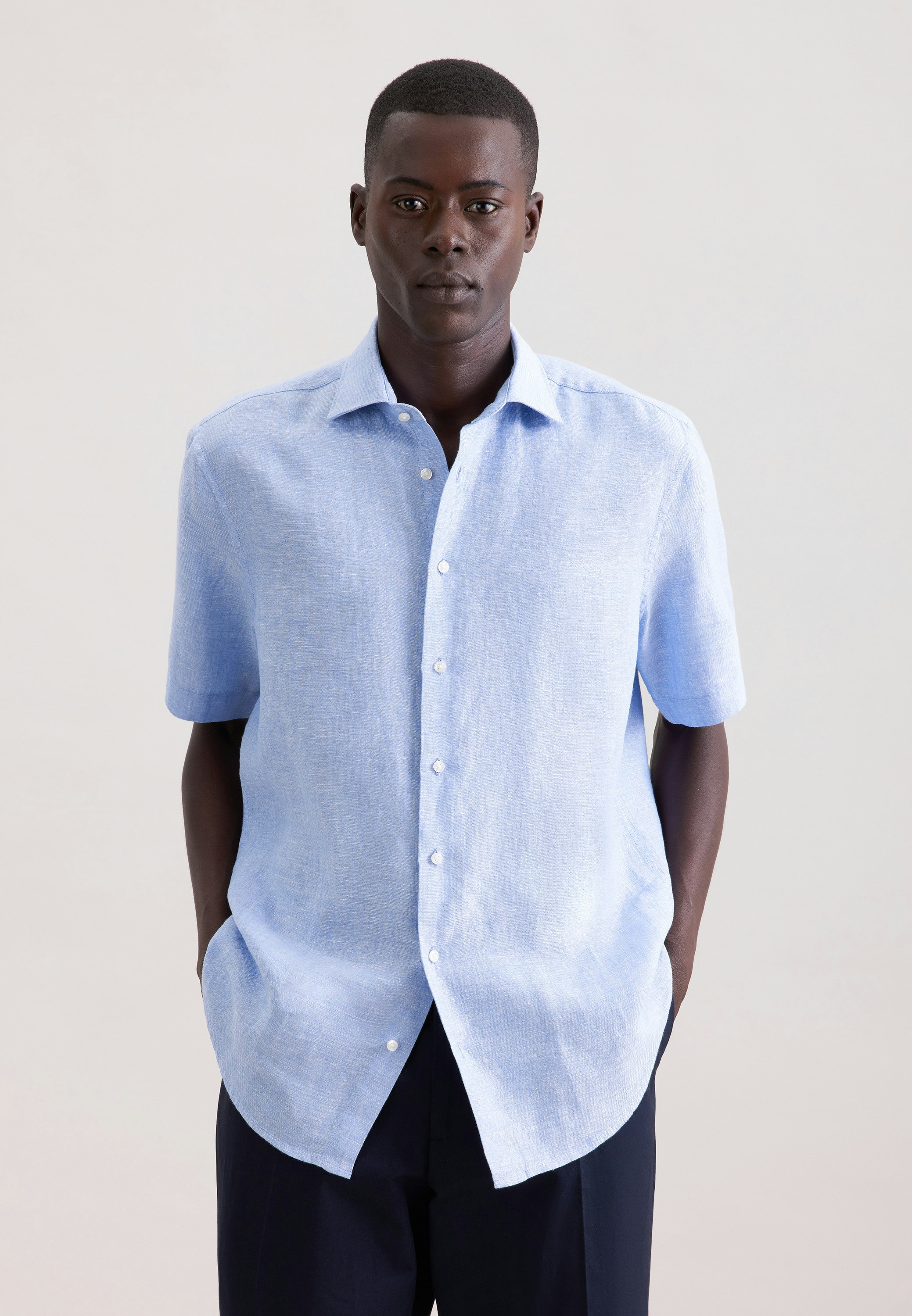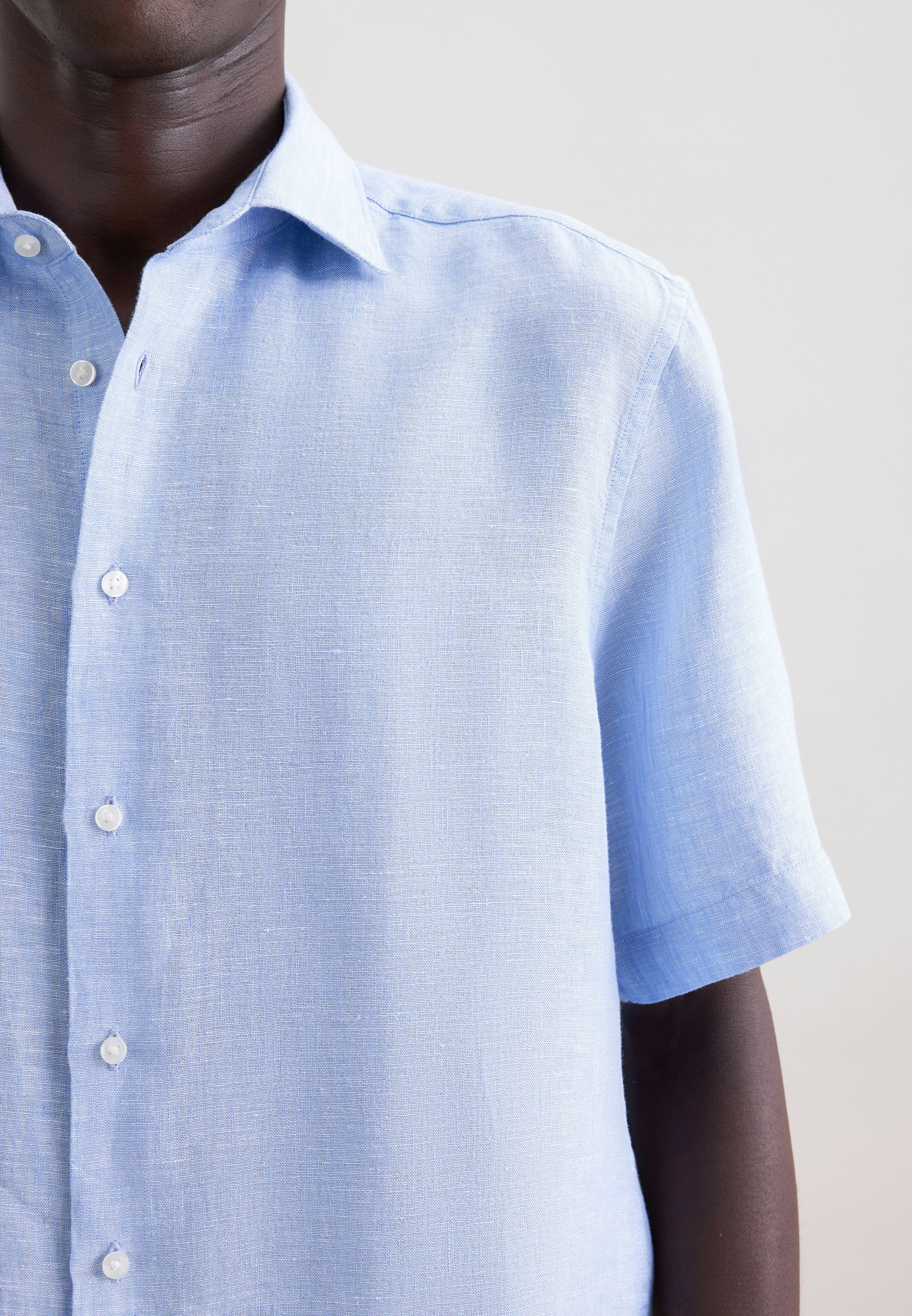 Maskuline Ästhetik: Sorgen Sie für ein stilvolles Erscheinungsbild mit dem 1/2-Leinenhemd von Seidensticker aus der "SMART LINEN" Kollektion. Es kann in der Freizeit oder im Sommer zu Ihrer schlichten Eleganz beitragen. Im klassisch-geraden Regular Schnitt schafft das Leinenhemd hohen Tragekomfort und liegt leger an. Balanceakt zwischen Klassik und Moderne: das elegante Seidensticker Hemd. Ein Kentkragen unterstreicht den universellen Business-Charakter.