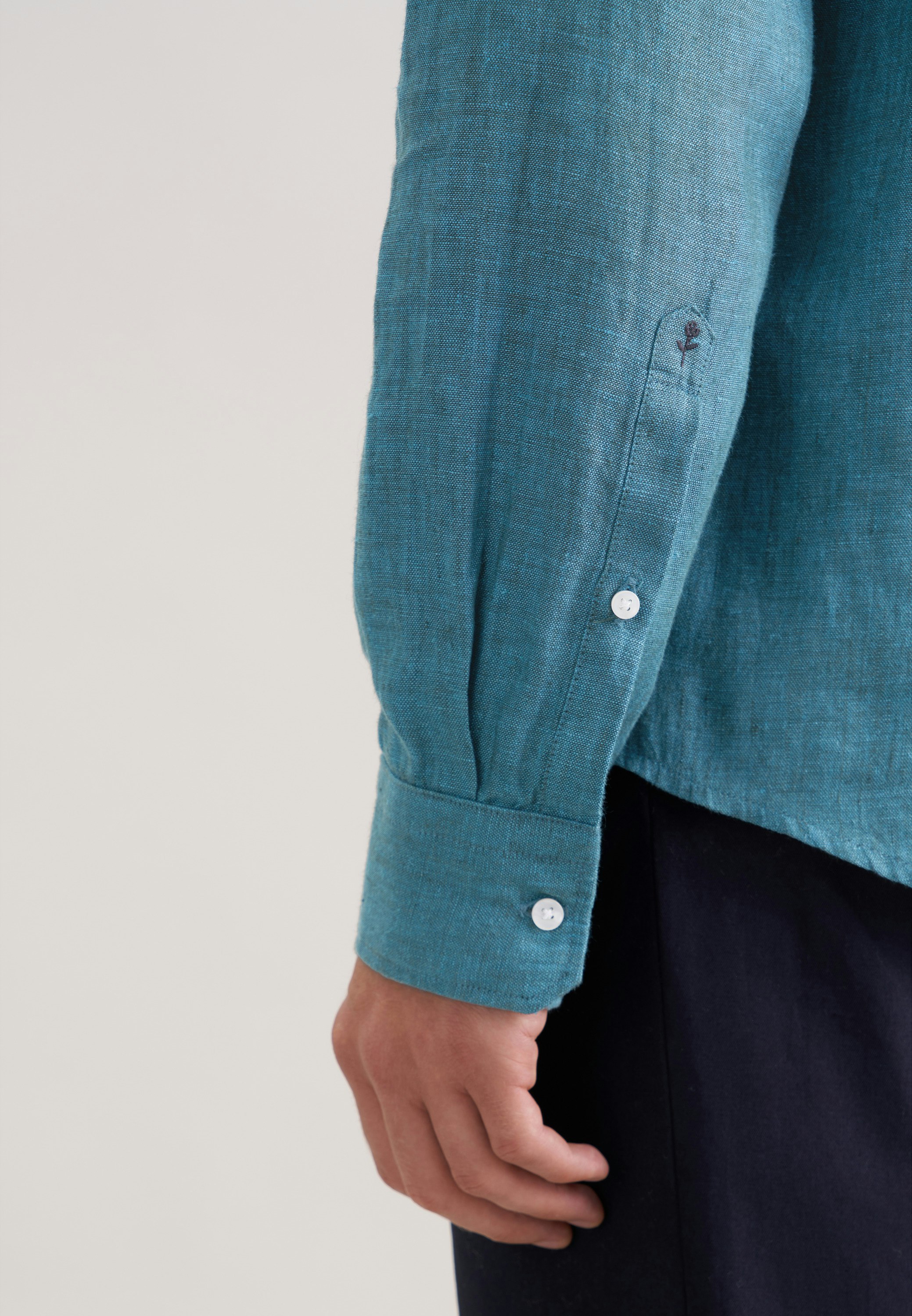 Die Bestickung erfolgt auf der Manschette des rechten Ärmels. Die gezeigte Abbildung dient lediglich zur Vorschau und kann von Ihrer tätsächlichen Auswahl abweichen.