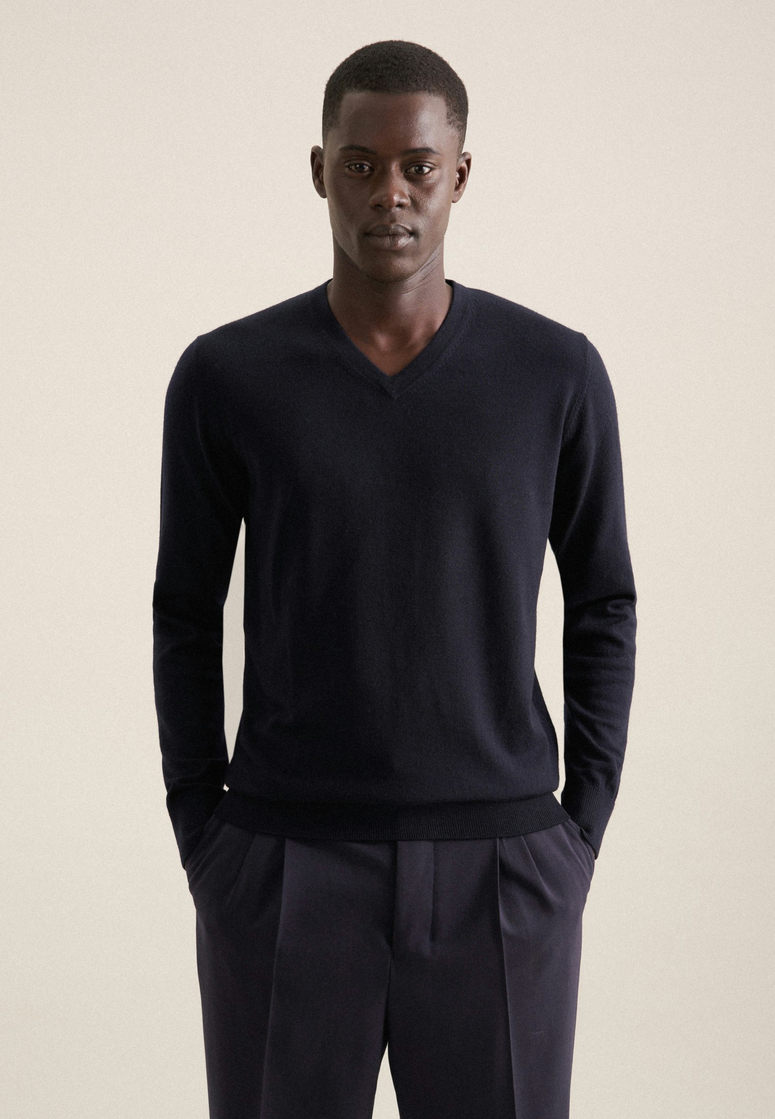 Bequem und dennoch stylish: Sorgen Sie für ein stilvolles Erscheinungsbild mit dem Pullover von Seidensticker aus der "SMART KNIT" Kollektion. Das gewebte Plain Knitted ist aus 100% Wolle - die ideale Leinwand für Ihre ansprechenden Kombinationen. Das Uni-Muster ist eine stilvolle Ergänzung. Ein Basic wird neu interpretiert: Der stilsichere Pullover verbindet Moderne und Stilsicherheit. Stilsicher und elegant liegen Sie mit diesem Langarm-Pullover immer goldrichtig. Ein V-Neck betont den smarten Charakter.