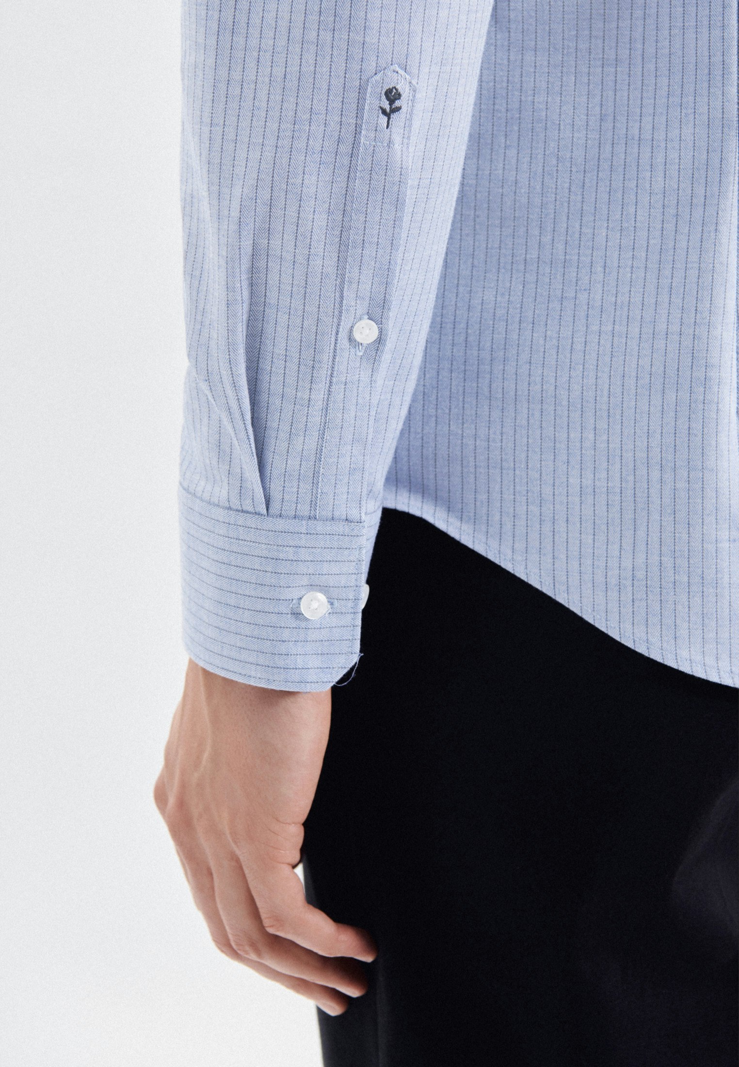 Die Bestickung erfolgt auf der Manschette des rechten Ärmels. Die gezeigte Abbildung dient lediglich zur Vorschau und kann von Ihrer tätsächlichen Auswahl abweichen.