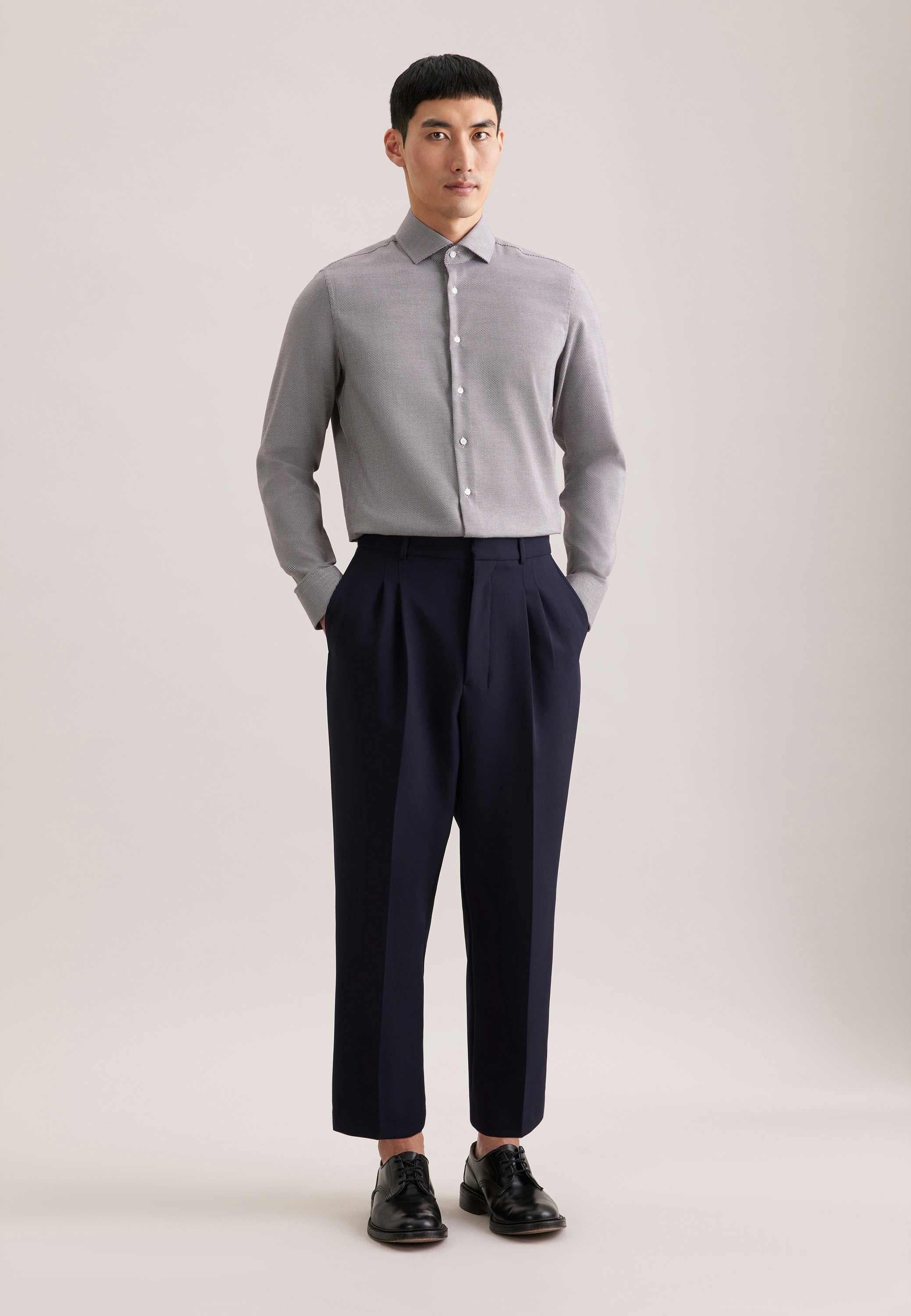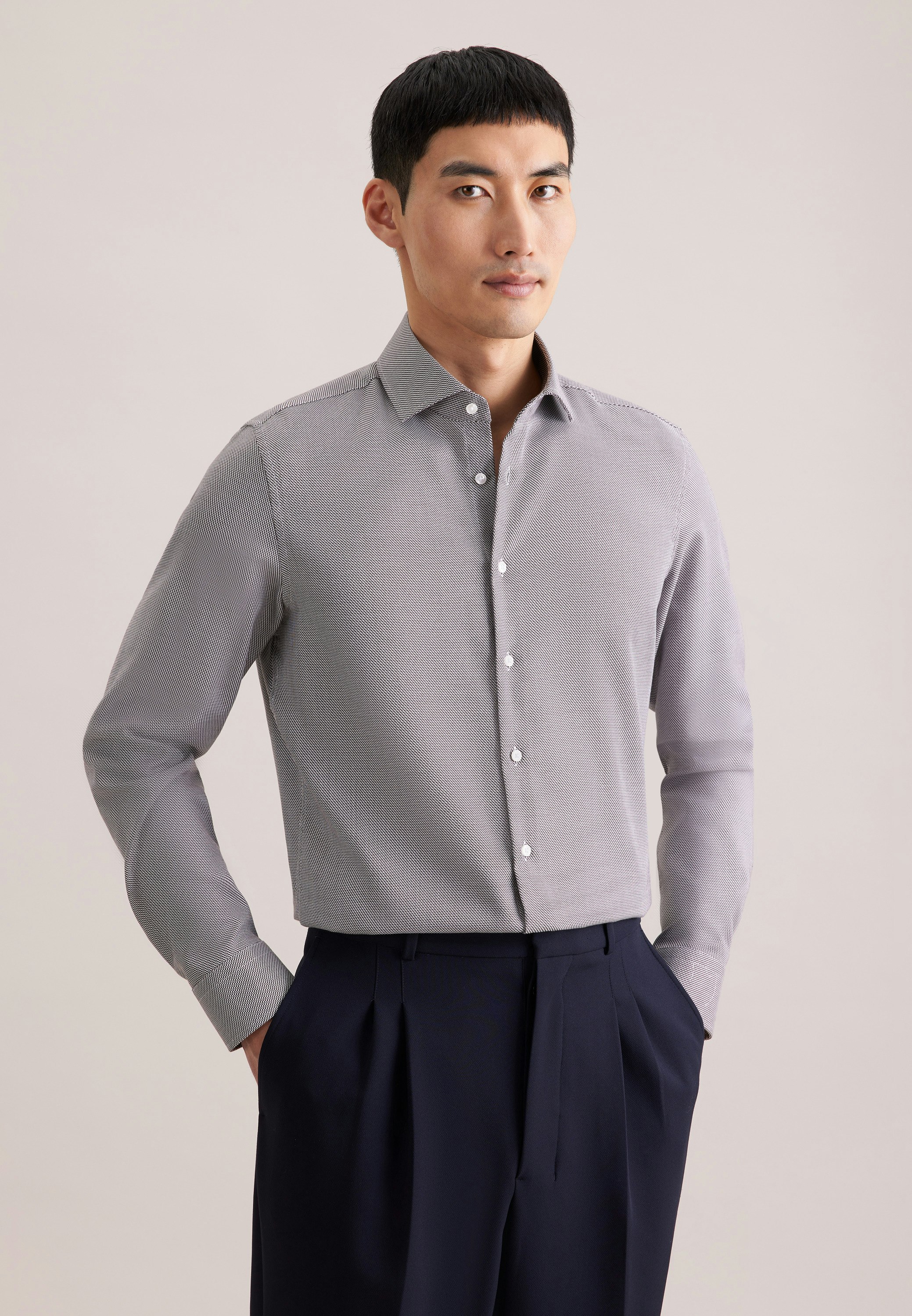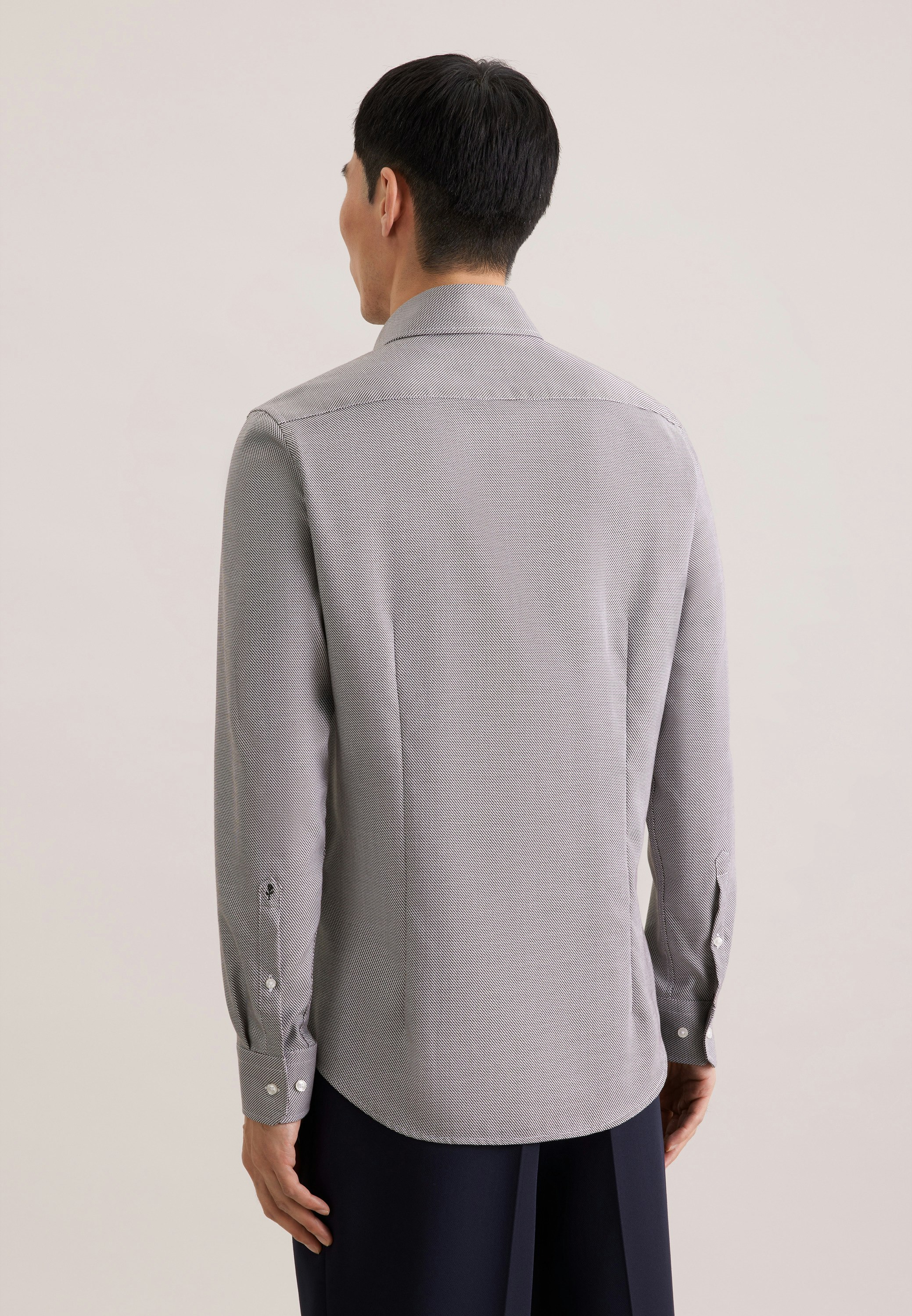 Maskuline Ästhetik: Das blickdichte Business Hemd von Seidensticker aus der "SMART CLASSICS" Kollektion erweitert Ihre Garderobe um einen hochwertigen Look, der den Geist der Zeit trifft. Ob Homeoffice, Büro oder Veranstaltungen - es ist ein eleganter Begleiter, der durch schlichte Eleganz überzeugt. Struktur stellt sich als ideale Leinwand für Ihre ganz eigenen Outfit-Variationen dar. In Kombination mit 100% Baumwolle ist es besonders ansprechend. Mit einem figurbetonten Schnitt gibt das Business Hemd in der Passform Shaped Ihnen genügend Raum, ohne zu eng zu sein. Das charakteristische Kleinmuster ist eine stilvolle Ergänzung. Smarte Modernität mit formellen und legeren Aspekten zeichnet dieses Hemd von Seidensticker aus. Für Liebhaber von eleganten Looks ist dieses Langarm-Business Hemd eine gute Wahl. Weitenverstellbare Manschetten runden das Bild ab. Besonders herausgearbeitet wird der universelle Business-Charakter durch einen Kentkragen. Wir übernehmen soziale Verantwortung - dieses Business Hemd entspricht unseren hohen Ansprüchen an nachhaltigen Rohstoff-Anbau sowie verantwortungsvolle Herstellung und wird frei von Plastik verpackt.