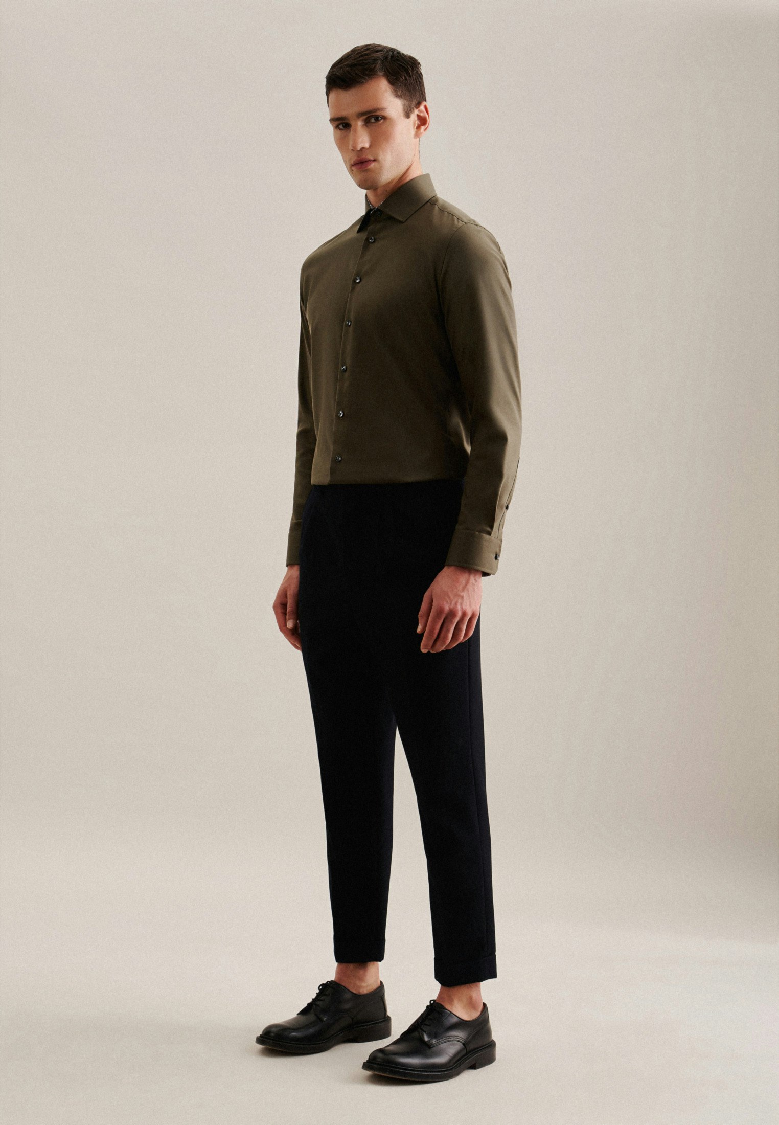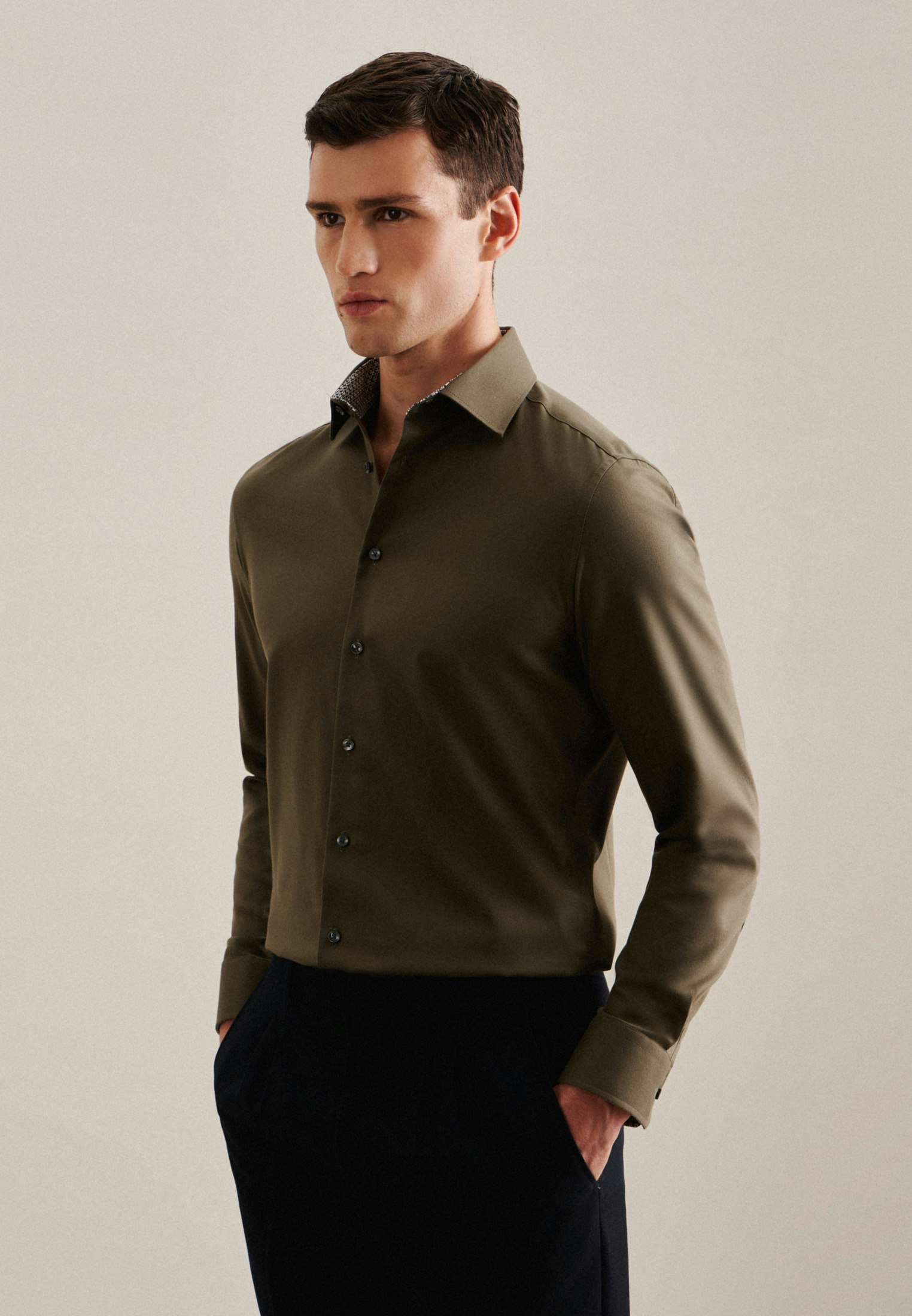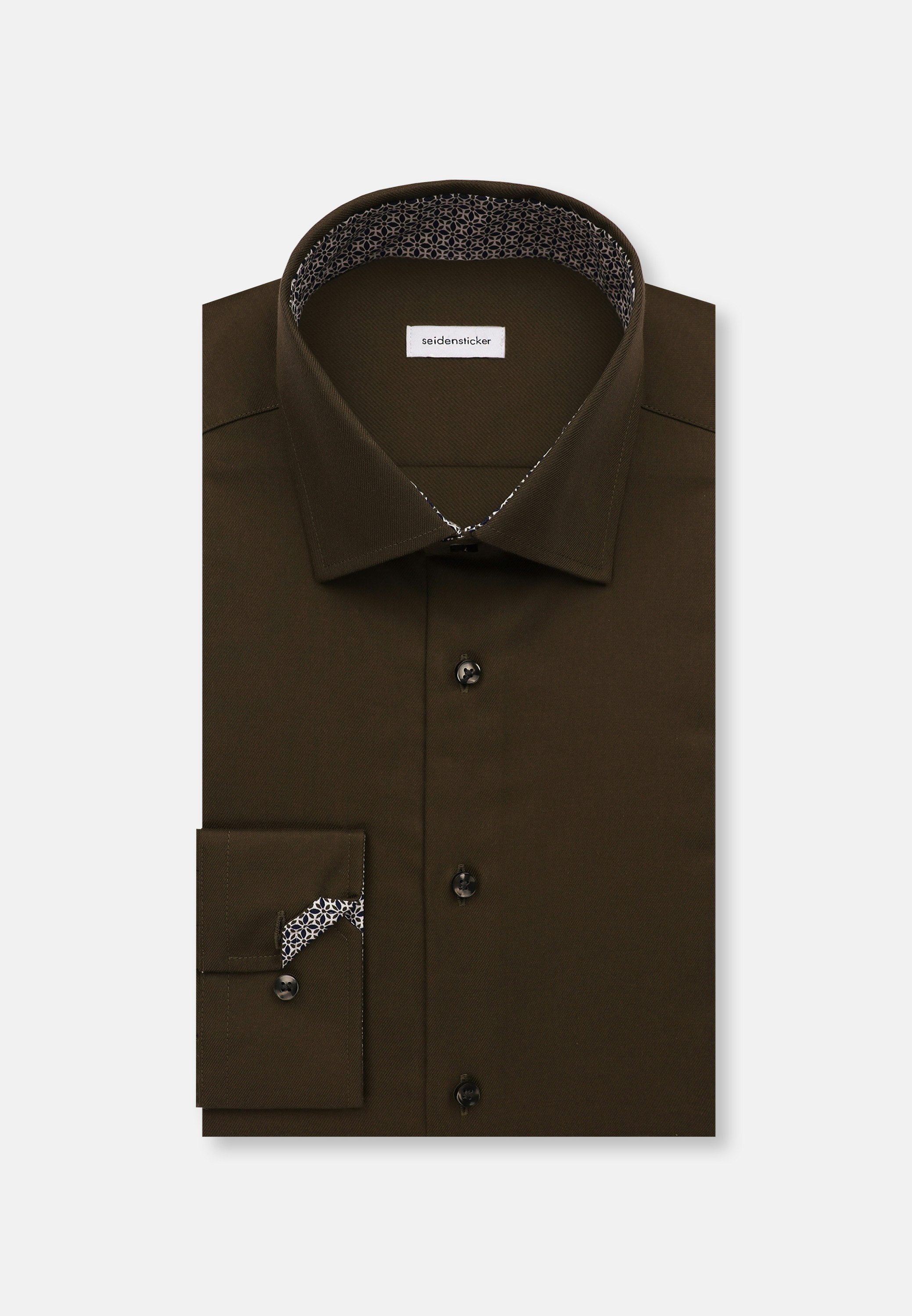 Vervollständigt Ihr Outfit und darf in keiner Garderobe fehlen: Dieses blickdichte Business Hemd aus der "SMART ESSENTIALS" Kollektion von Seidensticker überzeugt durch maskuline Ästhetik. Ob Homeoffice, Veranstaltungen, Büro oder Freizeit - es ist ein eleganter Begleiter, der durch schlichte Eleganz überzeugt. Twill wird besonders hochwertig gewebt. In Kombination mit 100% Baumwolle ist er bequem zu tragen und mit schräg umlaufender Struktur außerordentlich griffig. Die schmale Silhouette dieses Business Hemds in der Passform Shaped betont Ihre Figur ohne dabei zu eng anzuliegen. Balanceakt zwischen Klassik und Moderne: das smarte Seidensticker Hemd. Bei diesem Langarm-Business Hemd werden Stilsicherheit und Eleganz hervorgehoben. Weitenverstellbare Manschetten ergänzen das Gesamtbild. Besonders hervorgehoben wird der universelle Business-Charakter durch einen Kentkragen.