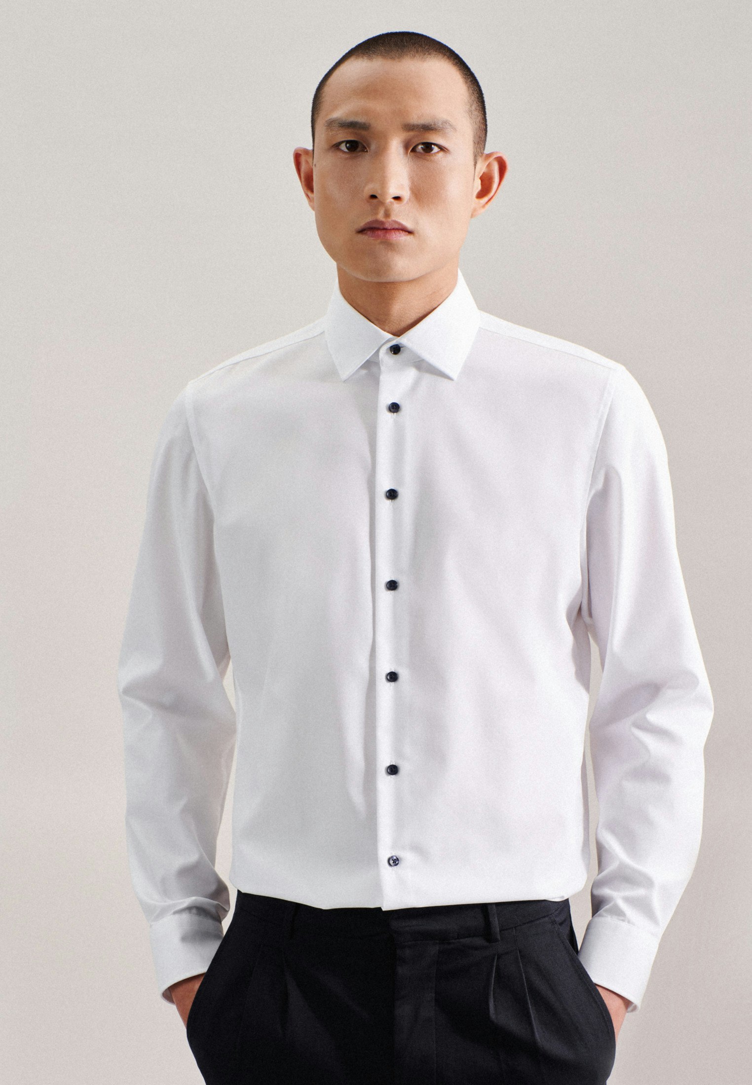 Maskuline Ästhetik: Das Business Hemd von Seidensticker aus der "SMART ESSENTIALS" Kollektion erweitert Ihre Garderobe um einen hochwertigen Look, der den Geist der Zeit trifft. Es ist ein vielseitiger Klassiker, der sich ideal für Büro, Freizeit, Homeoffice oder Veranstaltungen eignet und zu vielen unterschiedlichen Looks passt. Popeline wird mit hoher Dichte gewebt und ergibt daher ein extrem widerstandsfähiges Material. In Kombination mit 100% Baumwolle ist er ideal für pflegeleichte Business-Outfits. Die Silhouette dieses Business Hemds in der Passform Shaped ist figurbetont ohne zu eng anzuliegen. Balanceakt zwischen klassischem Look und modernen Aspekten: das smarte Seidensticker Hemd. Bei diesem Business Hemd mit extra langem Arm werden Stil und Eleganz hervorgehoben. Weitenverstellbare Manschetten unterstützen das Gesamtbild. Besonders herausgearbeitet wird der universelle Business-Charakter durch einen Kentkragen.