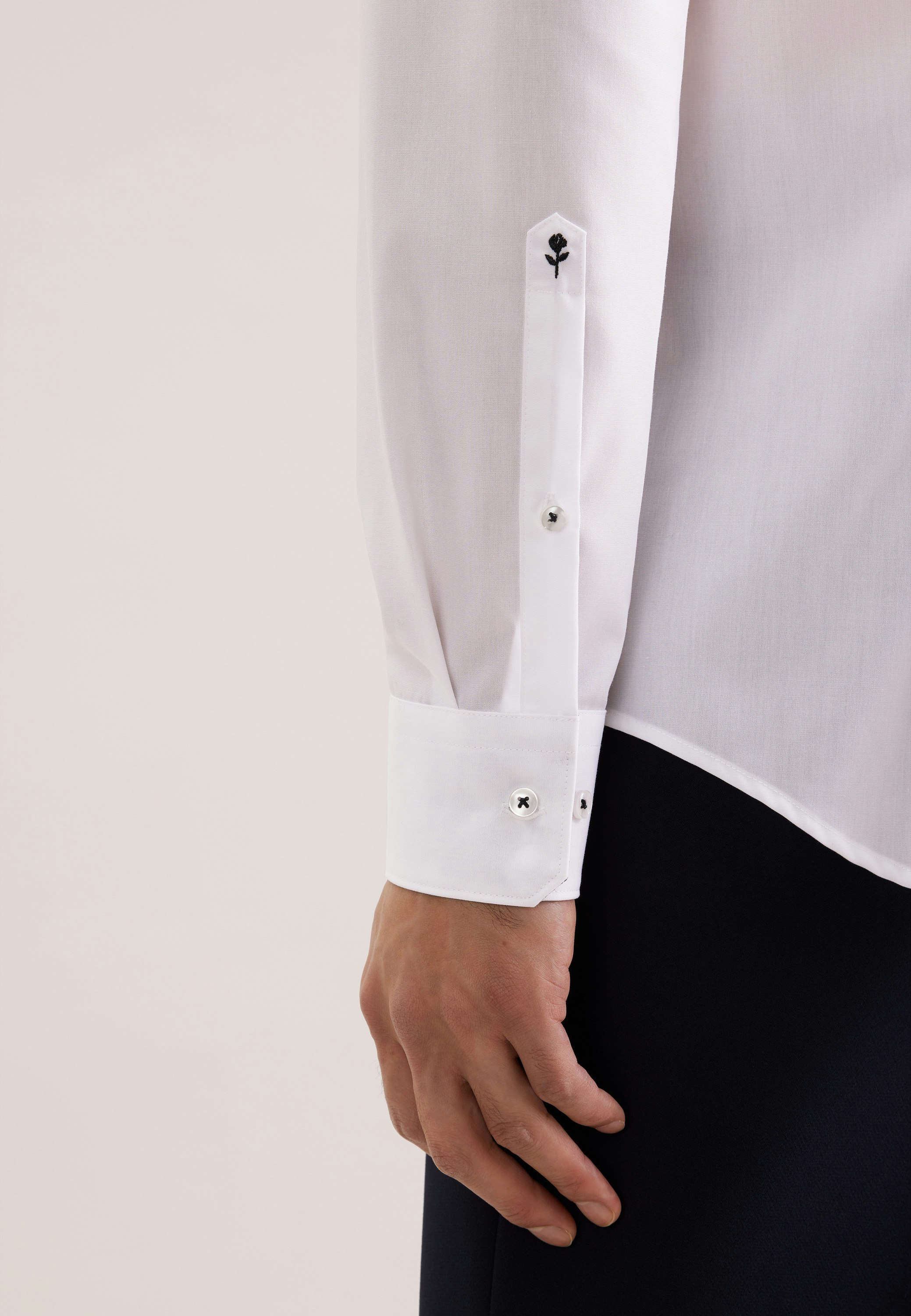 Die Bestickung erfolgt auf der Manschette des rechten Ärmels. Die gezeigte Abbildung dient lediglich zur Vorschau und kann von Ihrer tätsächlichen Auswahl abweichen.