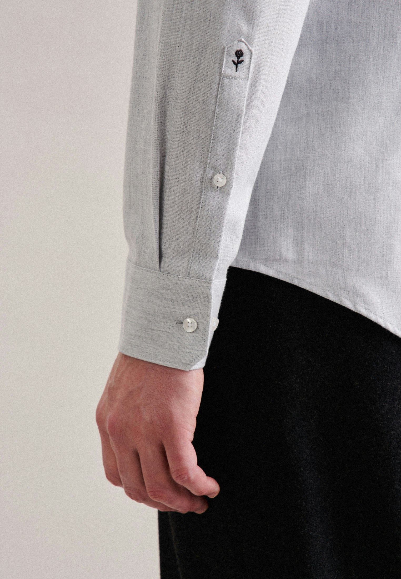 Die Bestickung erfolgt auf der Manschette des rechten Ärmels. Die gezeigte Abbildung dient lediglich zur Vorschau und kann von Ihrer tätsächlichen Auswahl abweichen.