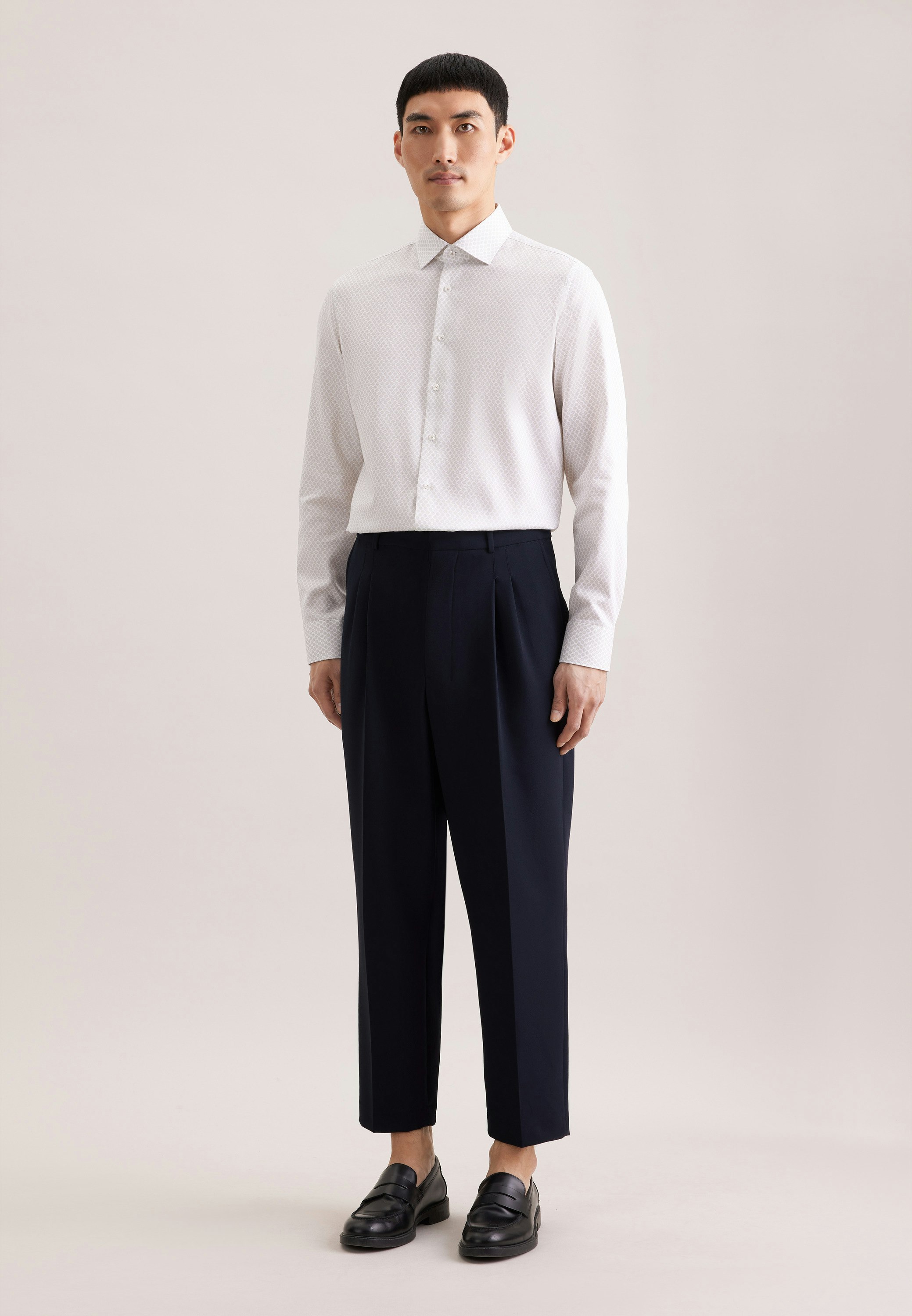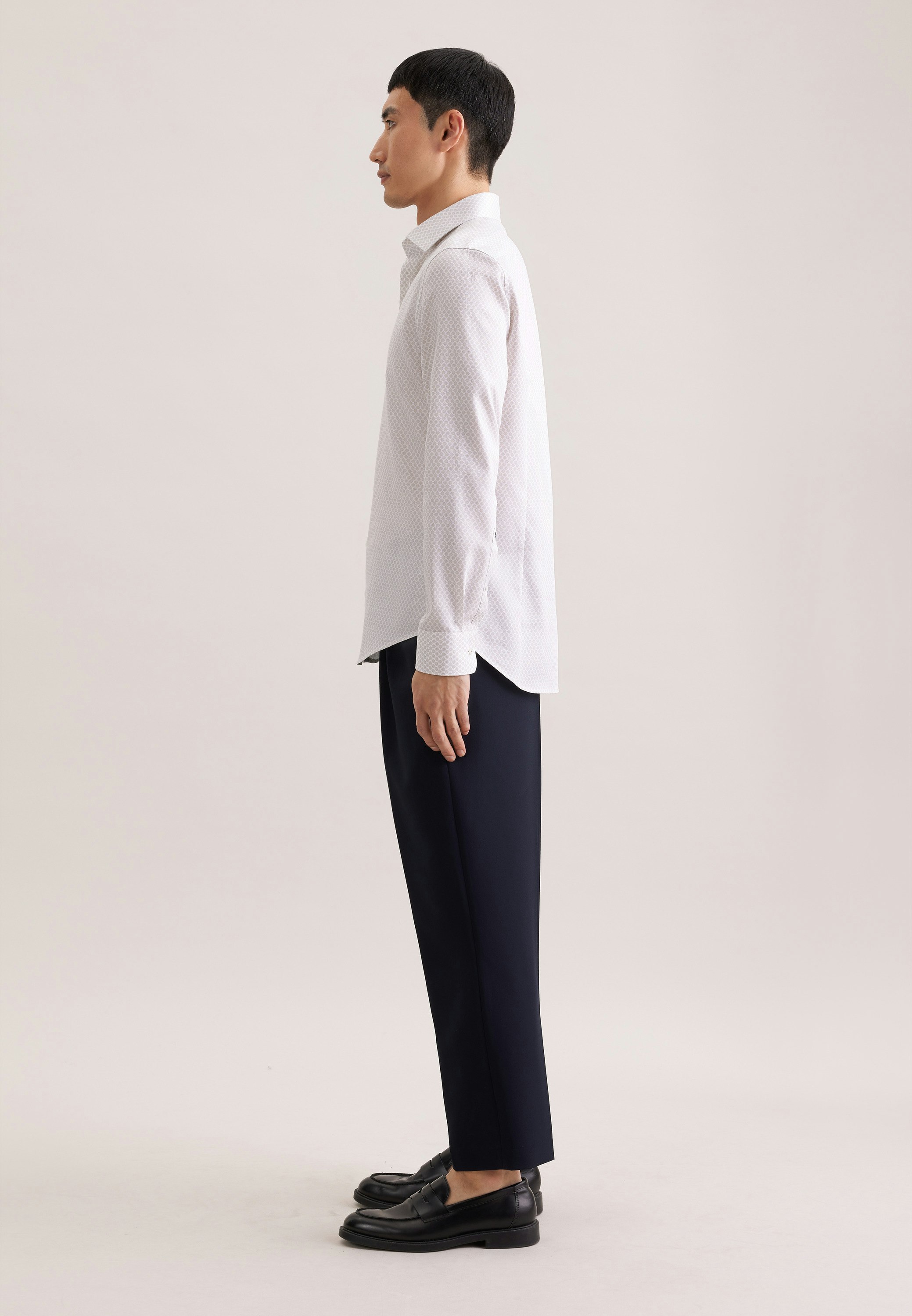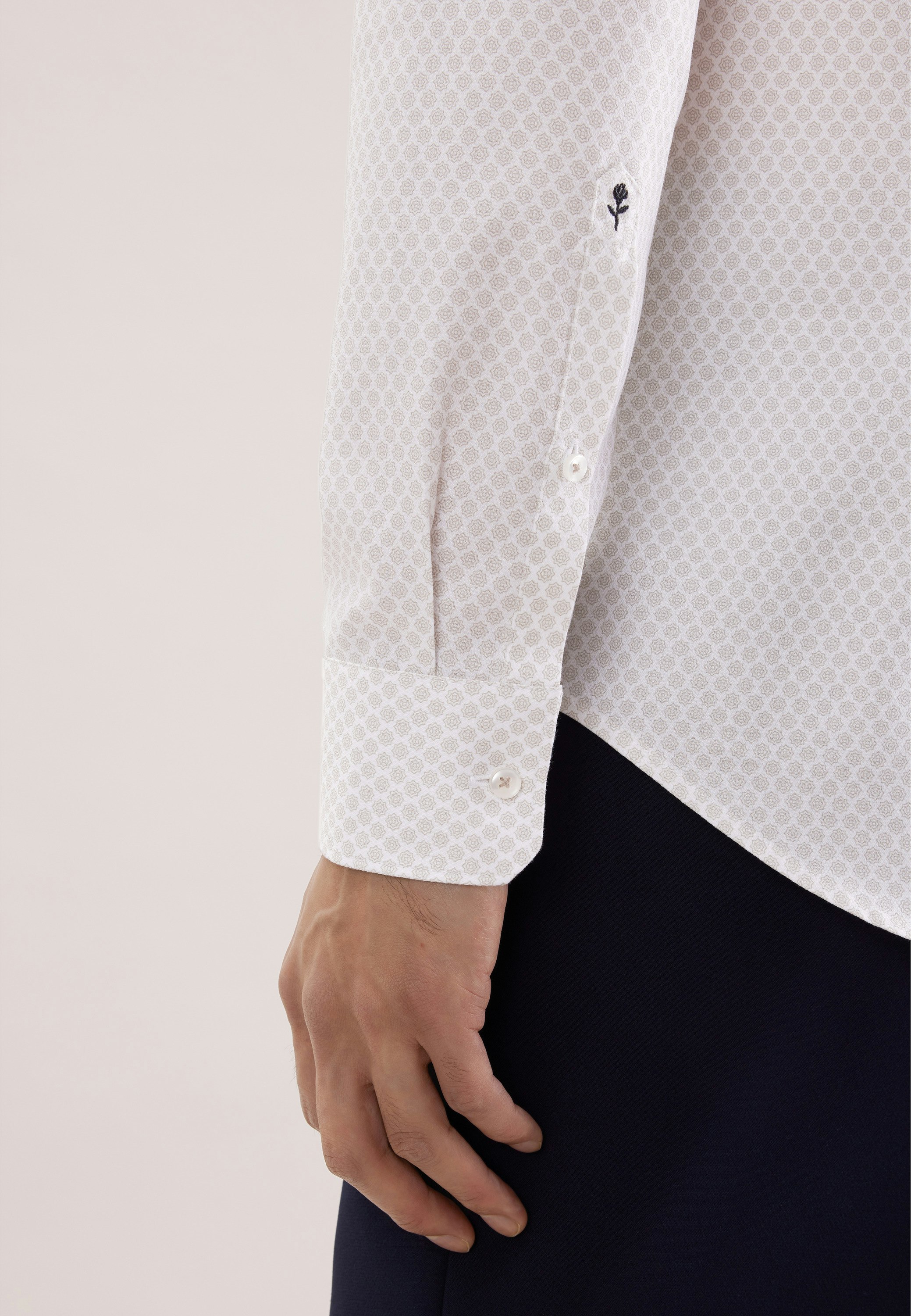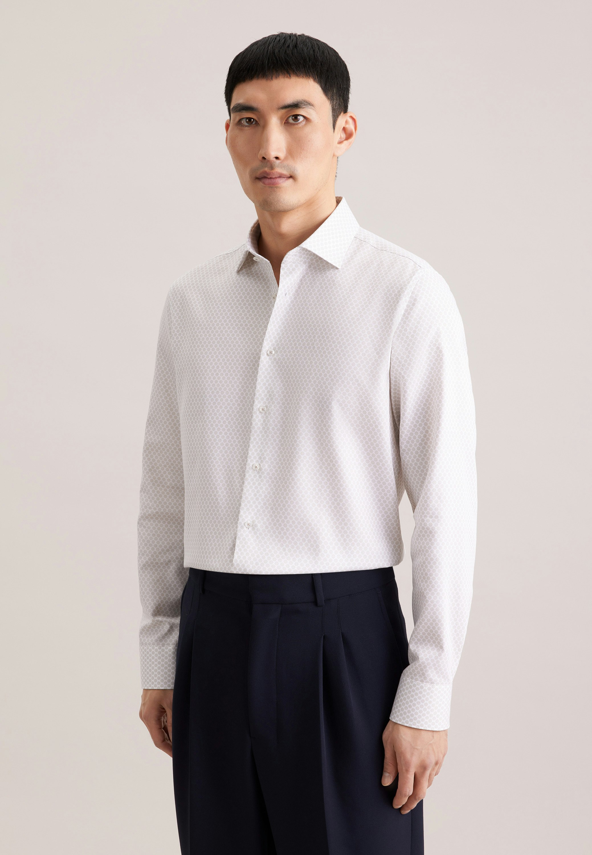 Vervollständigt Ihr Outfit und sollte in keiner Garderobe fehlen: Dieses 1/1-Business Hemd aus der "SMART ESSENTIALS" Kollektion von Seidensticker überzeugt durch maskuline Ästhetik. Es ist ein perfekter Begleiter, der sich ideal für Büro, Veranstaltungen, Freizeit oder Homeoffice eignet und überall überzeugt. In Slim Fit zeigt sich das Business Hemd äußerst figurbetont. Das charakteristische Druck-Muster macht es zu einem absoluten Must-have. Balanceakt zwischen klassischem Look und modernen Aspekten: das smarte Seidensticker Hemd. Durch den Kentkragen wird der universelle Business-Charakter unterstrichen.