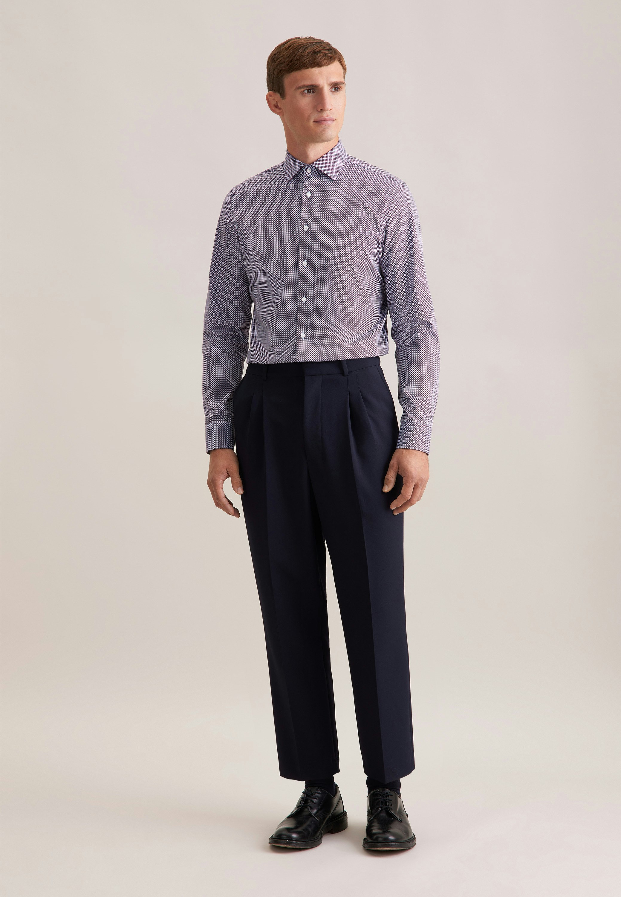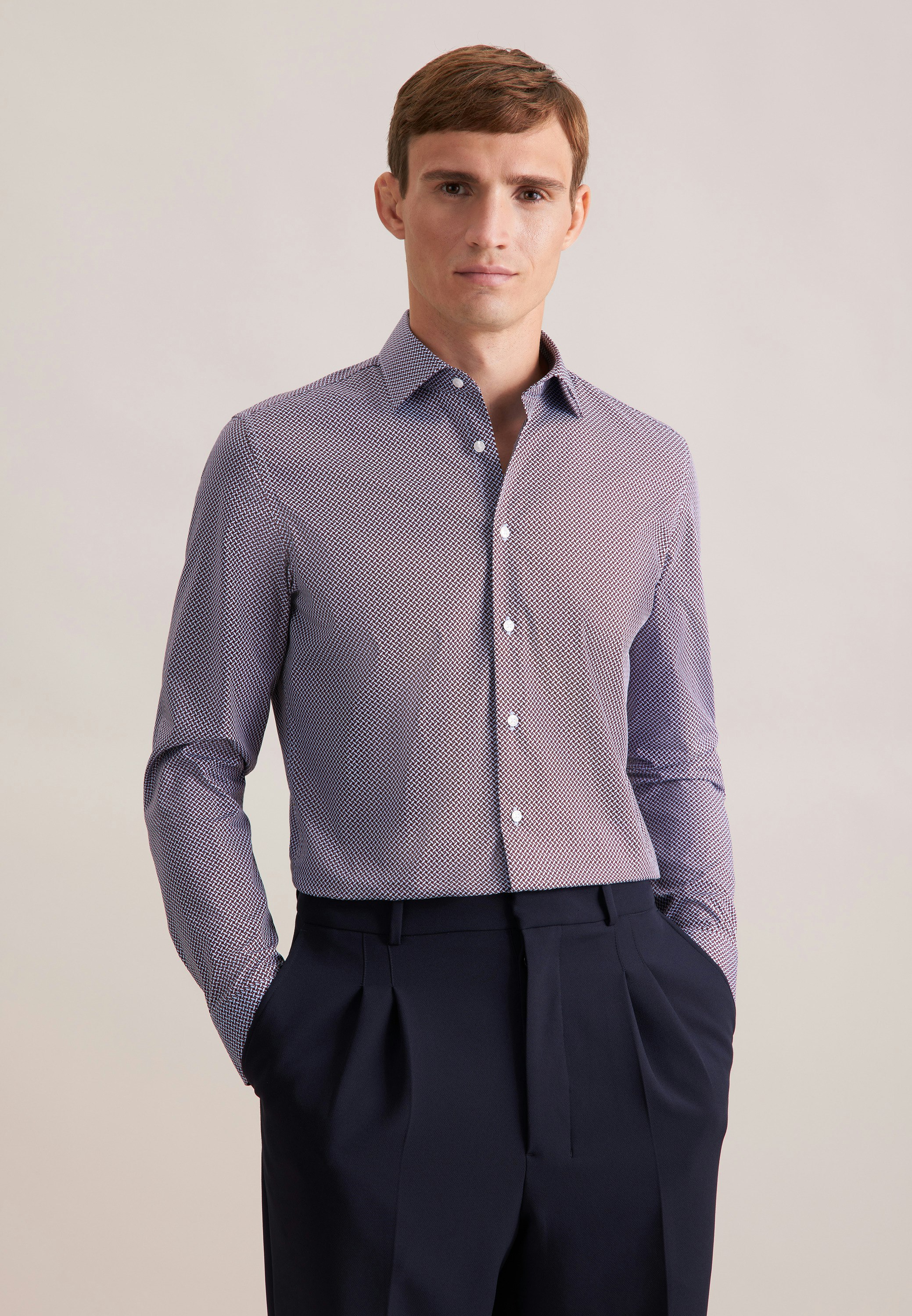 Komplettiert Ihr Outfit und darf in keiner Garderobe fehlen: Dieses 1/1-Business Hemd aus der "SMART ESSENTIALS" Kollektion von Seidensticker überzeugt durch maskuline Ästhetik. Es ist ein vielseitiger Begleiter, der sich ideal für Homeoffice, Büro, Veranstaltungen oder Freizeit eignet und zu jeder Gelegenheit getragen werden kann. Als Slim Fit ist das Business Hemd eher schmal und figurbetont. Das attraktive Geometrische Muster-Muster verleiht dazu die passenden modischen Nuancen. Dieses Hemd verkörpert zeitlose Eleganz mit modernem Stil. Ein Kentkragen unterstreicht den universellen Business-Charakter.
