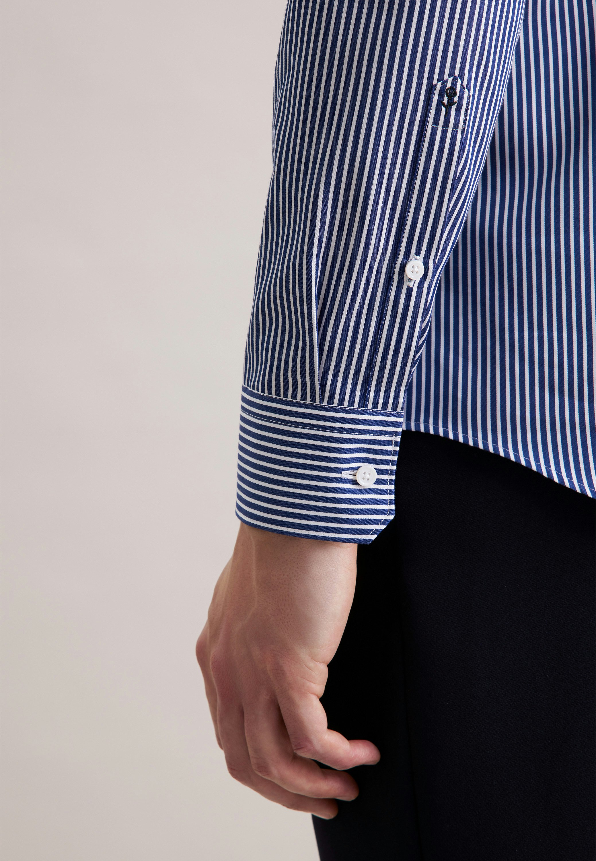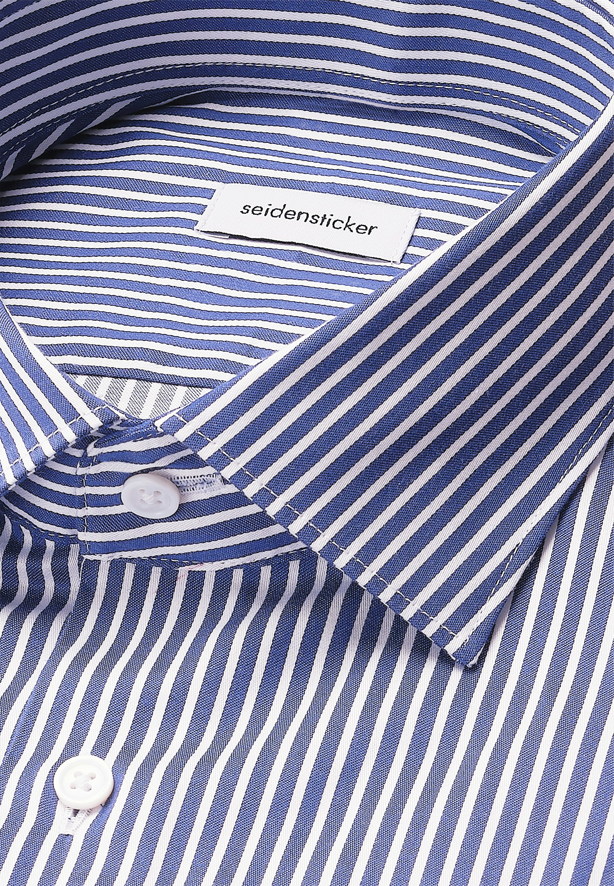 Maskuline Ästhetik: Ihre Silhouette wird stilvoll inszeniert mit dem 1/1-Business Hemd von Seidensticker aus der "SMART CLASSICS" Kollektion. Es kann im Homeoffice, im Büro oder bei Veranstaltungen getragen werden. Als Slim Fit ist das Business Hemd eher schmal und figurbetont. Das charakteristische Gestreift-Muster macht es zu einem absoluten Must-have. Balanceakt zwischen klassischem Look und modernen Aspekten: das smarte Seidensticker Hemd. Dank des Kentkragens wird der universelle Business-Charakter hervorgehoben.