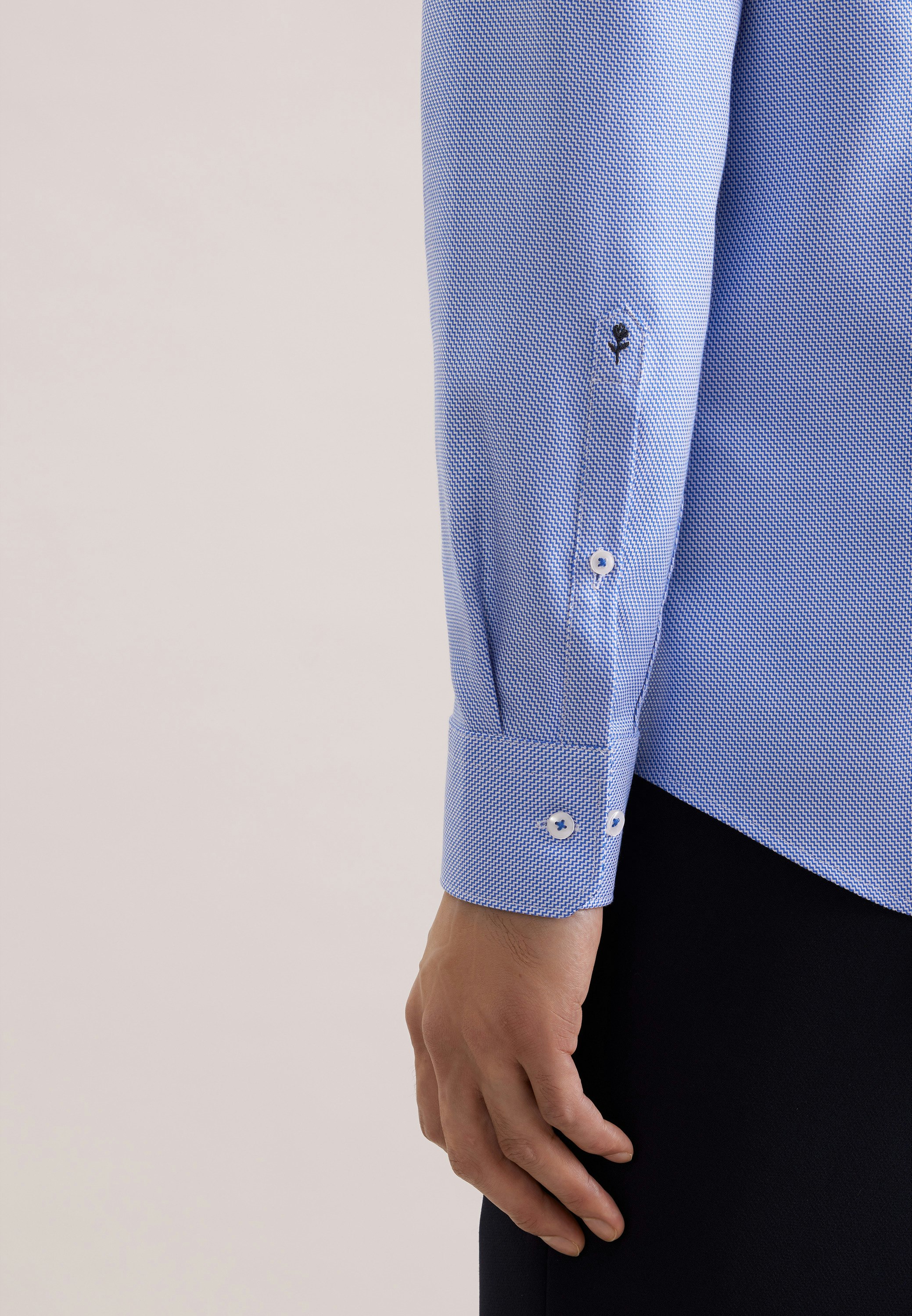 Die Bestickung erfolgt auf der Manschette des rechten Ärmels. Die gezeigte Abbildung dient lediglich zur Vorschau und kann von Ihrer tätsächlichen Auswahl abweichen.