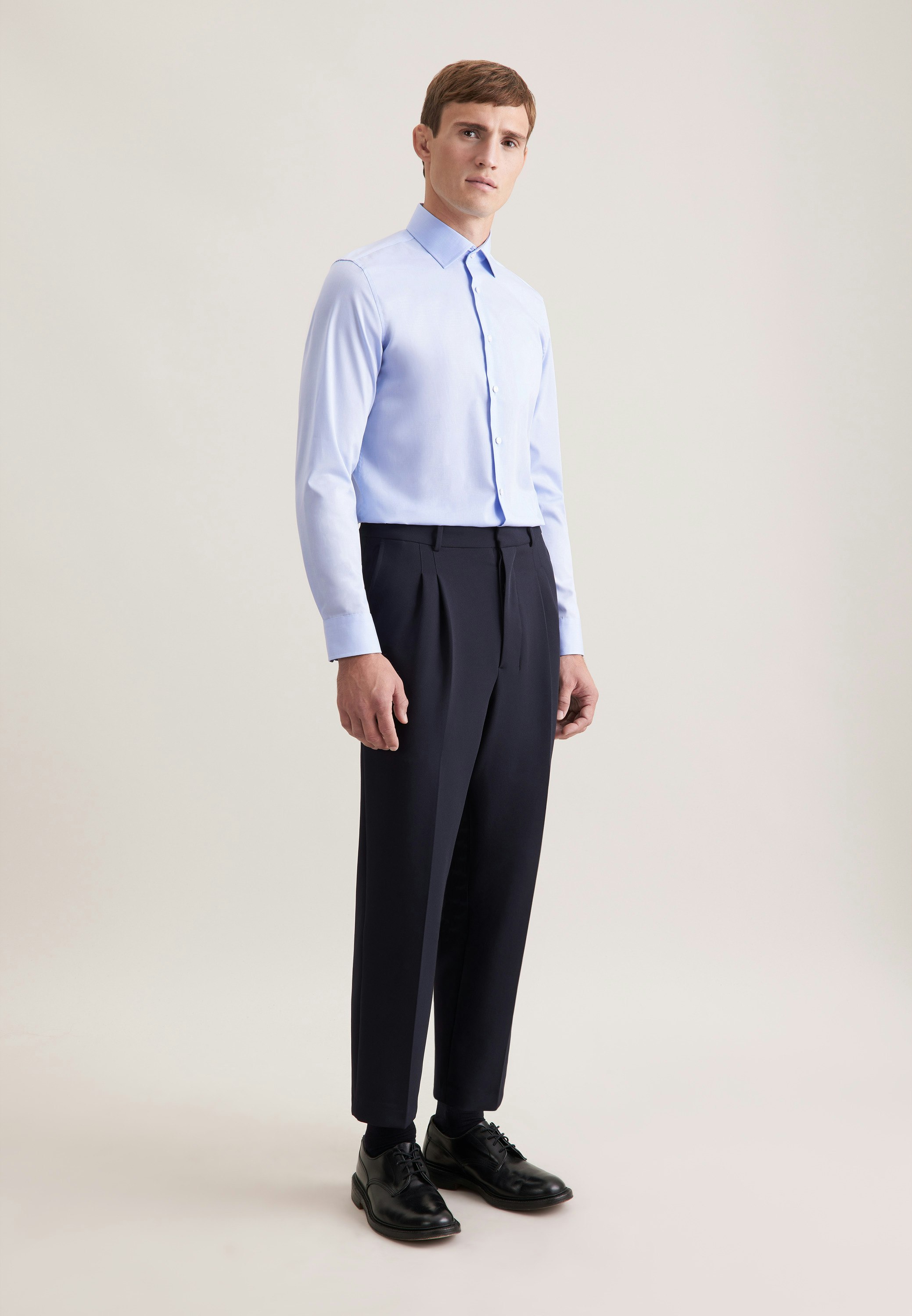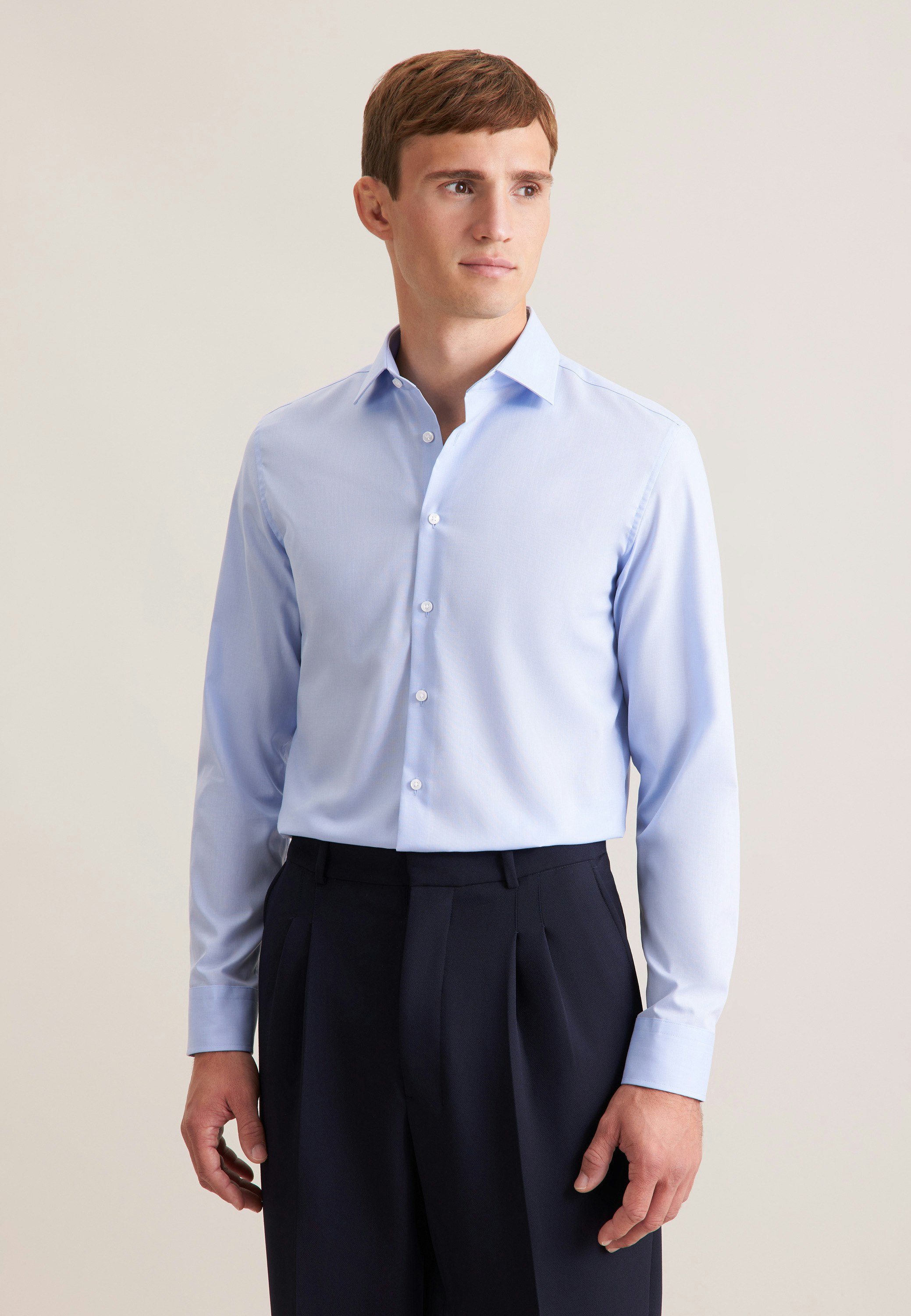 Ein zeitloses, dennoch elegantes Hemd in neutraler Farbe und Optik. Passt auch als sportlich-klassische Kombination gut zur Jeans und man sieht immer gut angezogen aus. Leider ist es nicht so ganz bügelfrei. Trotzdem empfehle ich es auf jeden Fall.