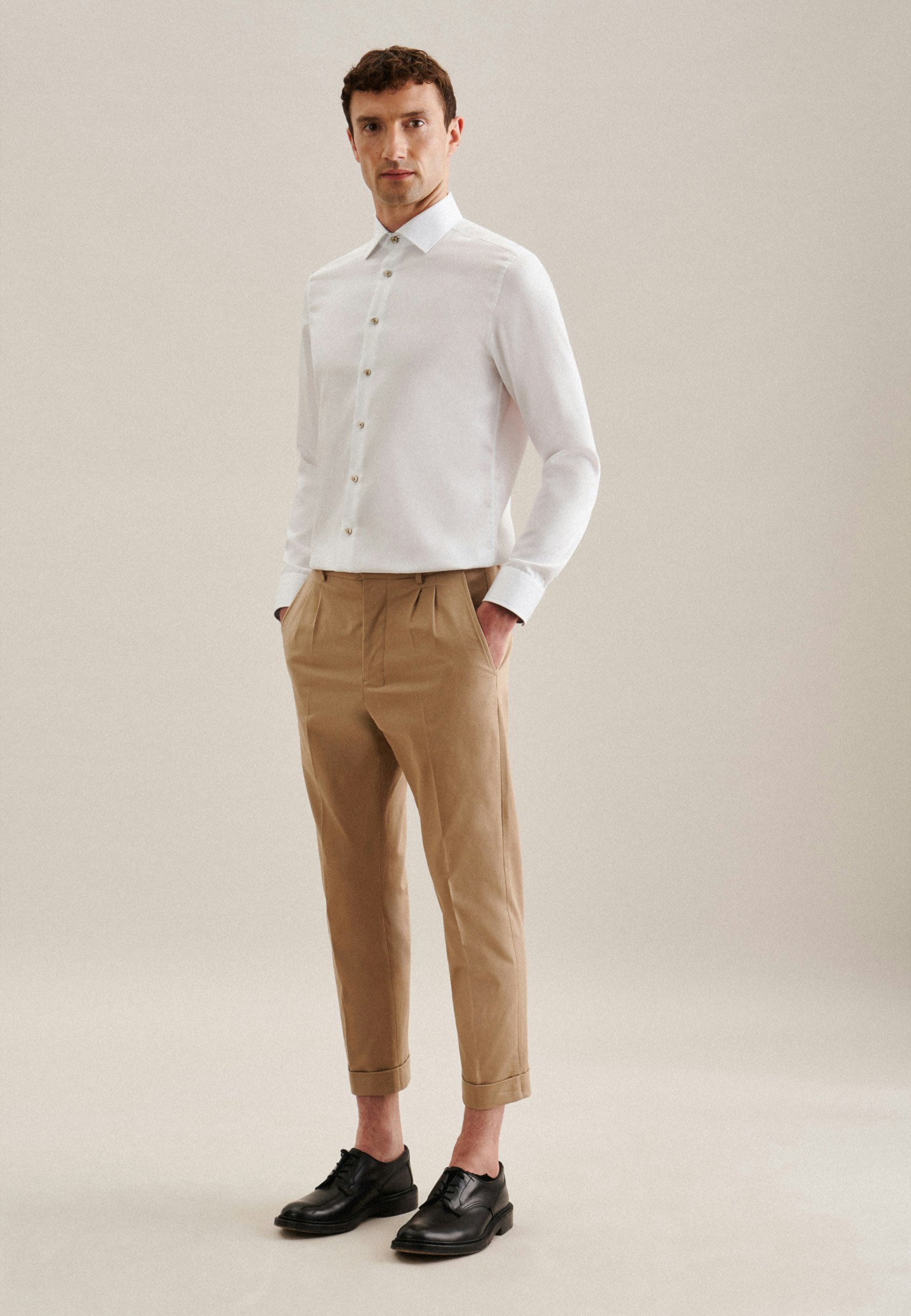 Vervollständigt Ihr Outfit und darf in keiner Garderobe fehlen: Dieses blickdichte Business Hemd aus der "SMART ESSENTIALS" Kollektion von Seidensticker überzeugt durch maskuline Ästhetik. Ob Homeoffice, Freizeit, Veranstaltungen oder Büro - es ist ein eleganter Begleiter, der durch schlichte Eleganz überzeugt. Twill wird besonders hochwertig gewebt. In Kombination mit 100% Baumwolle ist er bequem zu tragen und mit schräg umlaufender Struktur außerordentlich griffig. Als Slim Fit ist das Business Hemd eher schmal und figurbetont. Balanceakt zwischen Klassik und Moderne: das smarte Seidensticker Hemd. Dank elegantem Stil liegen Sie mit diesem Business Hemd mit extra langem Arm stets richtig. Weitenverstellbare Manschetten vollenden das Gesamtbild. Ein Kentkragen unterstreicht den universellen Business-Charakter.