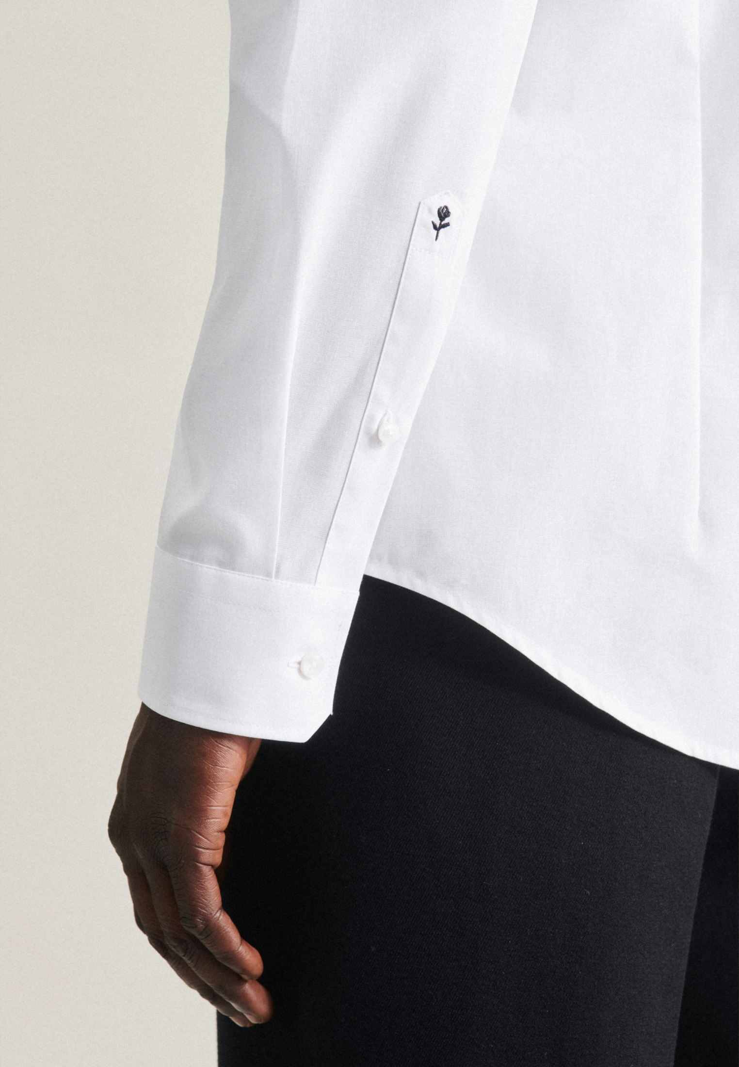 Die Bestickung erfolgt auf der Manschette des rechten Ärmels. Die gezeigte Abbildung dient lediglich zur Vorschau und kann von Ihrer tätsächlichen Auswahl abweichen.