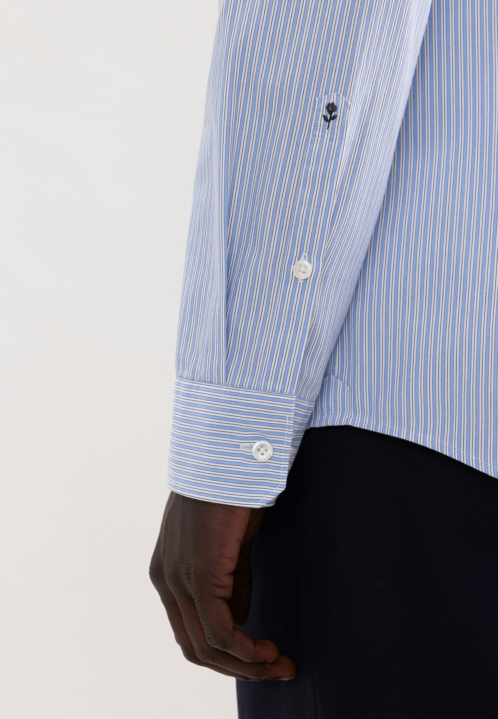 Die Bestickung erfolgt auf der Manschette des rechten Ärmels. Die gezeigte Abbildung dient lediglich zur Vorschau und kann von Ihrer tätsächlichen Auswahl abweichen.