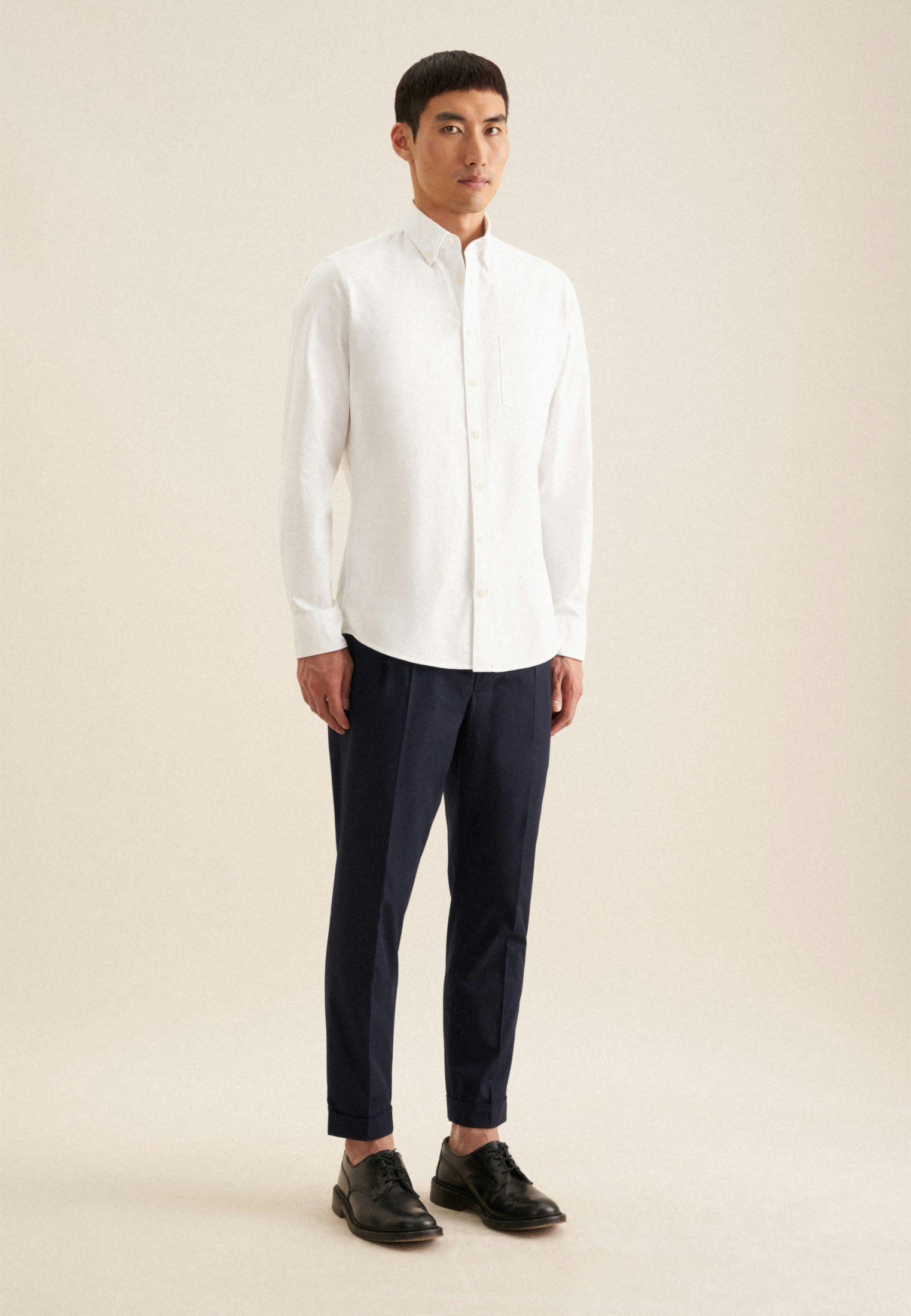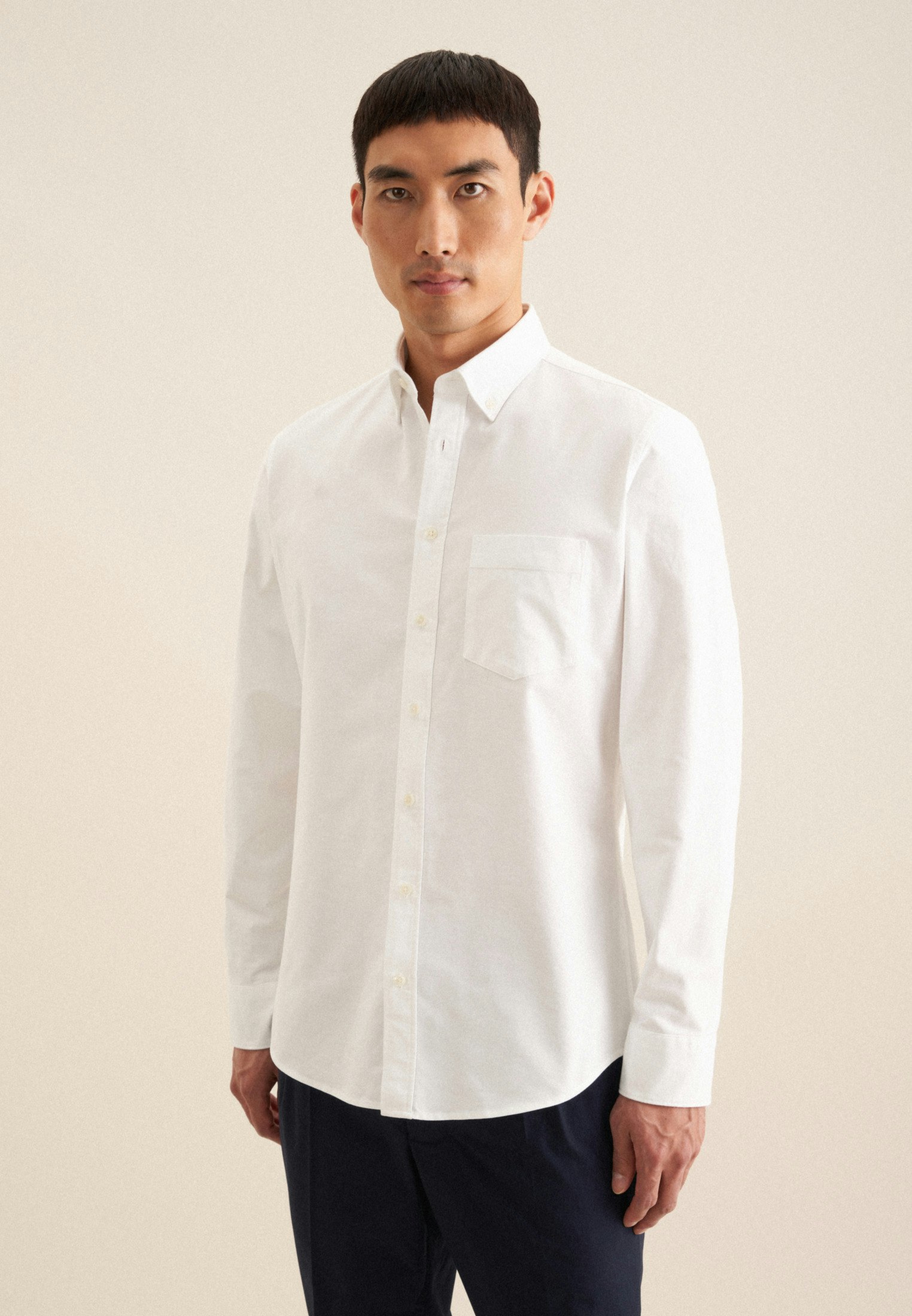 Maskuline Ästhetik: Ihre Silhouette wird stilvoll inszeniert mit dem Casual Hemd von Seidensticker aus der "SMART CASUAL" Kollektion. Ob Freizeit, Homeoffice, Veranstaltungen oder Büro - es ist ein eleganter Begleiter, der durch schlichte Eleganz überzeugt. Oxford wird soft sowie zugleich kräftig gewebt und besticht durch eine dichte, stark strukturierte Optik. In Kombination mit 100% Baumwolle ist er ideal für smarte Looks geeignet. Als Slim Fit ist das Casual Hemd recht schmal und sehr figurbetont. Balanceakt zwischen klassischem Look und modernen Aspekten: das elegante Seidensticker Hemd. Für Liebhaber von eleganten Looks ist dieses Langarm-Casual Hemd genau die richtige Wahl. Ein Button-Down-Kragen unterstreicht den sportlich-modernen Charakter.