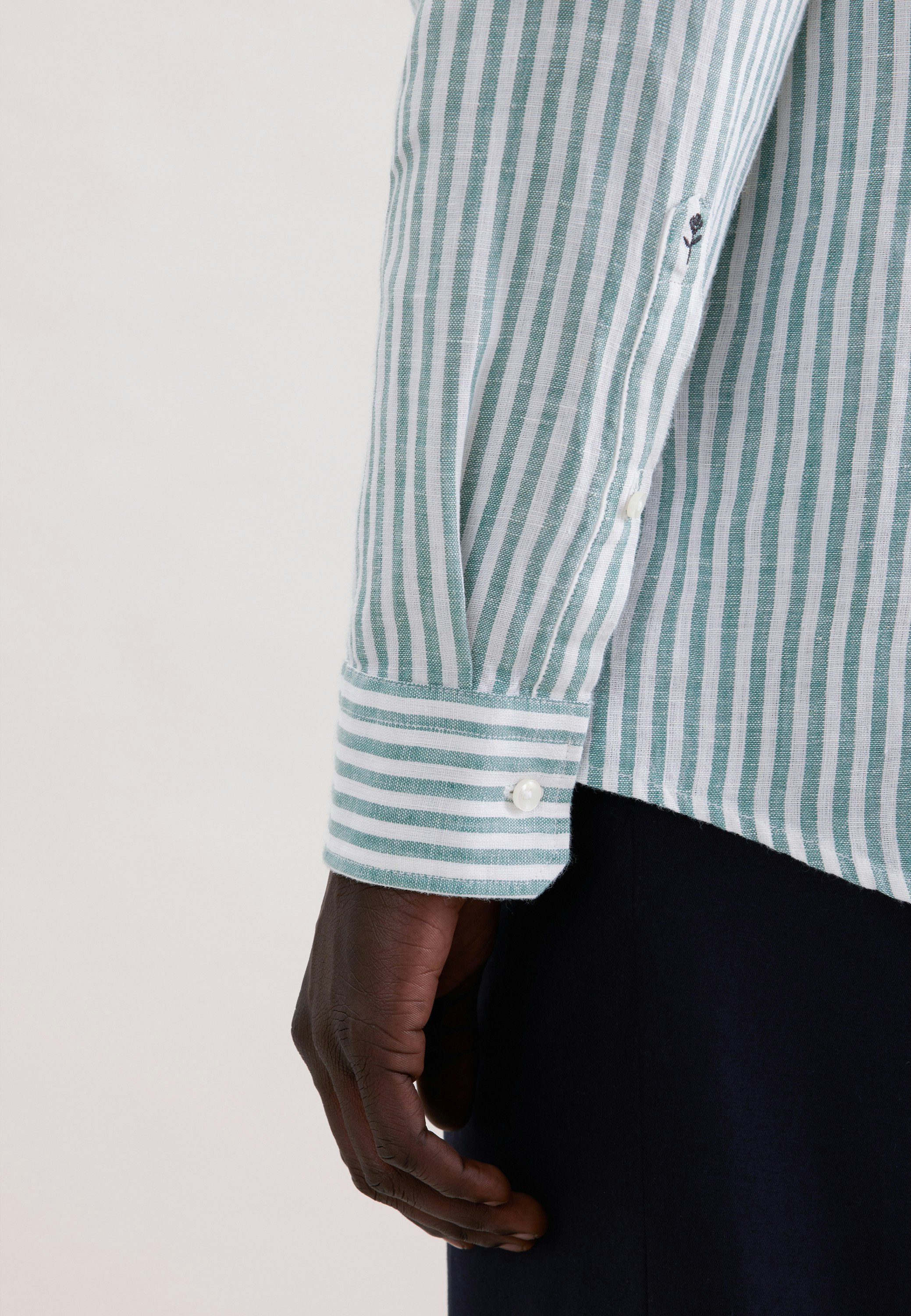 Die Bestickung erfolgt auf der Manschette des rechten Ärmels. Die gezeigte Abbildung dient lediglich zur Vorschau und kann von Ihrer tätsächlichen Auswahl abweichen.