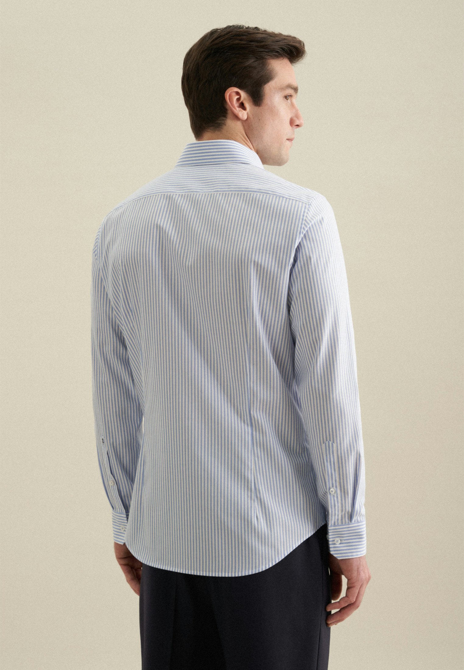 Komplettiert Ihr Outfit und darf in keiner Garderobe fehlen: Dieses Business Hemd aus der "SMART ESSENTIALS" Kollektion von Seidensticker überzeugt durch maskuline Ästhetik. Es kann in der Freizeit, im Homeoffice, im Büro oder bei Veranstaltungen getragen werden. Die Webart Popeline aus 100% Baumwolle ist mit hoher Dichte gewebt und daher extra widerstandsfähig, was sie perfekt für pflegeleichte Business-Outfits macht. Mit einem besonders figurbetonten Schnitt liegt das Business Hemd in der Passform X-Slim sehr nah am Körper an. Durch das Streifen-Muster mit Patch im Kragen und Knopfleiste ist Ihr neues Kleidungsstück die perfekte Wahl für geschmackvolle Looks. Dieses Hemd verkörpert klassische Eleganz mit modernem Schliff. Für Liebhaber von eleganten Looks ist dieses Langarm-Business Hemd eine gute Wahl. Weitenverstellbare Manschetten unterstützen das Gesamtbild. Ein Kentkragen betont den universellen Business-Charakter.