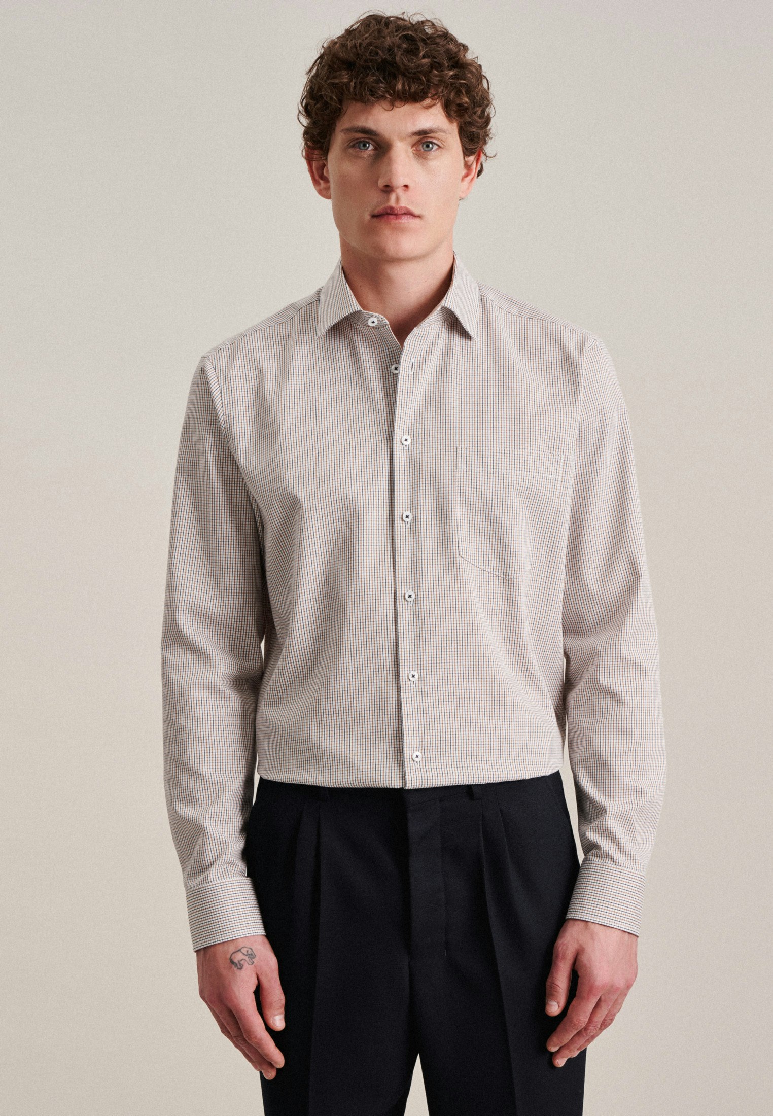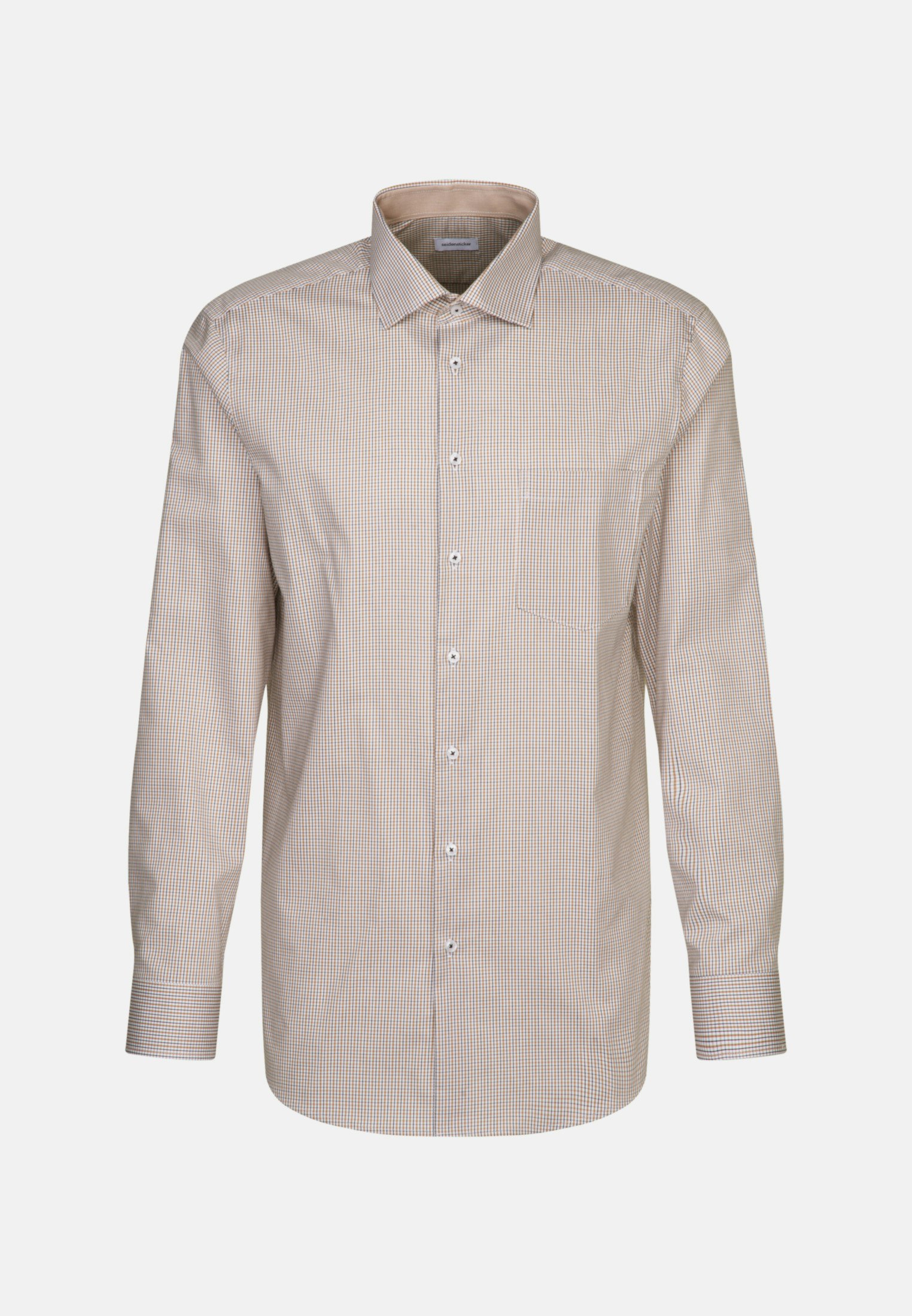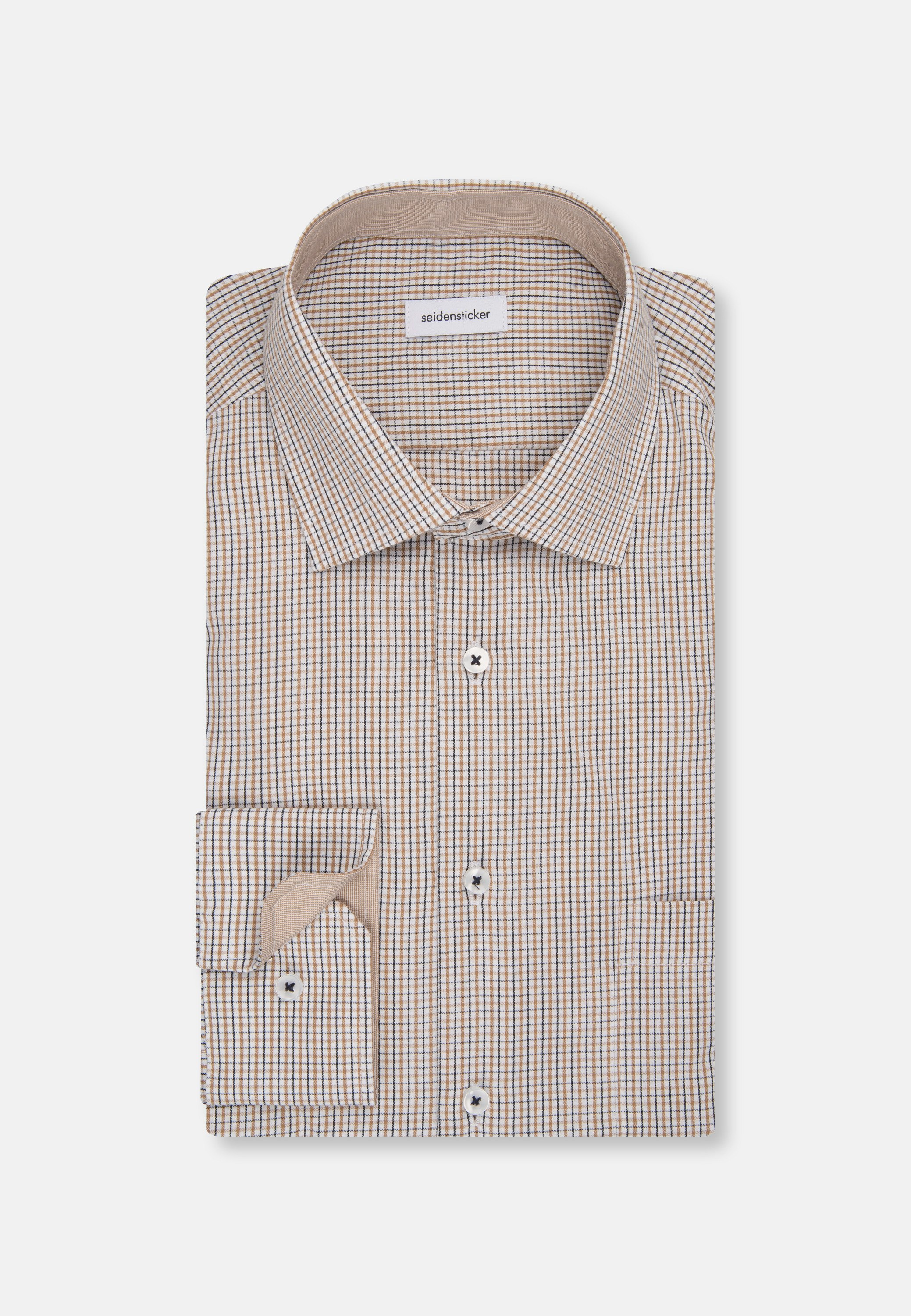 Maskuline Ästhetik: Sorgen Sie für ein stilvolles Erscheinungsbild mit dem Business Hemd von Seidensticker aus der "SMART ESSENTIALS" Kollektion. Es ist ein perfekter Begleiter, der sich ideal für Homeoffice, Büro, Freizeit oder Veranstaltungen eignet und zu jeder Gelegenheit getragen werden kann. Twill wird besonders hochwertig gewebt. In Kombination mit 100% Baumwolle ist er bequem zu tragen und mit schräg umlaufender Struktur außerordentlich griffig. In der Passform Comfort ist das Business Hemd eine lässige Casual-Variante. Das raffinierte Karo-Muster mit Patch in Kragen und Manschetten setzt optische Akzente. Smarte Modernität mit formellen und lockeren Aspekten zeichnet dieses Hemd von Seidensticker aus. Bei diesem Langarm-Business Hemd werden Stil und Eleganz hervorgehoben. Weitenverstellbare Manschetten unterstützen das Gesamtbild. Ein Kentkragen betont den universellen Business-Charakter. Als interessantes Detail ist zudem eine Brusttasche verarbeitet worden.
