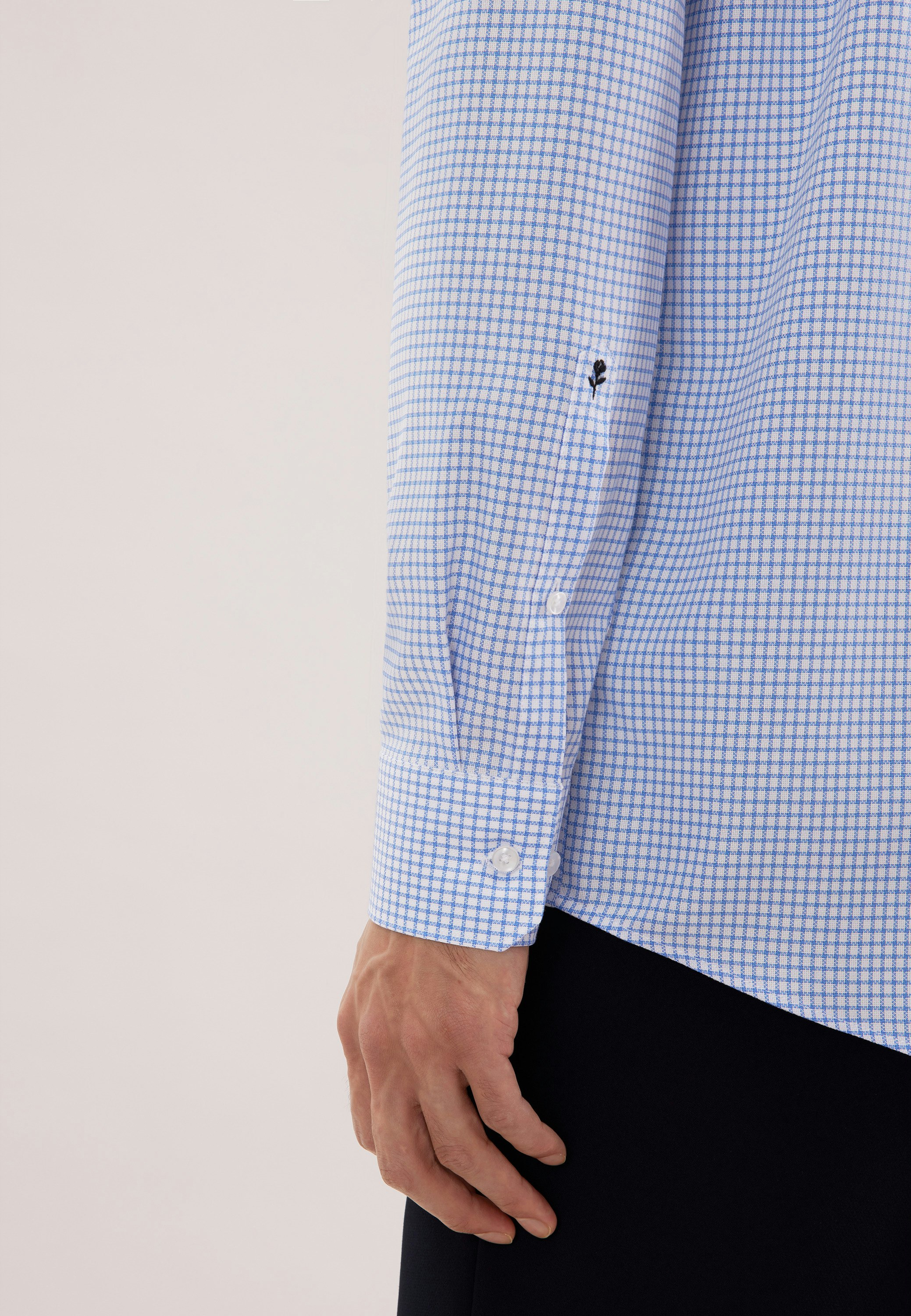 Die Bestickung erfolgt auf der Manschette des rechten Ärmels. Die gezeigte Abbildung dient lediglich zur Vorschau und kann von Ihrer tätsächlichen Auswahl abweichen.