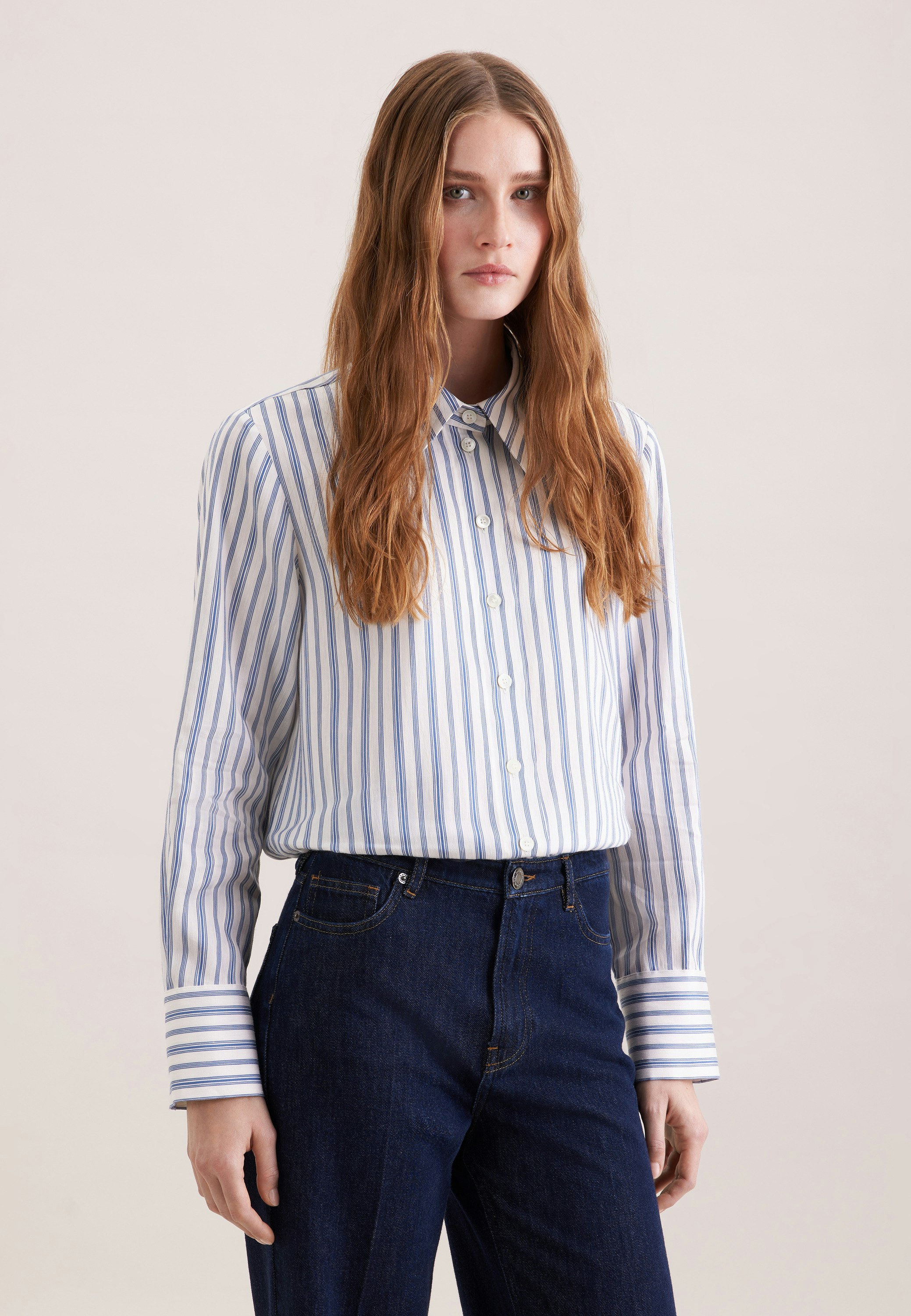 Vervollständigt Ihr Outfit und sollte in keiner Garderobe fehlen: Diese 1/1-Hemdbluse aus der "January Drop 261" Kollektion von Seidensticker überzeugt durch feminine Eleganz. Im klassisch-geraden Regular Schnitt schafft die Hemdbluse höchsten Tragekomfort und liegt nicht so eng an. Durch das Gestreift-Muster ist Ihr neues Kleidungsstück die perfekte Wahl für geschmackvolle Looks. Ein echter Hingucker, der sich als clevere Fusion aus klassischer Noblesse, gepaart mit modernem Dessin präsentiert. Zudem sind edle Mother of pearlknöpfe verwendet worden.