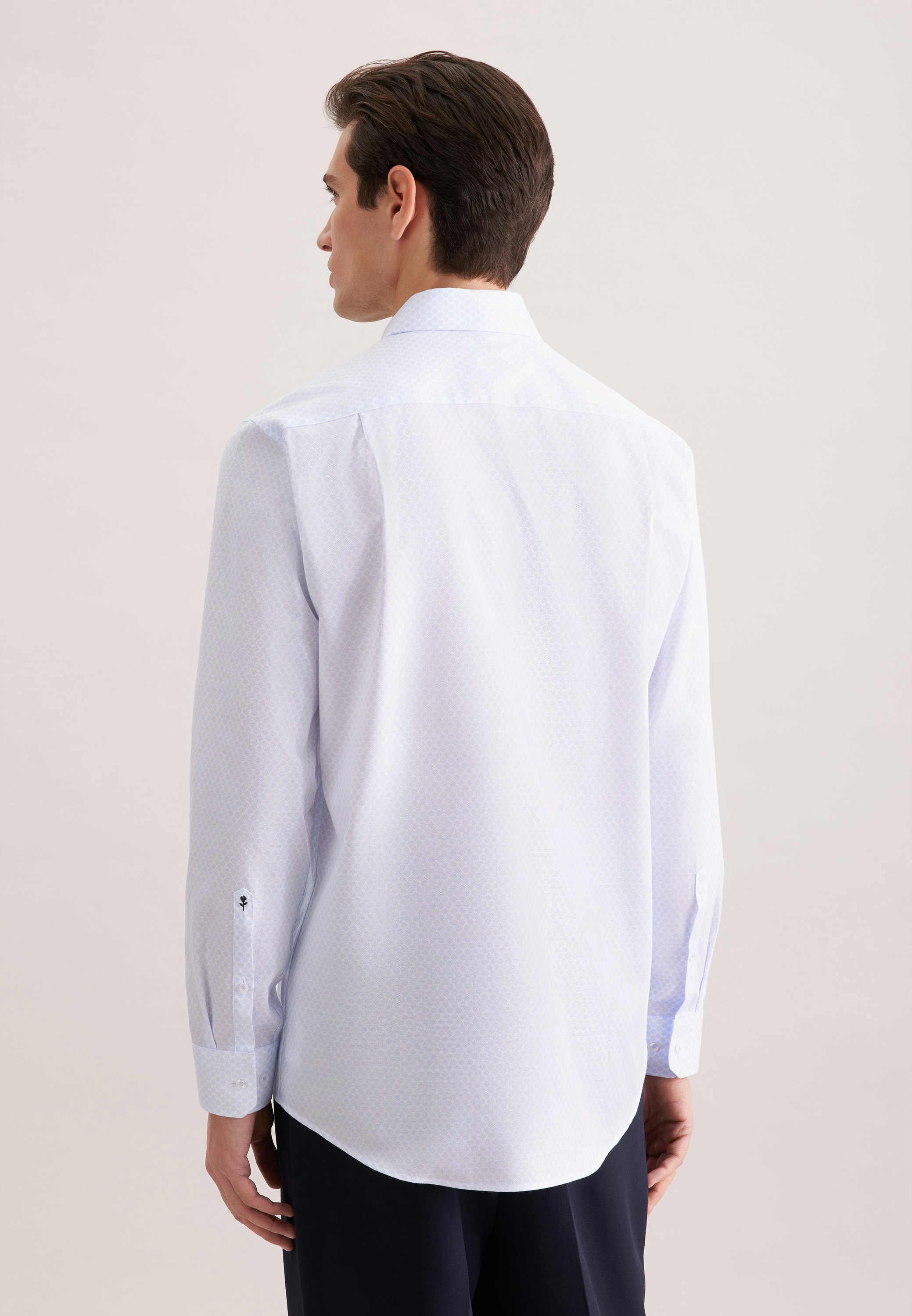 Vervollständigt Ihr Outfit und sollte in keiner Garderobe fehlen: Dieses 1/1-Business Hemd aus der "SMART ESSENTIALS" Kollektion von Seidensticker überzeugt durch maskuline Ästhetik. Es ist ein vielseitiger Klassiker, der sich ideal für Veranstaltungen, Büro, Homeoffice oder Freizeit eignet und zu jeder Gelegenheit getragen werden kann. Im klassisch-geraden Regular Schnitt schafft das Business Hemd hohen Tragekomfort und liegt weniger eng an. Durch das Druck-Muster ist Ihr neues Kleidungsstück die perfekte Wahl für geschmackvolle Looks. Balanceakt zwischen klassischem Look und modernen Aspekten: das smarte Seidensticker Hemd. Ein Kentkragen betont den universellen Business-Charakter.