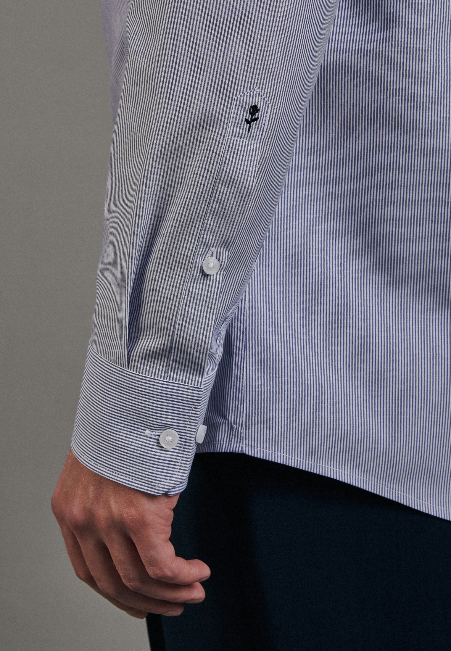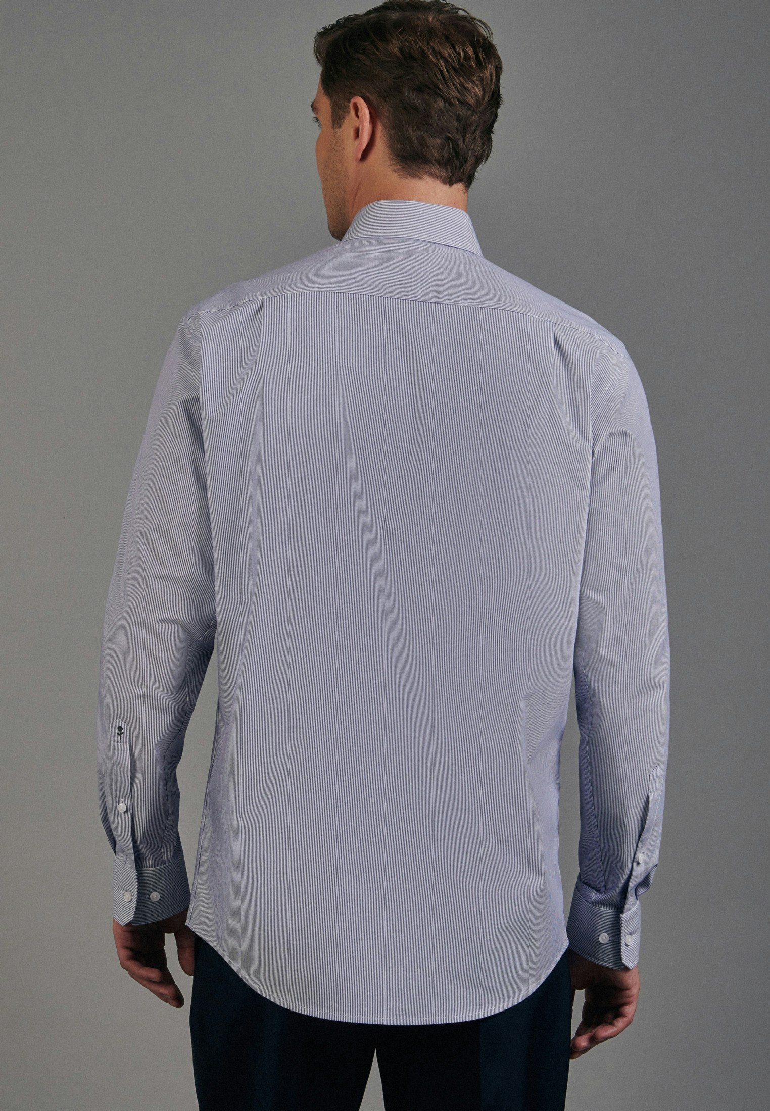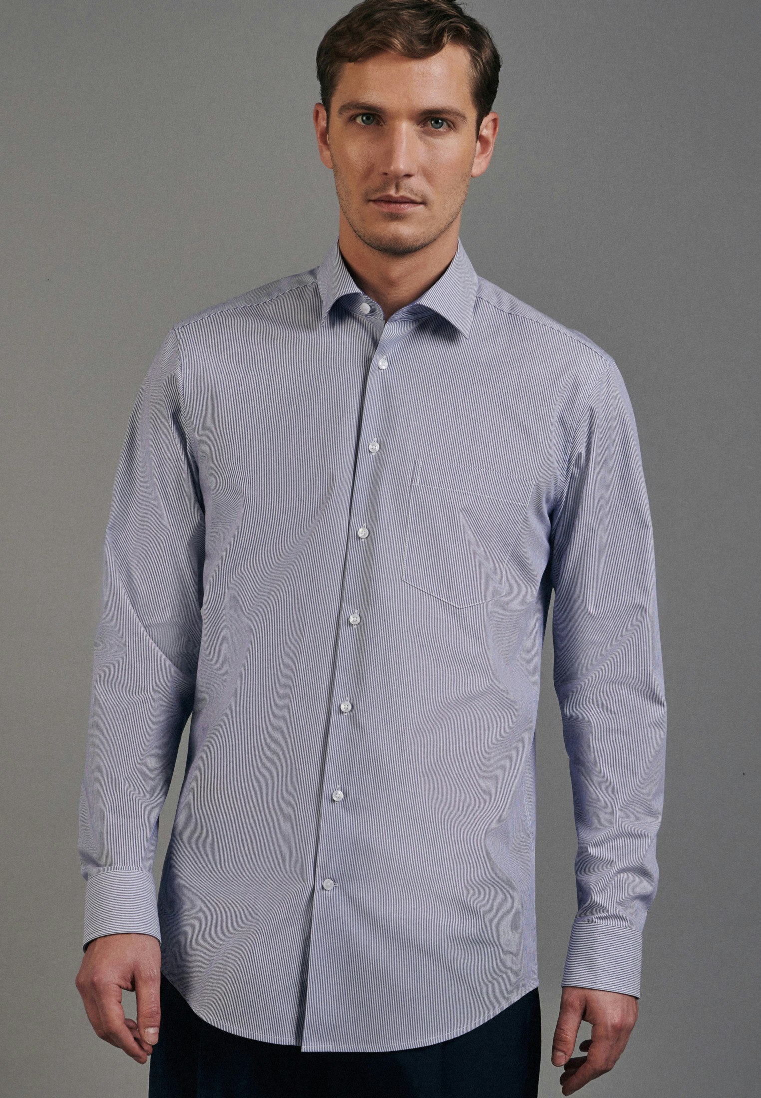 Modern und zeitlos zeigt sich dieses bügelfreie Herren-Hemd aus dem Hause Seidensticker. Optisch überzeugt diese Kreation durch sein klassisches, dezentes Streifenmuster, womit ein stilvolles Erscheinungsbild garantiert wird. Der Tragekomfort wird durch die hochwertige Popeline-Baumwolle sichergestellt, während die kontemporäre Regular Fit Passform die maskuline Linie umschmeichelt. Damit wird dieses Business-Konzept mit Kentkragen zum Must-have für die stilbewusste Garderobe.