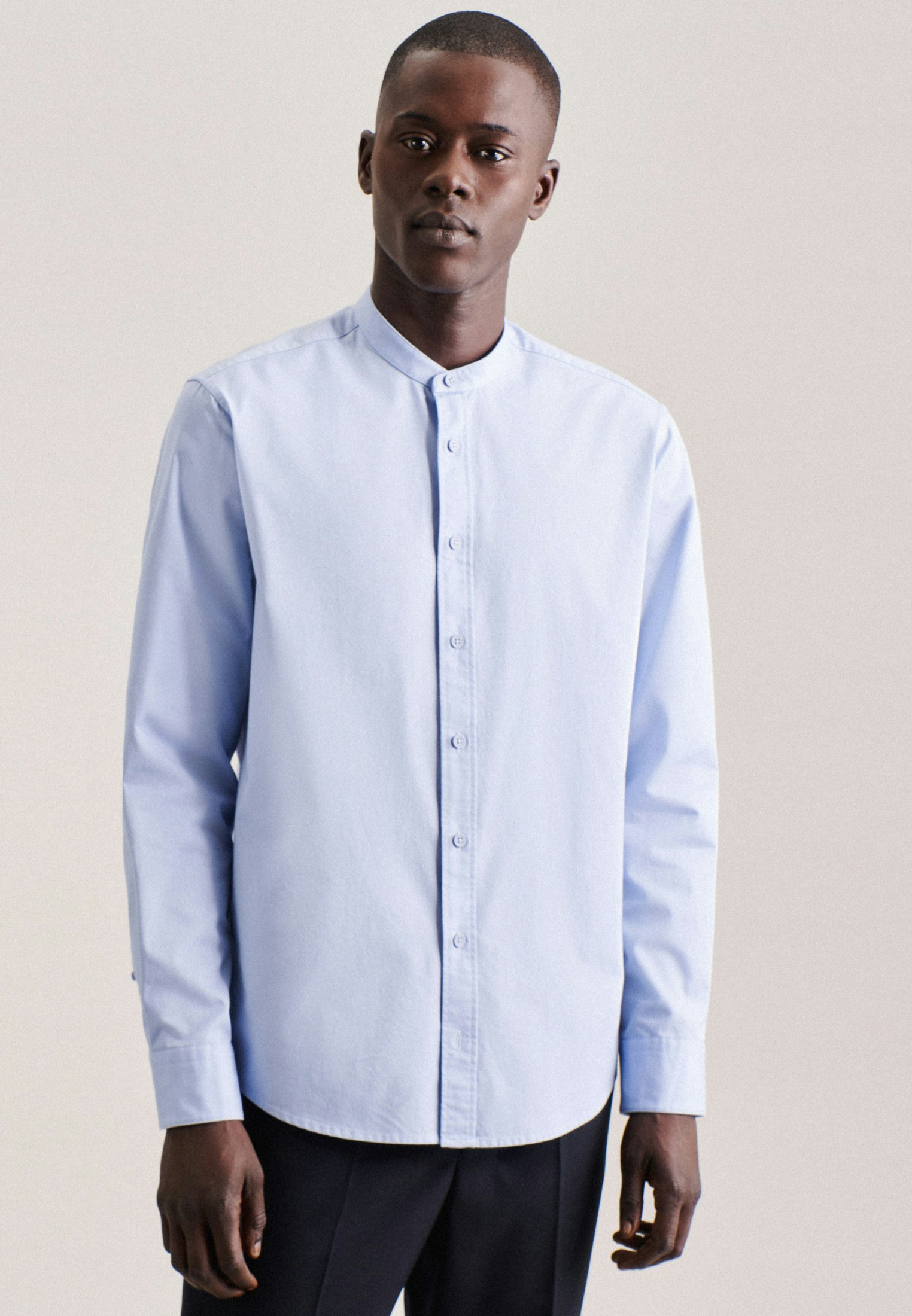 Vervollständigt Ihr Outfit und sollte in keiner Garderobe fehlen: Dieses Casual Hemd aus der "SMART CASUAL" Kollektion von Seidensticker überzeugt durch maskuline Ästhetik. Es kann in der Freizeit, im Homeoffice, im Büro oder bei Veranstaltungen zu Ihrer schlichten Eleganz beitragen. Die Webart Twill aus 100% Baumwolle ist besonders hochwertig gewebt, was sie bequem zu tragen und mit schräg umlaufender Struktur außerordentlich griffig macht. Im klassisch-geraden Regular Schnitt bietet das Casual Hemd höchsten Tragekomfort und liegt nicht so eng an. Balanceakt zwischen klassischem Look und modernen Aspekten: das elegante Seidensticker Hemd. Stilsicher und elegant liegen Sie mit diesem Langarm-Casual Hemd stets richtig. Weitenverstellbare Manschetten runden das Gesamtbild ab. Durch den Stehkragen wird der nostalgisch-smarte Charakter besonders betont.