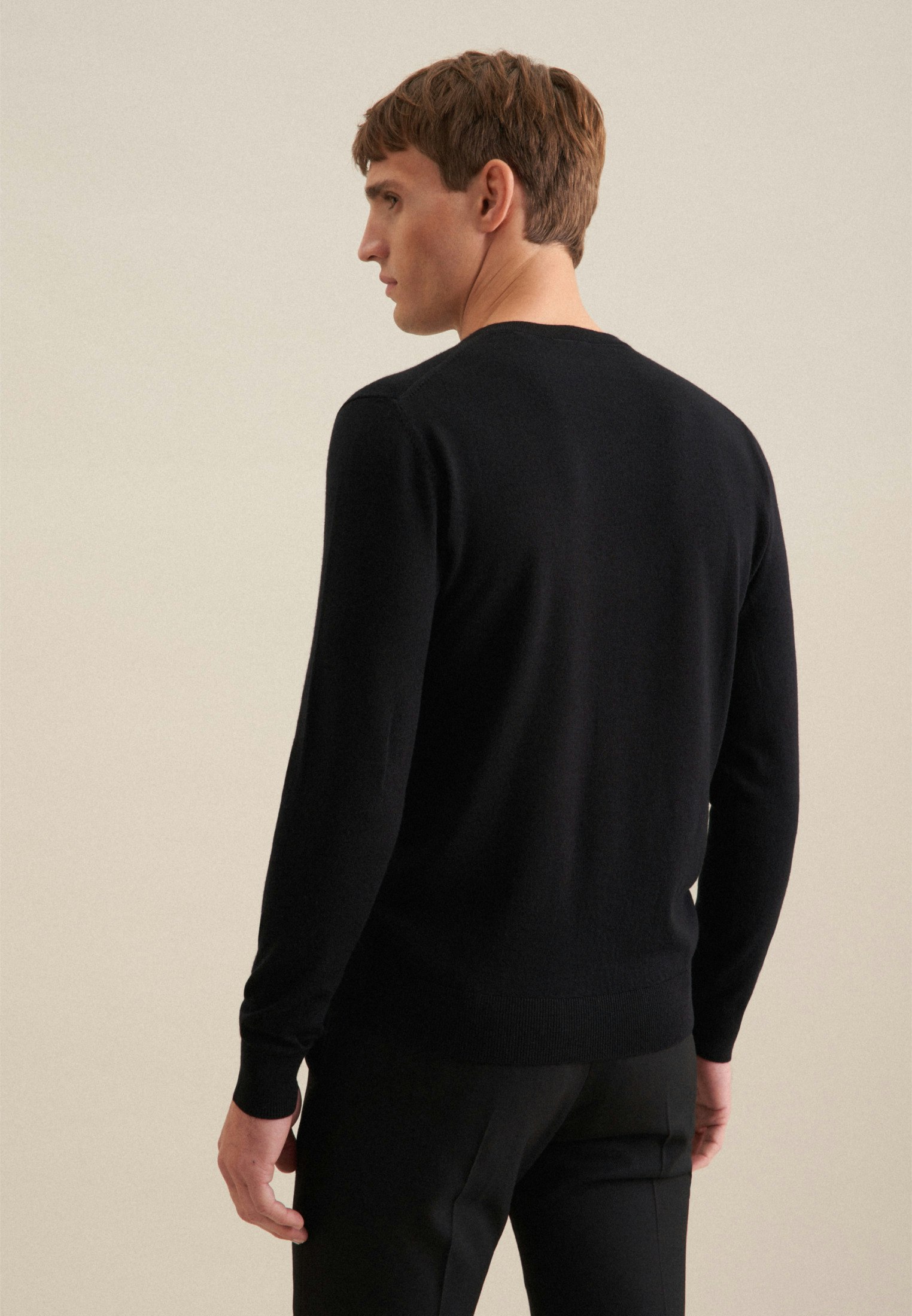 Bequem und dennoch stylish: Sorgen Sie für ein stilvolles Erscheinungsbild mit dem Pullover von Seidensticker aus der "SMART KNIT" Kollektion. Das gewebte Plain Knitted ist aus 100% Wolle - die ideale Leinwand für Ihre ansprechenden Kombinationen. Das Uni-Muster ist eine stilvolle Ergänzung. Ein Basic wird neu interpretiert: Der stilsichere Pullover verbindet Moderne und Stilsicherheit. Stilsicher und elegant liegen Sie mit diesem Langarm-Pullover immer goldrichtig. Ein V-Neck betont den smarten Charakter.