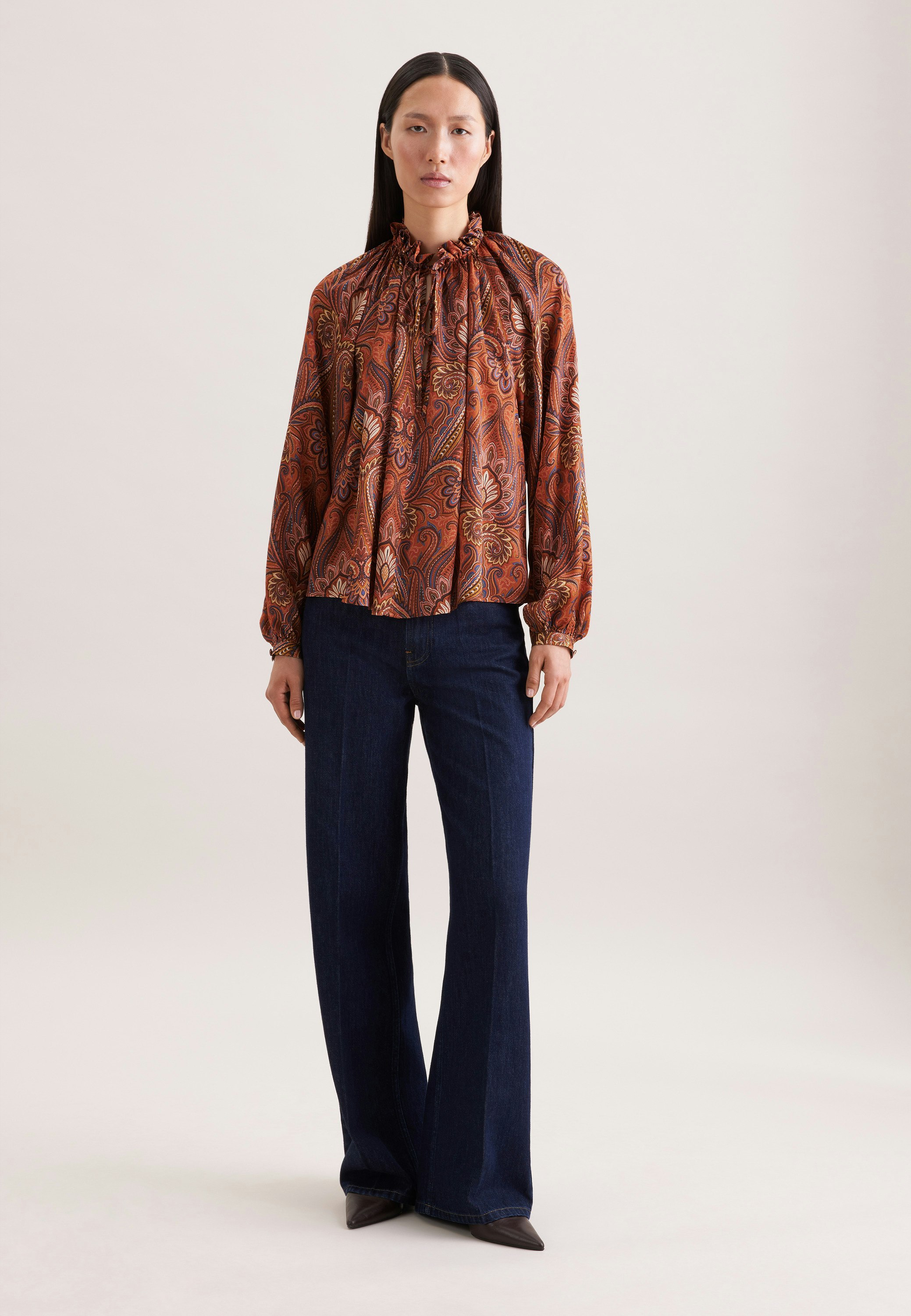 Vervollständigt Ihr Outfit und sollte in keiner Garderobe fehlen: 1/1-Rüschenbluse aus der "February Drop 261" Kollektion von Seidensticker überzeugt durch In-Szene-setzen Ihrer Figur. Als Regular Schnitt liegt Rüschenbluse leger und nicht so eng an und schafft somit optimalen Tragekomfort. Das schicke Druck-Muster macht sie zu einem absoluten Must-have. Zeigen Sie smarte Stilsicherheit mit Rüschenbluse, die jedem Outfit einen modischen Akzent gibt. Als interessantes Detail sind zudem edle Plasticknöpfe verarbeitet worden.