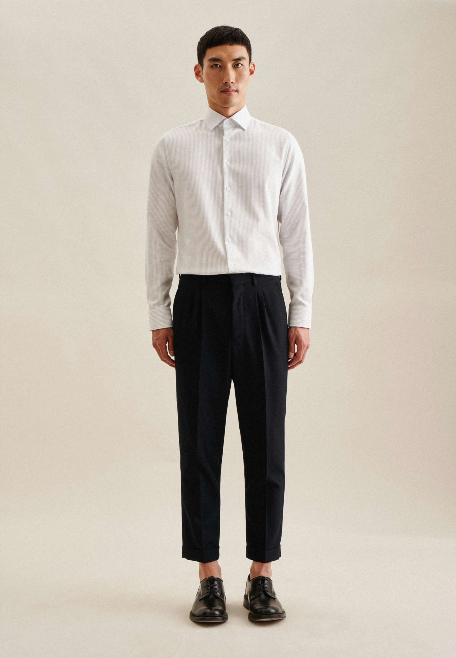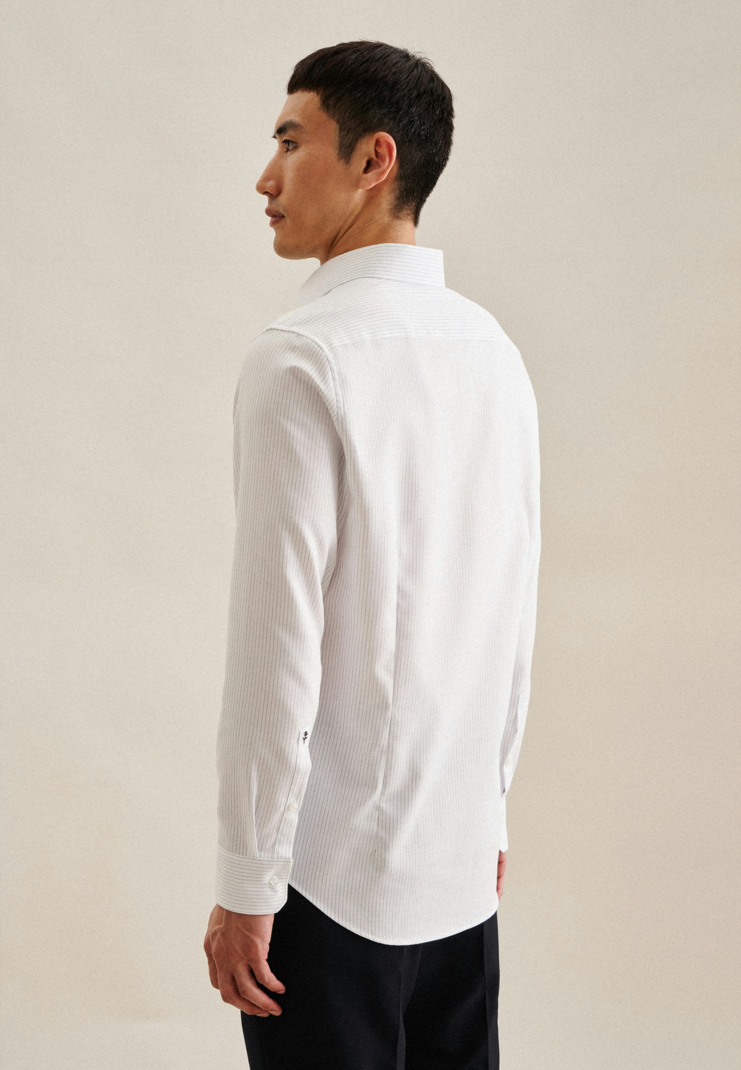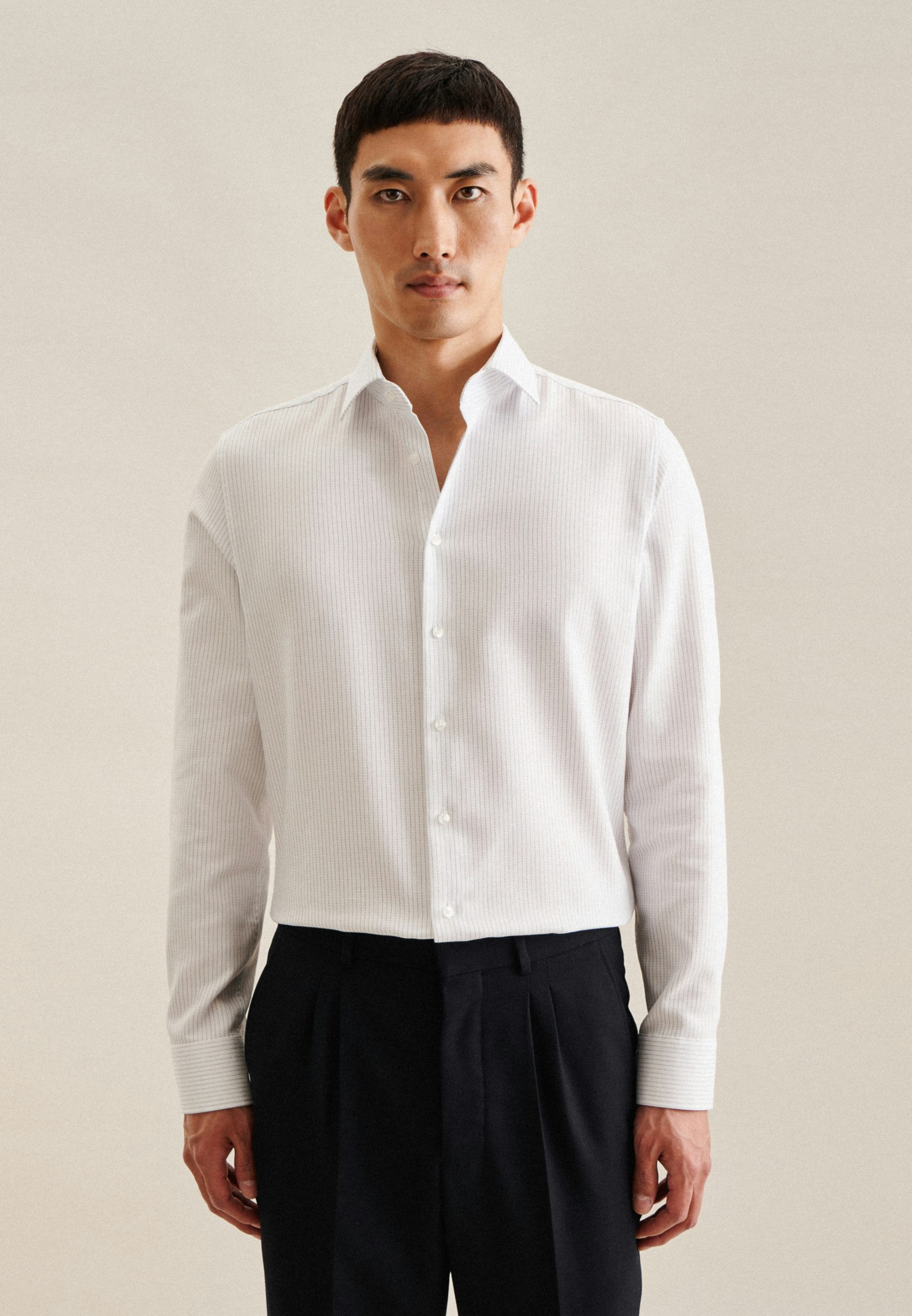 Maskuline Ästhetik: Ihre Silhouette wird stilvoll inszeniert mit dem blickdichten Business Hemd von Seidensticker aus der "SMART CLASSICS" Kollektion. Es ist ein perfekter Begleiter, der sich ideal für Veranstaltungen, Homeoffice oder Büro eignet und zu vielen unterschiedlichen Looks passt. Die gewebte Struktur ist aus 100% Baumwolle - die ideale Leinwand für Ihre ganz eigenen Kombinationen. Die schmale Silhouette dieses Business Hemds in der Passform Shaped ist figurbetont ohne zu eng anzuliegen. Durch das Streifen-Muster ist Ihr neues Kleidungsstück elegant und zugleich modisch. Balanceakt zwischen Klassik und Moderne: das smarte Seidensticker Hemd. Für Liebhaber von eleganten Looks ist dieses Langarm-Business Hemd eine gute Wahl. Es wird durch weitenverstellbare Manschetten perfektioniert. Durch den Kentkragen wird der universelle Business-Charakter hervorgehoben.