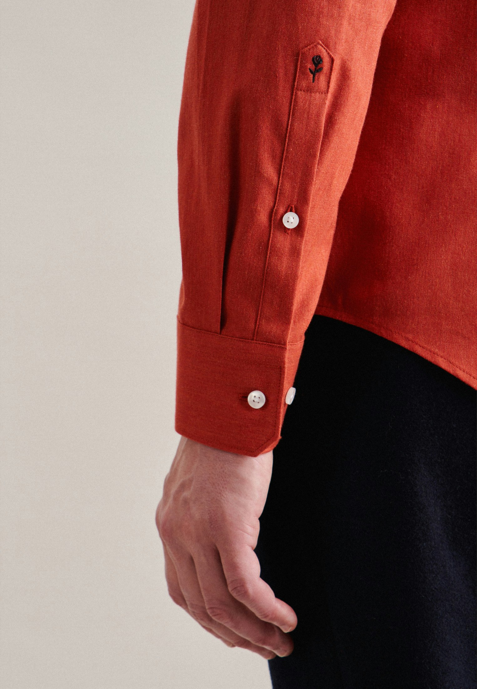 Vervollständigt Ihr Outfit und sollte in keiner Garderobe fehlen: Dieses Flanellhemd aus der "SMART FLANNELS" Kollektion von Seidensticker überzeugt durch maskuline Ästhetik. Der besonders hochwertig gewebte Twill ist aus 100% Baumwolle, bequem zu tragen und mit schräg umlaufender Struktur außerordentlich griffig. Die schmale Silhouette dieses Flanellhemds in der Passform Shaped betont Ihre Figur ohne zu eng anzuliegen. Smarte Modernität mit formellen und lockeren Aspekten prägt dieses Hemd von Seidensticker. Stilsicher und elegant liegen Sie mit diesem Langarm-Flanellhemd stets richtig. Weitenverstellbare Manschetten decken die klassischen Komponenten ab. Besonders hervorgehoben wird der universelle Business-Charakter durch einen Kentkragen.