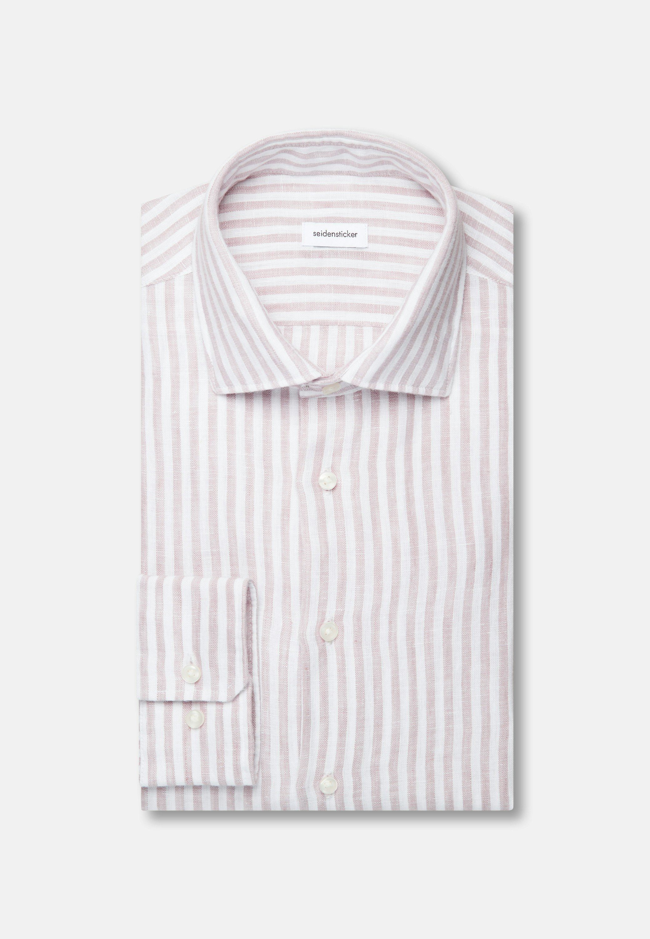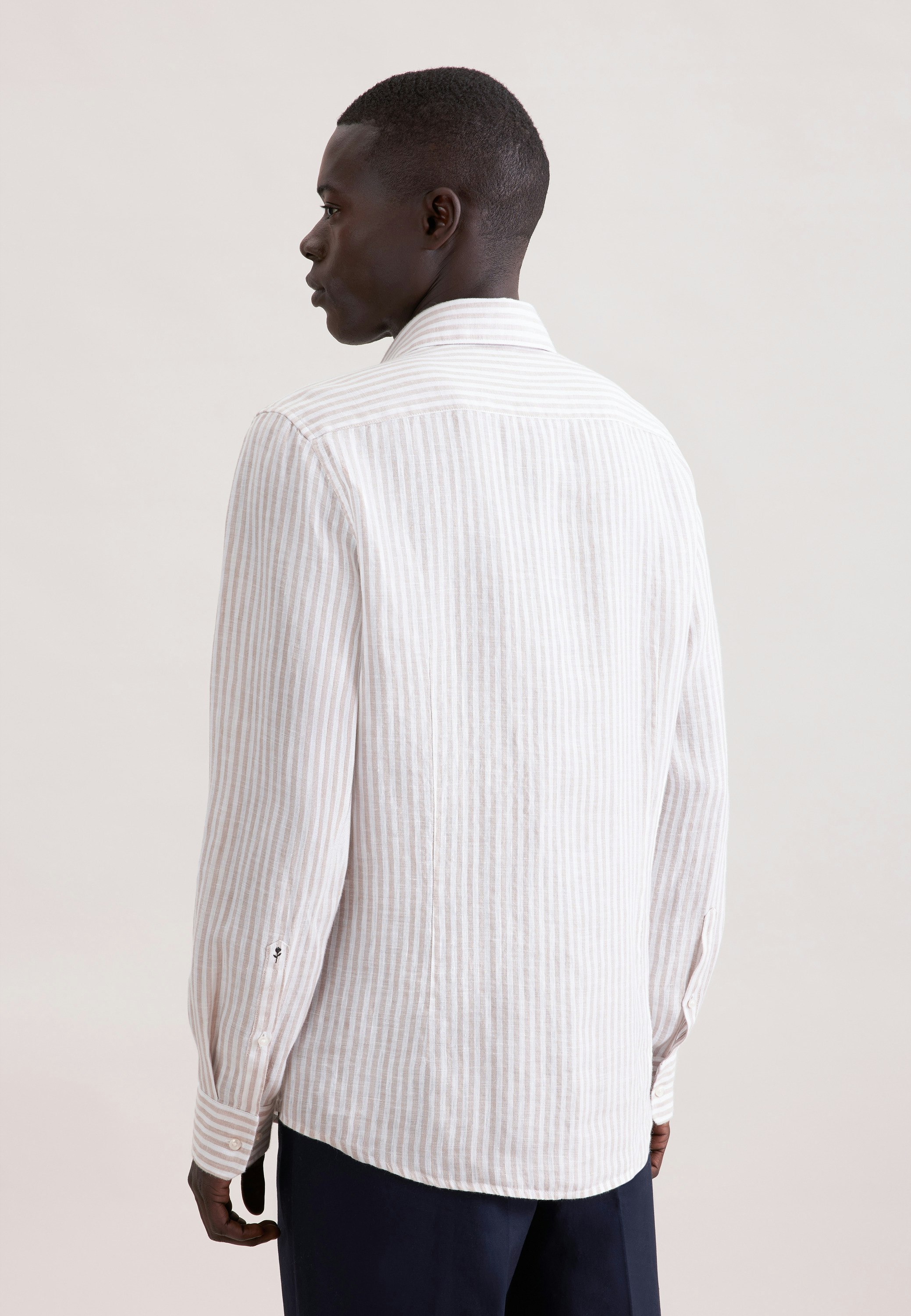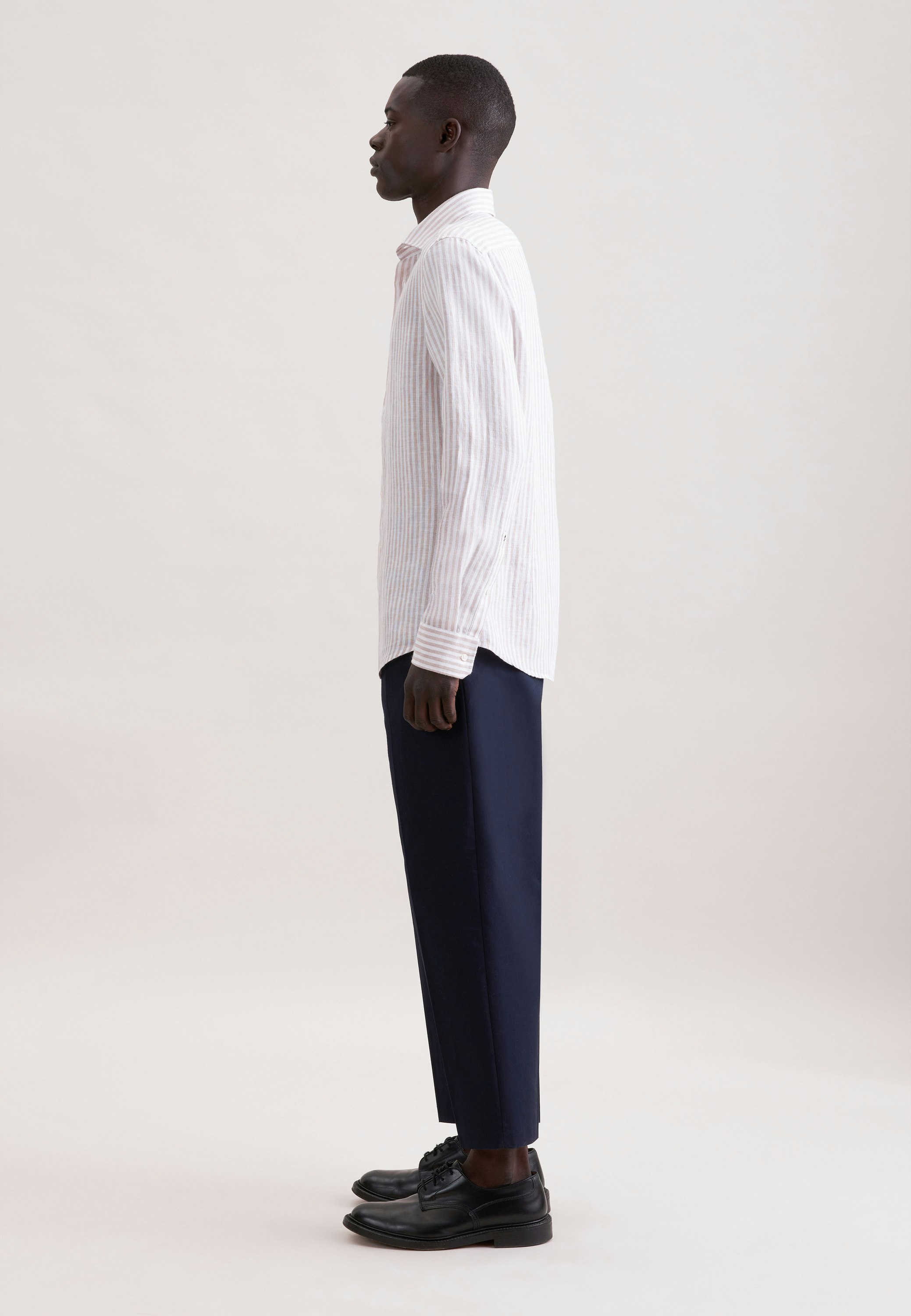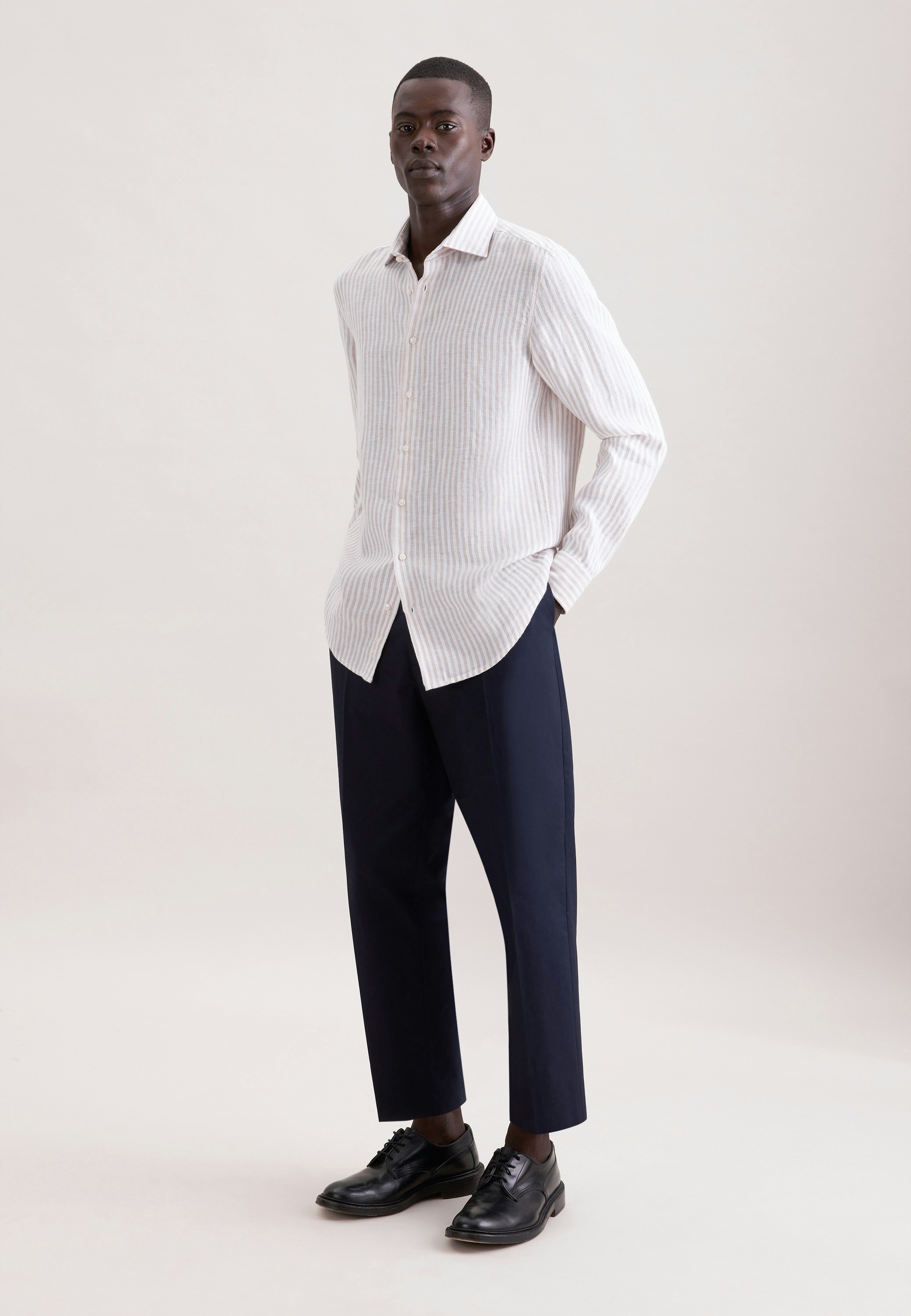 Komplettiert Ihr Outfit und darf in keiner Garderobe fehlen: Dieses 1/1-Leinenhemd aus der "SMART LINEN" Kollektion von Seidensticker überzeugt durch maskuline Ästhetik. Es kann in der Freizeit oder im Sommer getragen werden. Mit einem figurbetonten Schnitt gibt das Leinenhemd in der Passform Shaped Ihnen genügend Raum, ohne zu eng zu sein. Durch das Gestreift-Muster ist Ihr neues Kleidungsstück die perfekte Wahl für geschmackvolle Looks. Dieses Hemd verkörpert klassische Eleganz mit modernem Stil. Dank des Kentkragens wird der universelle Business-Charakter besonders hervorgehoben.