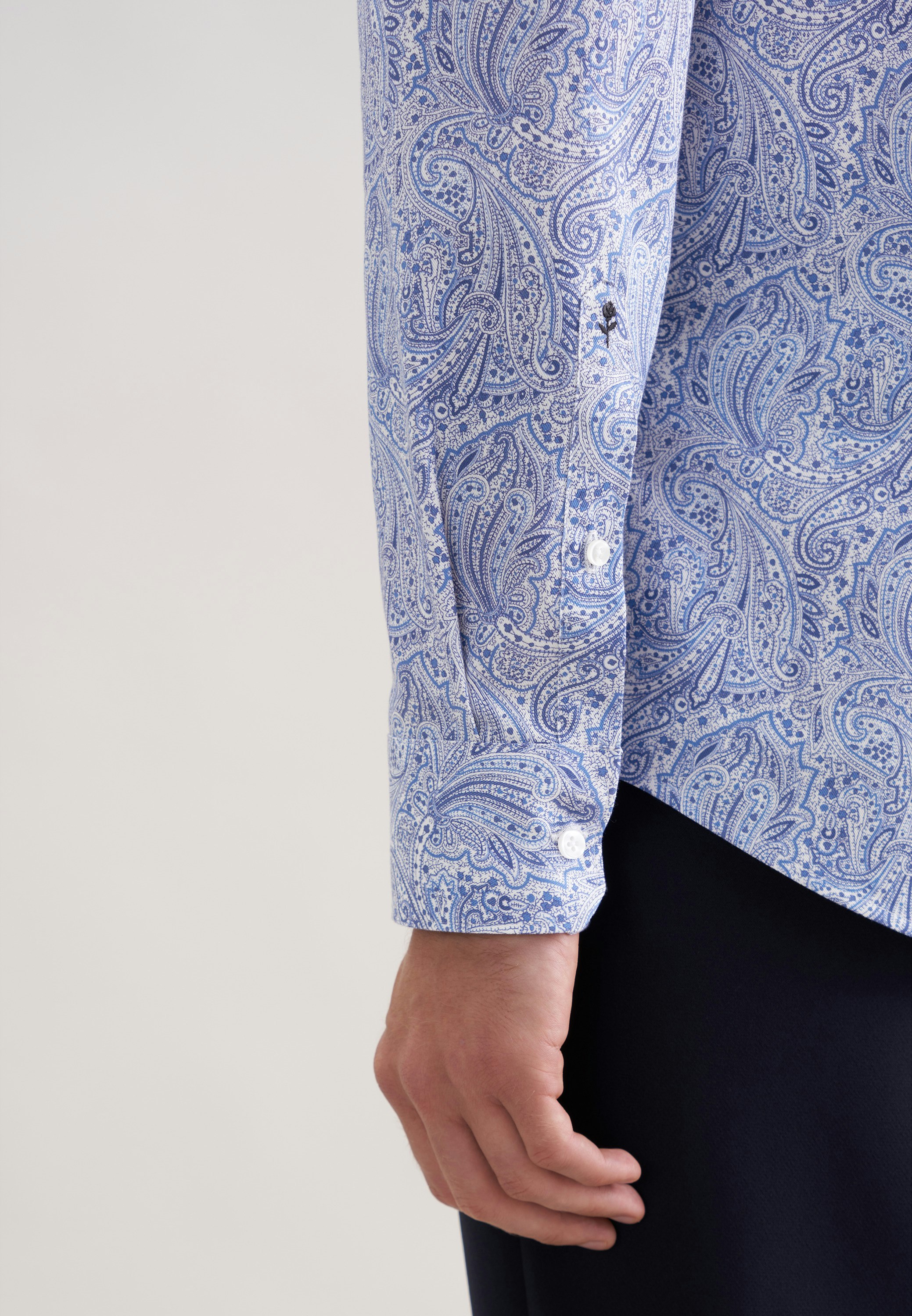 Die Bestickung erfolgt auf der Manschette des rechten Ärmels. Die gezeigte Abbildung dient lediglich zur Vorschau und kann von Ihrer tätsächlichen Auswahl abweichen.