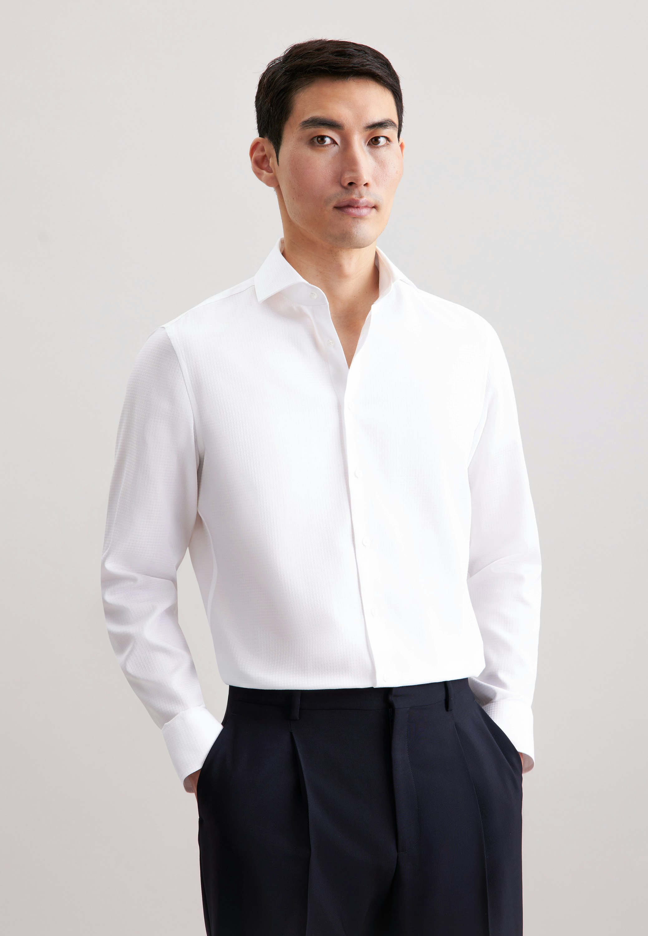 Vervollständigt Ihr Outfit und darf in keiner Garderobe fehlen: Dieses 1/1-Business Hemd aus der "SMART CLASSICS" Kollektion von Seidensticker überzeugt durch maskuline Ästhetik. Ob Büro, Homeoffice oder Veranstaltungen - es ist ein eleganter Begleiter, der sich einfach kombinieren lässt. In Slim Fit zeigt sich das Business Hemd sehr figurbetont. Das schicke Pepita-Muster ist eine stilvolle Ergänzung. Dieses Hemd verkörpert zeitlose Eleganz mit modernem Stil. Hervorragend herausgearbeitet wird der universelle Business-Charakter durch einen Kentkragen.