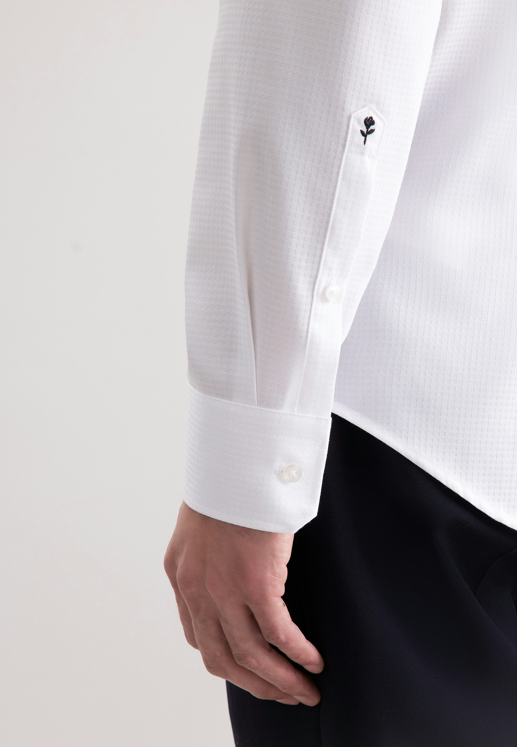 Die Bestickung erfolgt auf der Manschette des rechten Ärmels. Die gezeigte Abbildung dient lediglich zur Vorschau und kann von Ihrer tätsächlichen Auswahl abweichen.