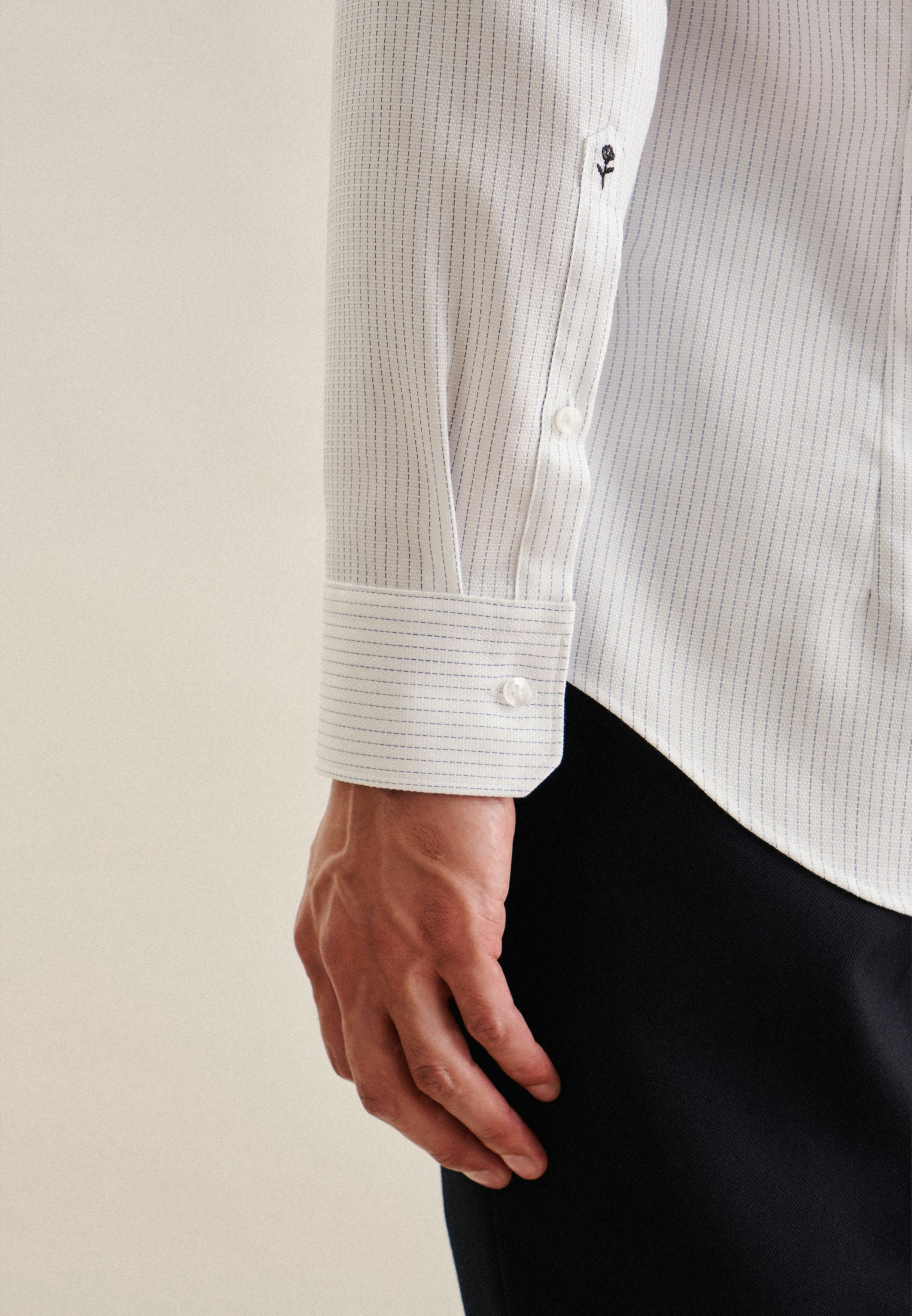 Die Bestickung erfolgt auf der Manschette des rechten Ärmels. Die gezeigte Abbildung dient lediglich zur Vorschau und kann von Ihrer tätsächlichen Auswahl abweichen.