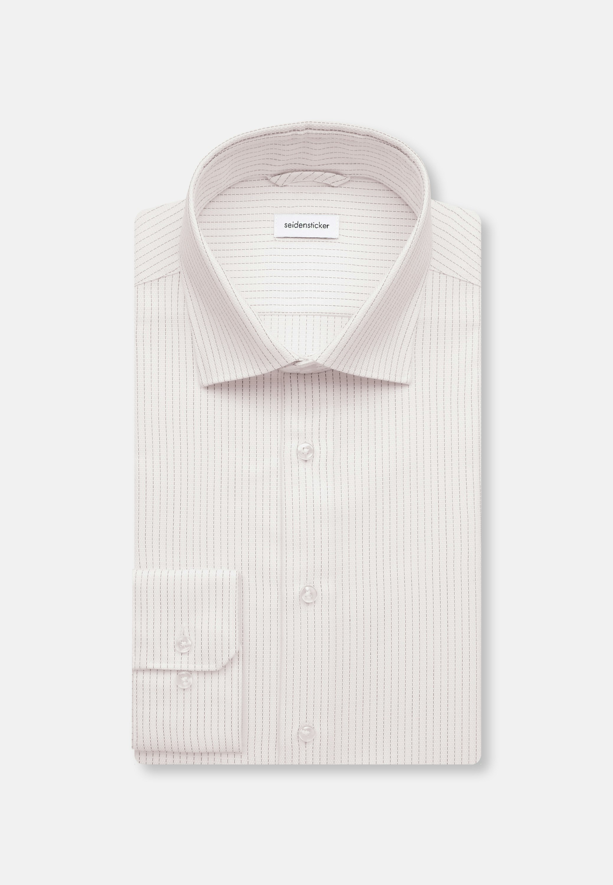Komplettiert Ihr Outfit und sollte in keiner Garderobe fehlen: Dieses blickdichte Business Hemd aus der "SMART CLASSICS" Kollektion von Seidensticker überzeugt durch maskuline Ästhetik. Ob Büro, Veranstaltungen oder Homeoffice - es ist ein eleganter Klassiker, der sich einfach kombinieren lässt. Die Webart Struktur aus 100% Baumwolle ist hochwertig verarbeitet, was sie zur idealen Leinwand für Ihre individuellen Kombinationen macht. Mit einer dezenten Taillierung entspricht das Business Hemd im Slim Fit dem aktuellen Zeitgeist und fügt sich perfekt in jedes Business-Outfit ein. Das charakteristische Streifen-Muster ist eine stilvolle Ergänzung. Balanceakt zwischen Klassik und Moderne: das smarte Seidensticker Hemd. Stilsicher und elegant liegen Sie mit diesem Langarm-Business Hemd stets richtig. Es wird durch weitenverstellbare Manschetten perfektioniert. Besonders herausgearbeitet wird der universelle Business-Charakter durch einen Kentkragen.